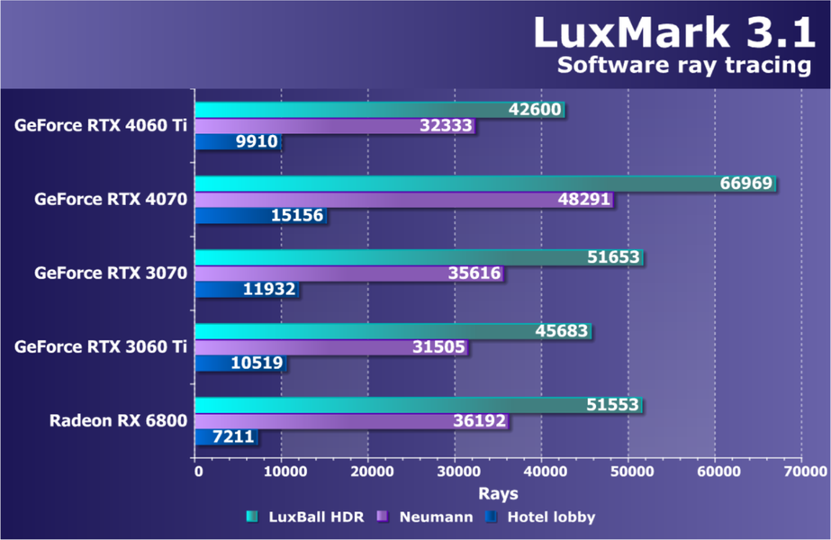 | 07 | RTX 3070 Ti 8 ГБ, 1770—1935/19000 | 137 | 577 | 42 000 |
