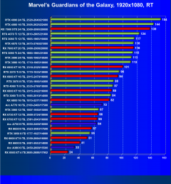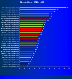 | 13 | RX 6700 XT 12 ГБ, 2581—2643/16000 | 121 | 412 | 34 000 |