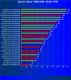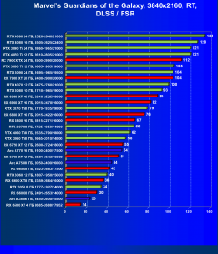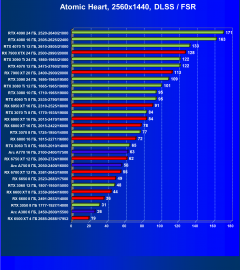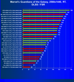 Результаты тестов со включенной аппаратной трассировкой лучей и/или DLSS/FSR/XeSS в разрешениях 1920×1080, 2560×1440 и 3840×2160