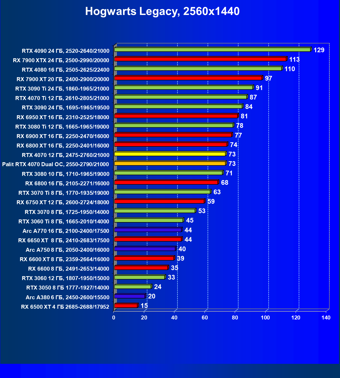 | 12 | Palit RTX 4070 Dual OC, 2550—2790/21000 | 453 | 69 | 70 000 |