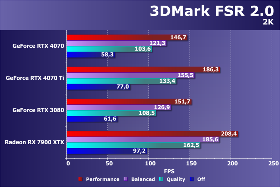 Из более-менее новых бенчмарков мы начали использовать несколько дополнительных тестов для измерения производительности трассировки лучей и, а также технологий масштабирования разрешения и увеличения производительности: DLSS, FSR и XeSS. В качестве полусинтетических тестов у нас также используется набор подтестов из довольно популярного пакета 3DMark: Time Spy, Port Royal, DX Raytracing, Speed Way и др. А вот примеры приложений DirectX 11 и 12, входящие в различные SDK, пришлось убрать — последнее время они всё чаще давали некорректные результаты.