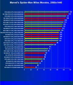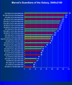 В этом рейтинге расклад сил совсем иной, и это при том, что лишь в трех играх из десяти поколение GeForce RTX 40 поддерживает технологию масштабирования DLSS 3.0. Отлично видно, что новинка даже при своей завышенной стоимости обошла всех соперников.