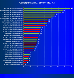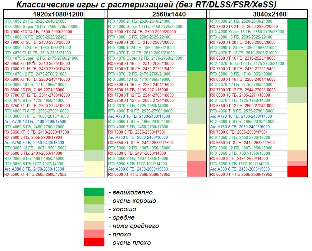 | 13 | RX 7800 XT 16 ГБ, 2430—2770/19400 | 1033 | 178 | 58 000 |