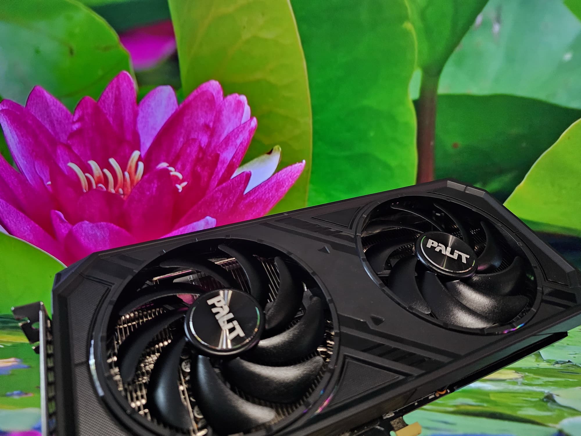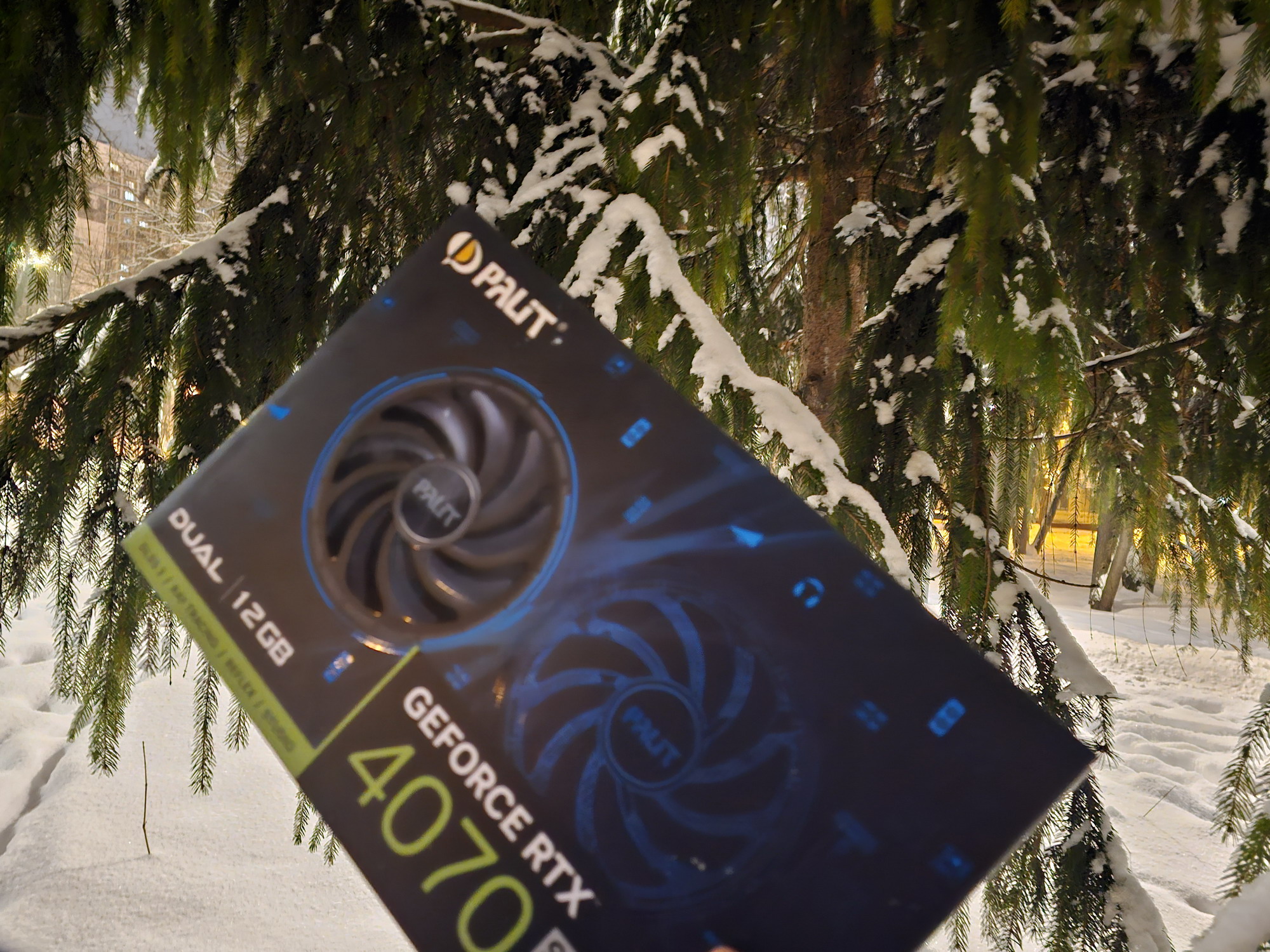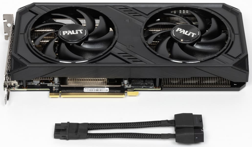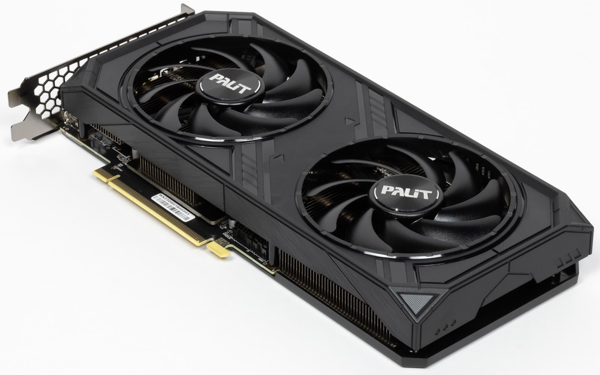 Конкретная протестированная карта Palit GeForce RTX 4070 Super Dual (12 ГБ) имеет стандартные (а по современным меркам даже компактные) размеры, занимает два слота в системном блоке. Использованный кулер чуть шумноват, но вполне эффективный, карта может потреблять до 220 Вт и имеет один 16-контактный (12VHPWR) разъем питания стандарта PCIe 5.0.