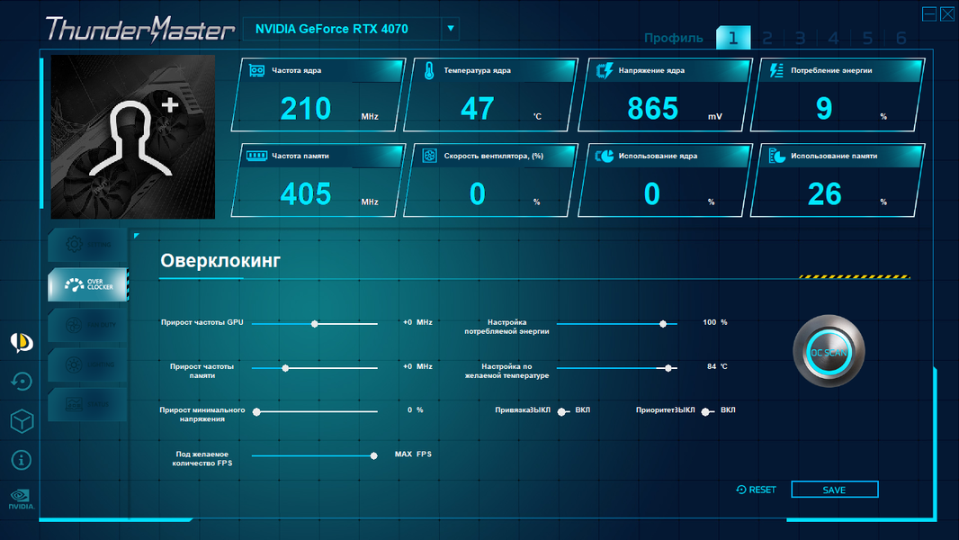 | 01 | RTX 4070 12 ГБ, 2475—2760/21000 | 308 | 1508 | 49 000 |
