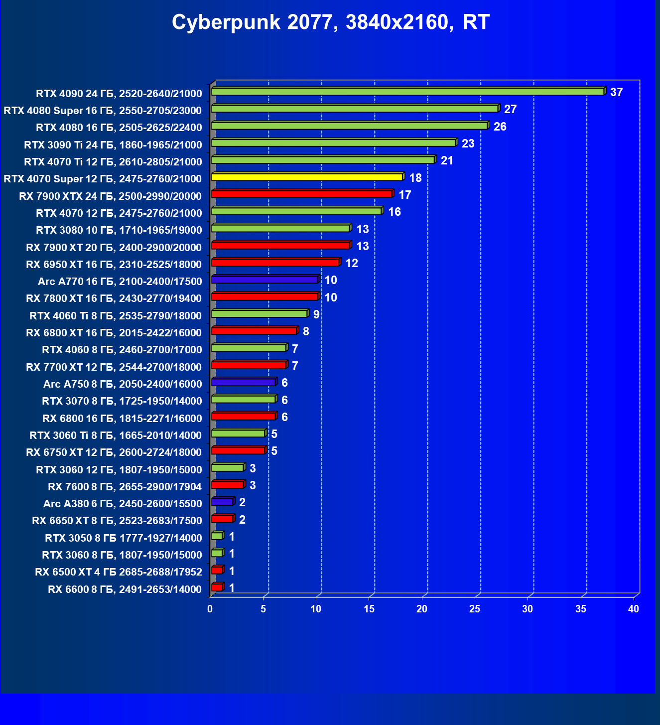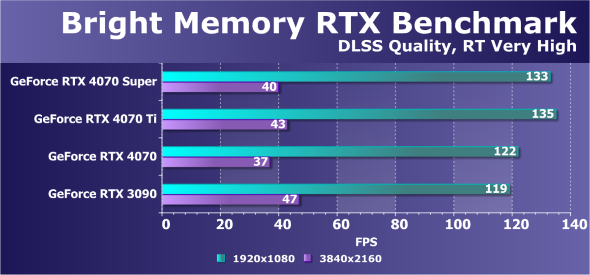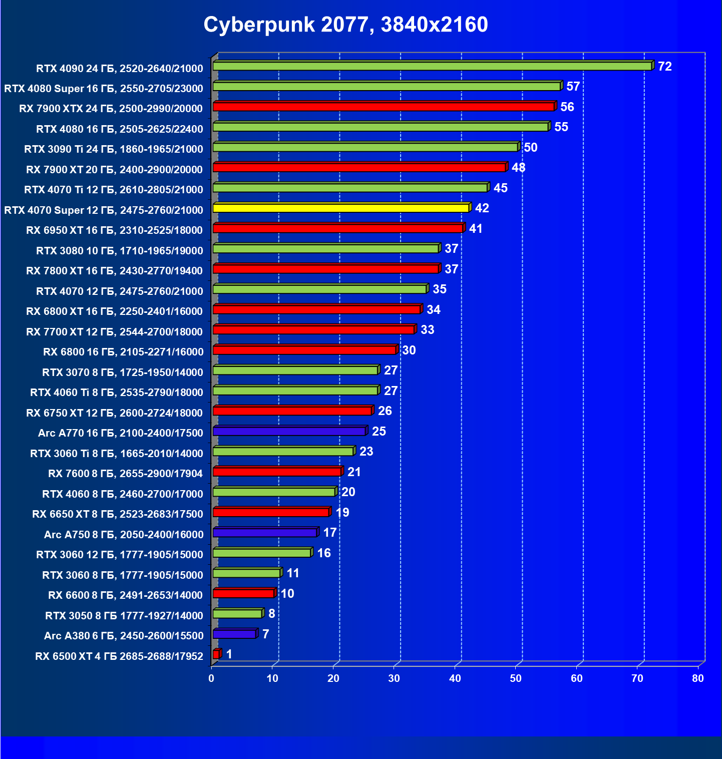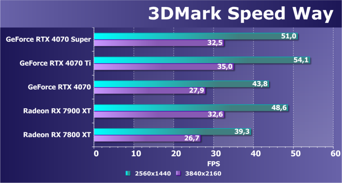 Отметим еще раз, что GeForce RTX 4070 Super отлично подходит для игры в разрешениях до 4K включительно с максимальным качеством графики в классических играх без RT, и только в самых сложных по графике играх в разрешении 4K комфорт может быть чуть снижен.