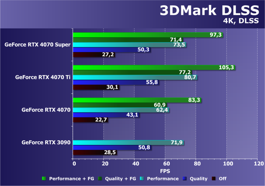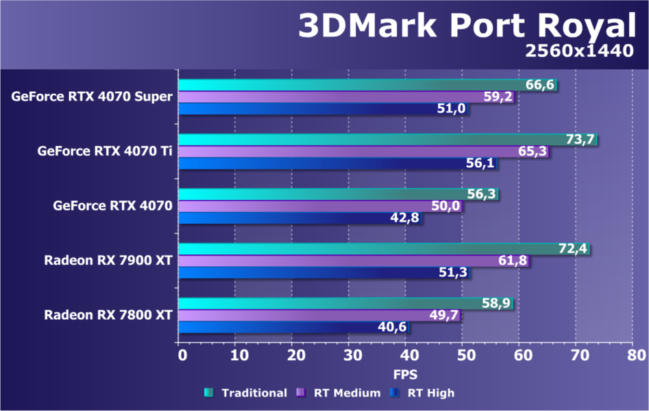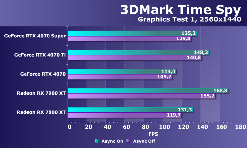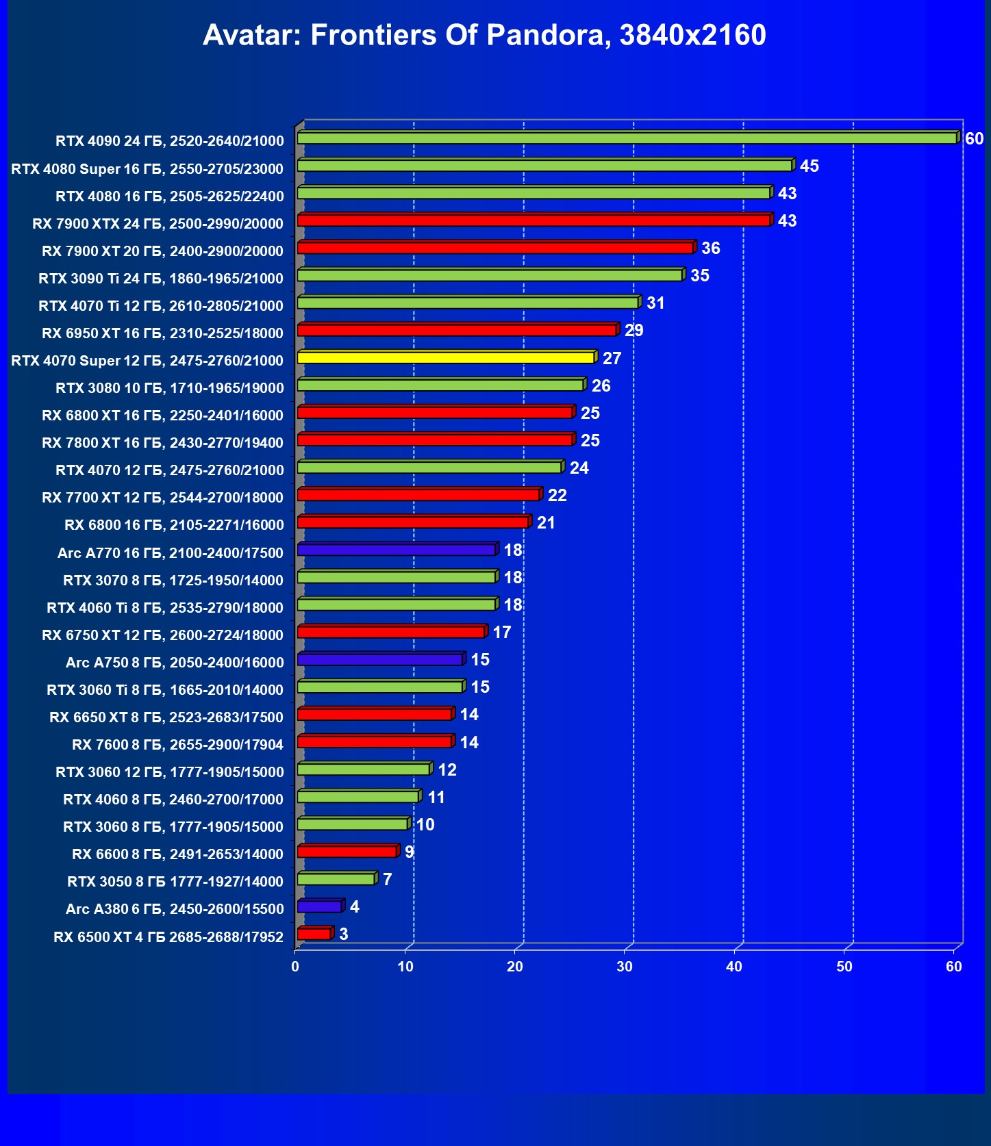 Отметим еще раз, что GeForce RTX 4070 Super отлично подходит для игры в разрешениях до 4K включительно с максимальным качеством графики в классических играх без RT, и только в самых сложных по графике играх в разрешении 4K комфорт может быть чуть снижен.
