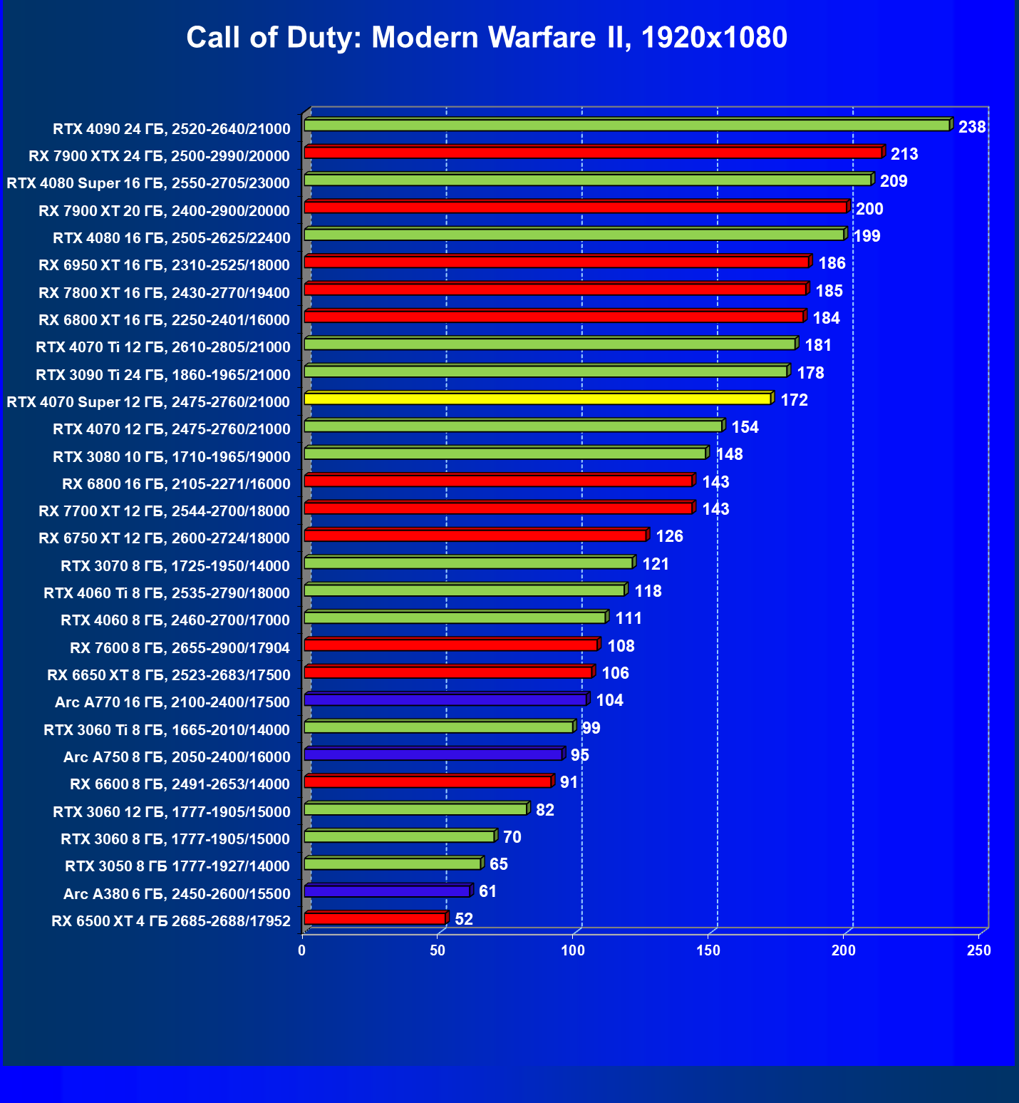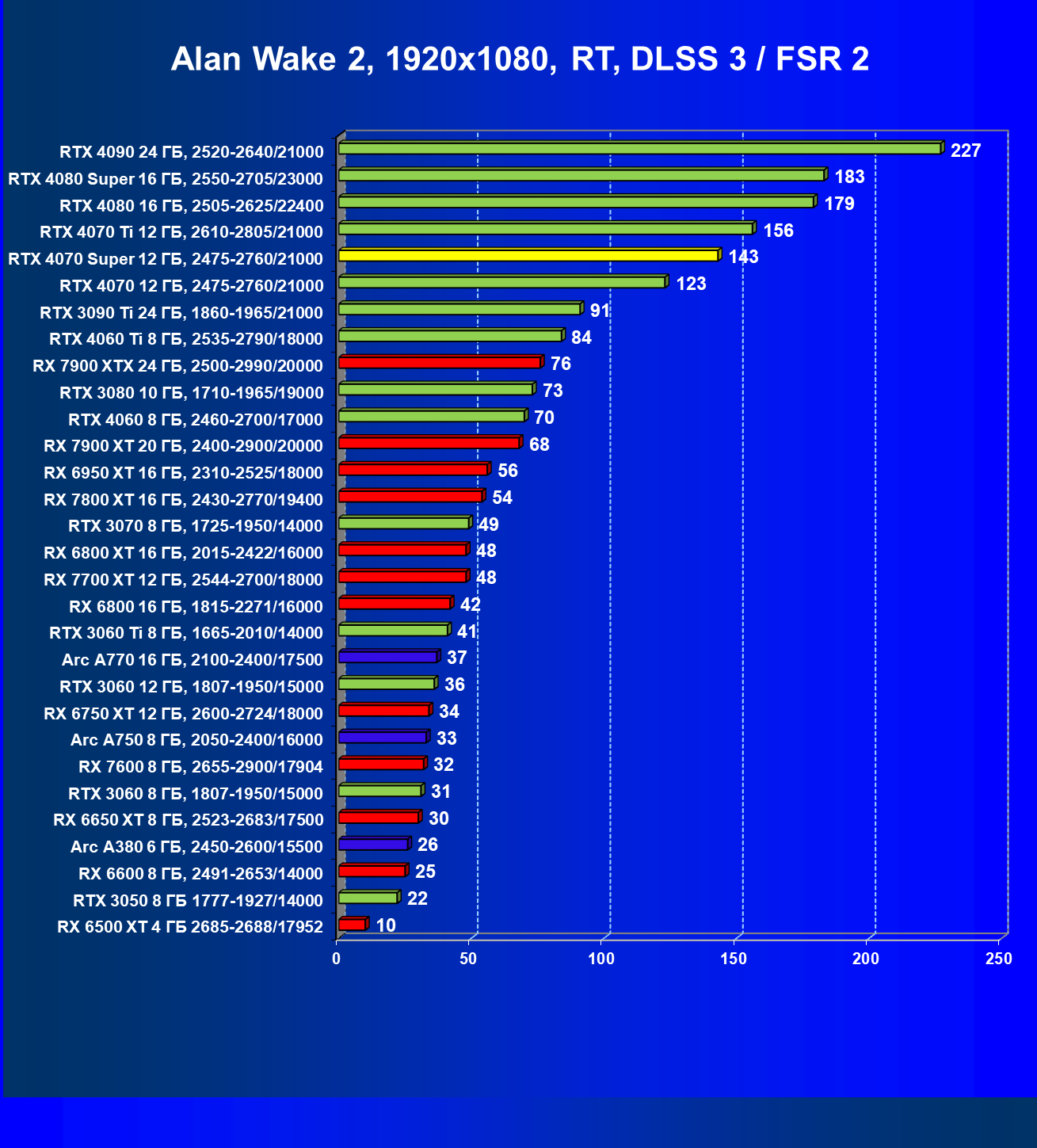 | 13 | RX 7800 XT 16 ГБ, 2430—2770/19400 | 178 | 1033 | 58 000 |