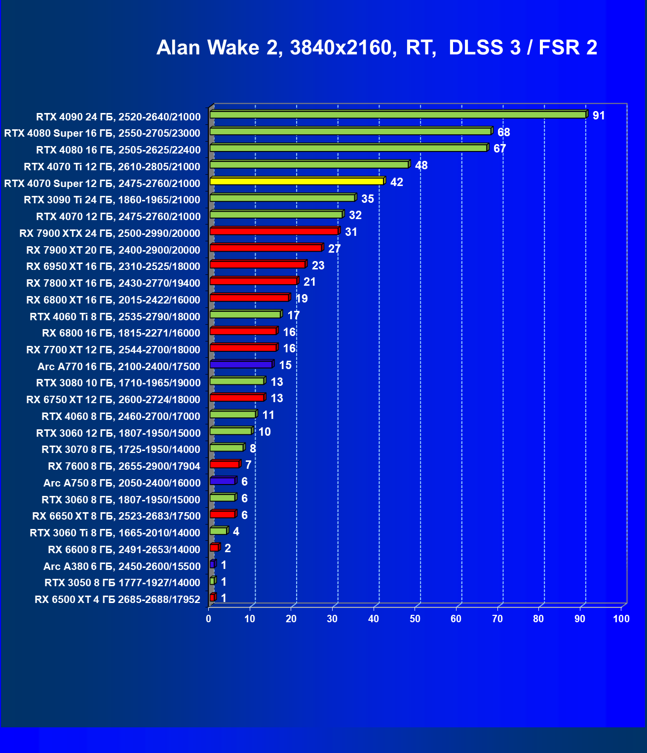 | 09 | RX 7800 XT 16 ГБ, 2430—2770/19400 | 90 | 520 | 58 000 |