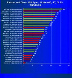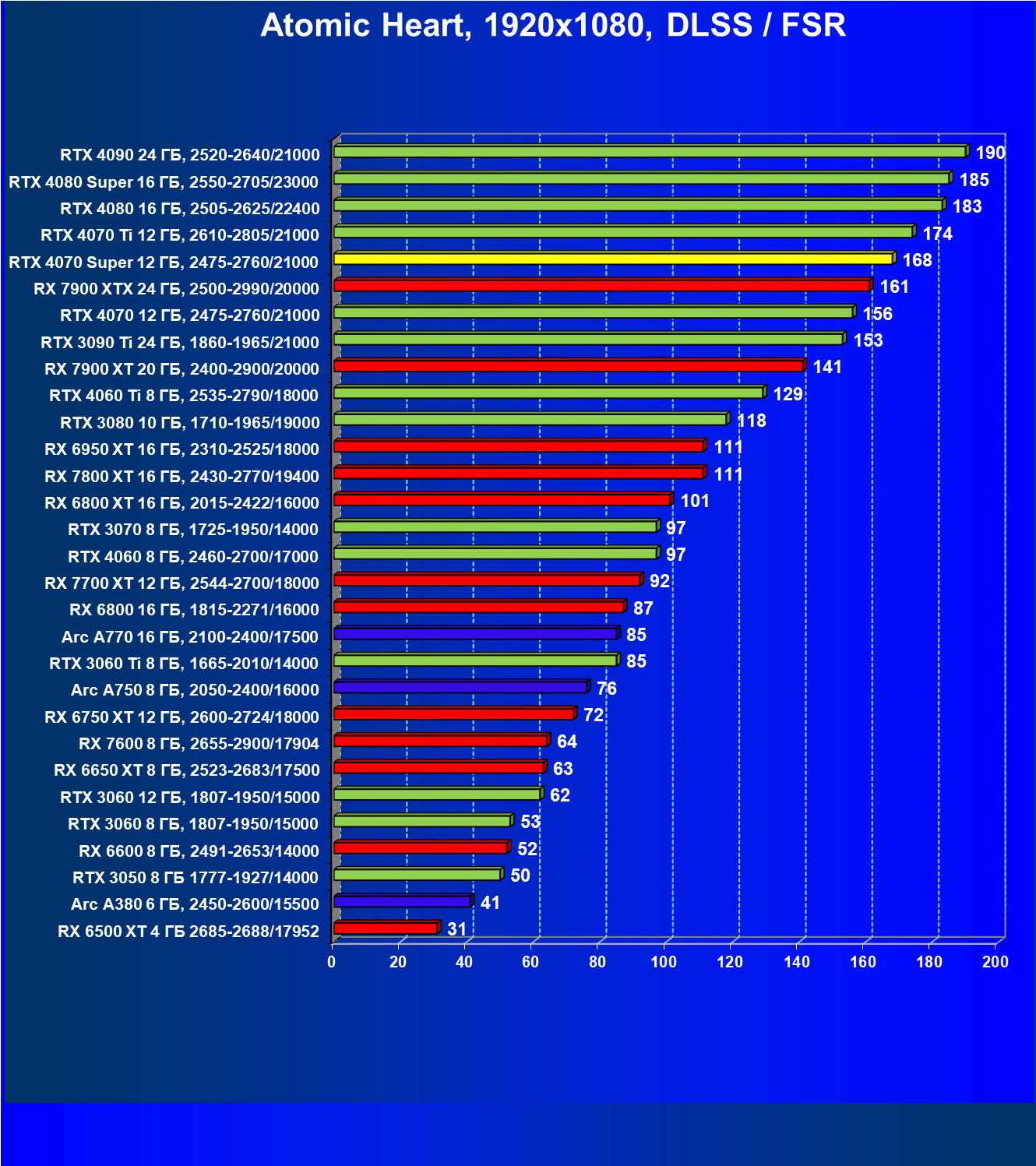 | 20 | RX 7900 XT 20 ГБ, 2400—2900/20000 | 76 | 651 | 86 000 |