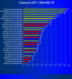 | 18 | RX 7900 XT 20 ГБ, 2400—2900/20000 | 157 | 1354 | 86 000 |