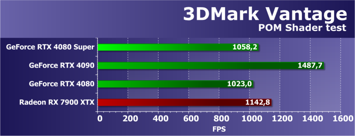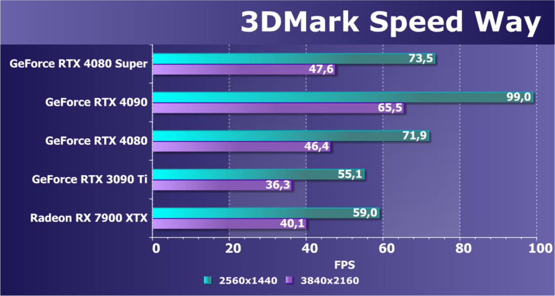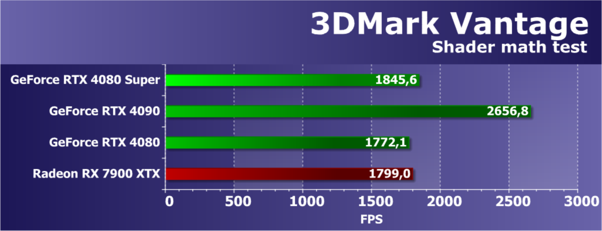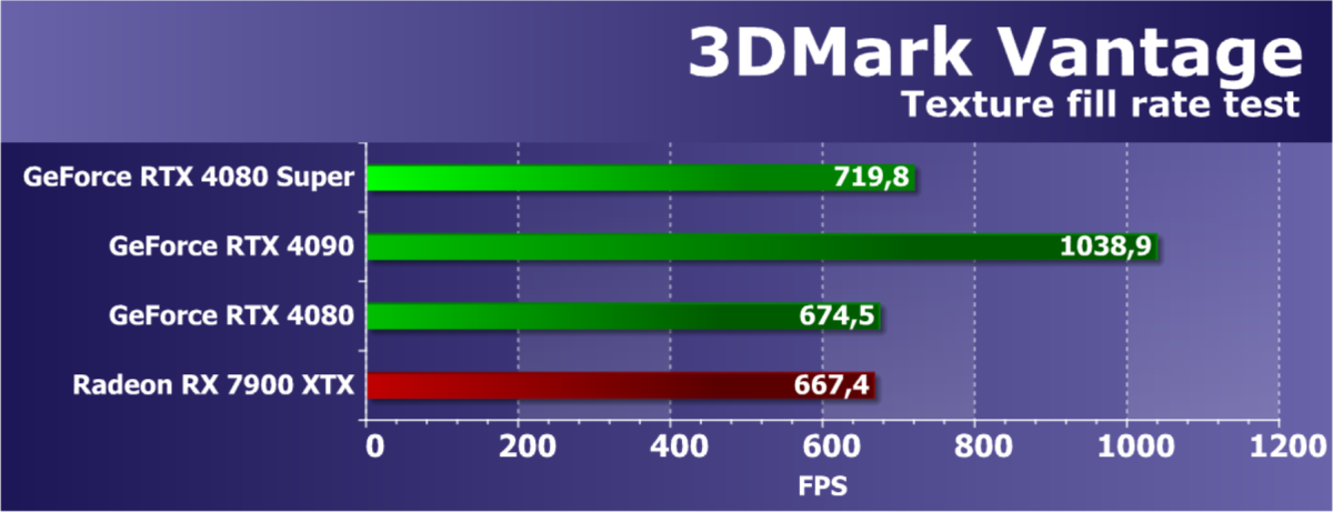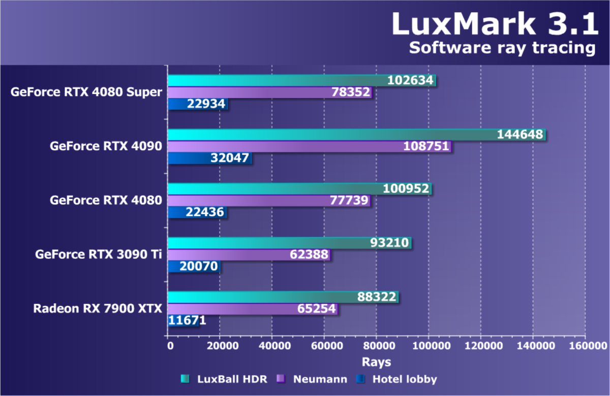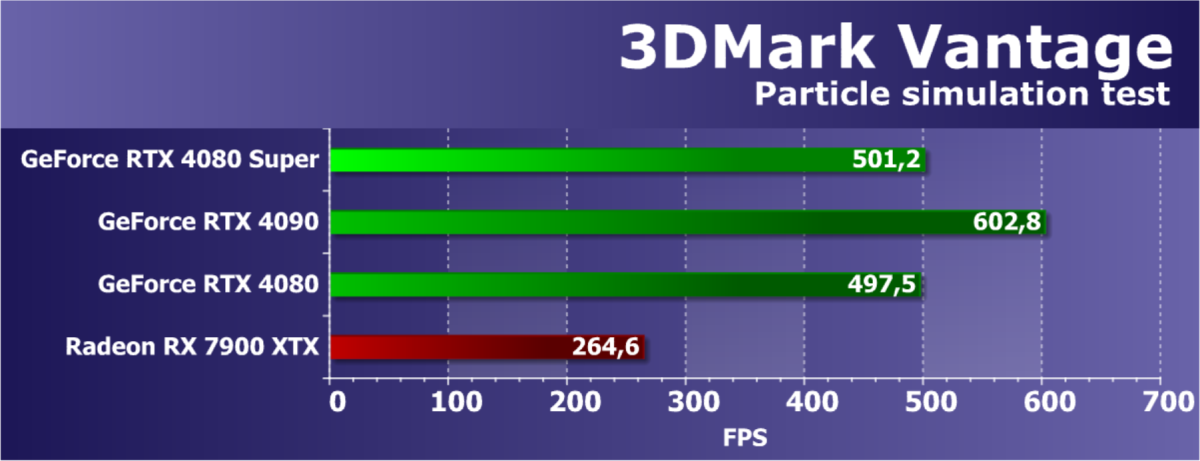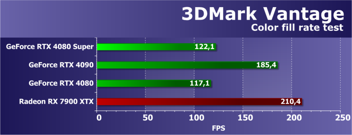 У более дешевой карты Radeon RX 7900 XTX рейтинг выше, но опять повторим, что в данном случае речь идет о классических играх без RT и технологий масштабирования. Разумеется, у флагмана AMD еще и 24 ГБ памяти против 16 у GeForce RTX 4080 Super, однако мы полагаем, что в перспективе ближайших лет этих 16 ГБ вполне хватит для всех игр на максимальных настройках качества в 4K. Поэтому гнаться за объемом памяти в 24 гигабайта для игровой карты нет никакого смысла.