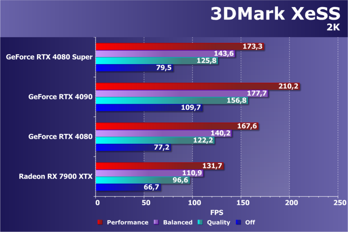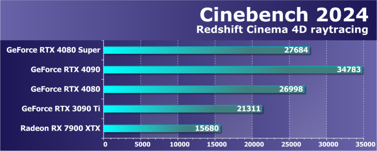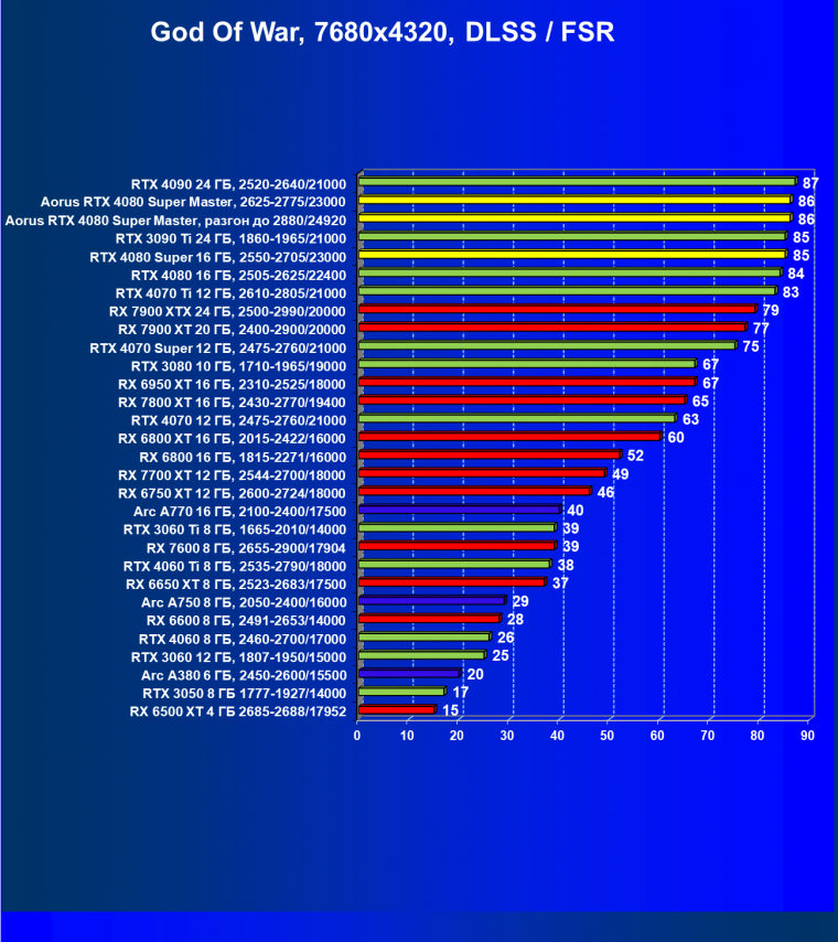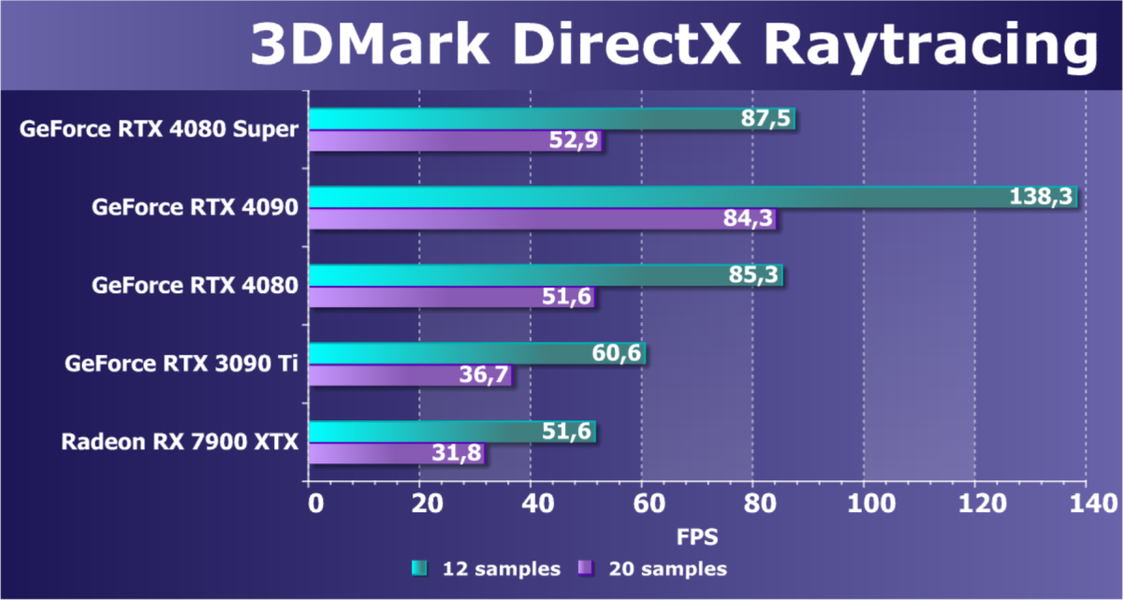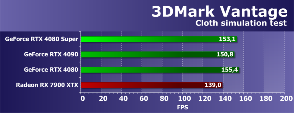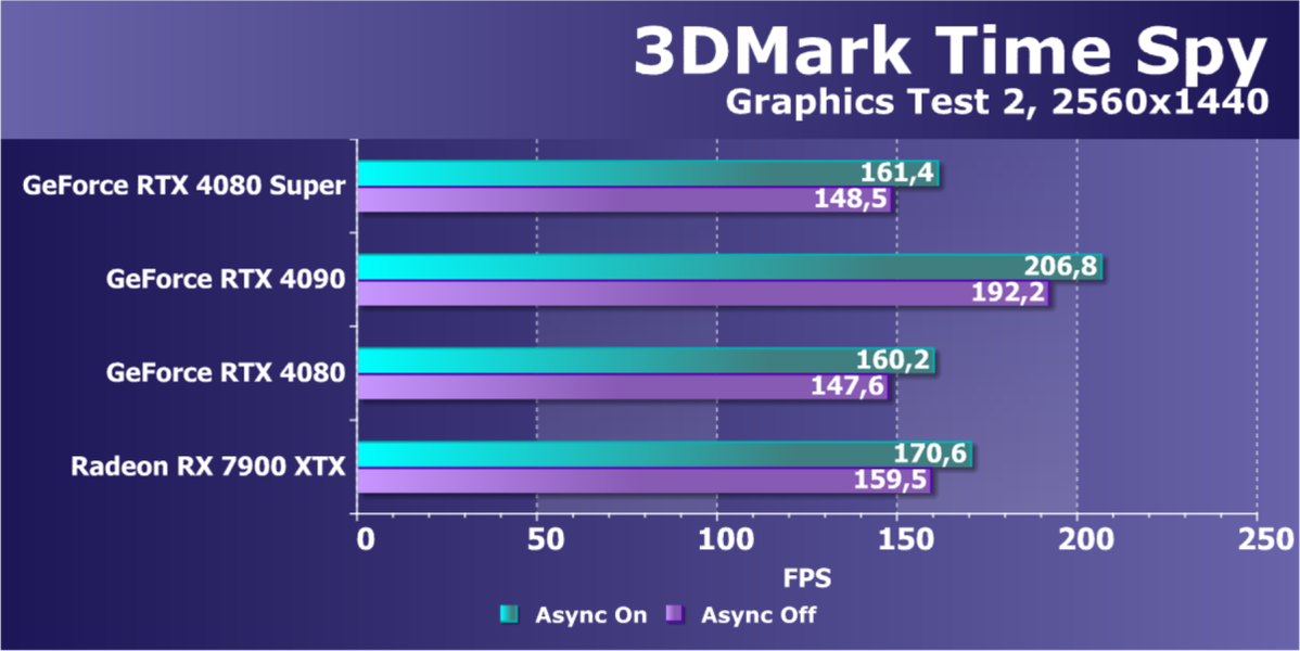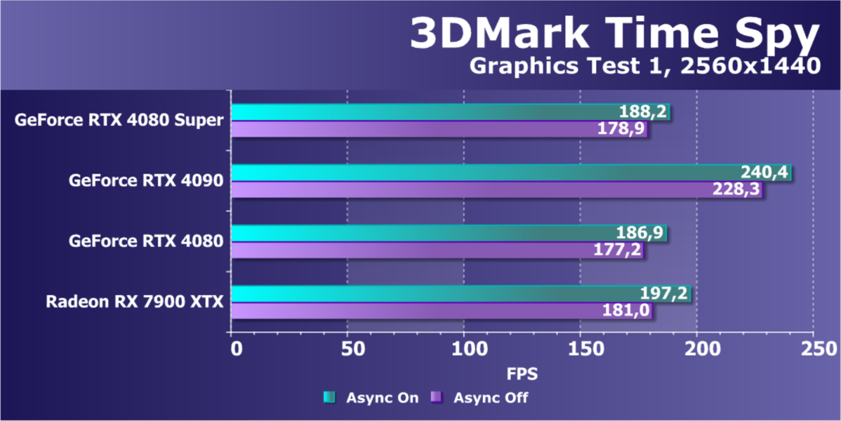У более дешевой карты Radeon RX 7900 XTX рейтинг выше, но опять повторим, что в данном случае речь идет о классических играх без RT и технологий масштабирования. Разумеется, у флагмана AMD еще и 24 ГБ памяти против 16 у GeForce RTX 4080 Super, однако мы полагаем, что в перспективе ближайших лет этих 16 ГБ вполне хватит для всех игр на максимальных настройках качества в 4K. Поэтому гнаться за объемом памяти в 24 гигабайта для игровой карты нет никакого смысла.