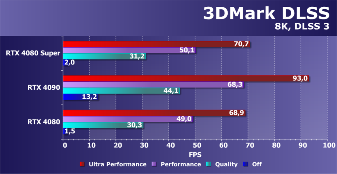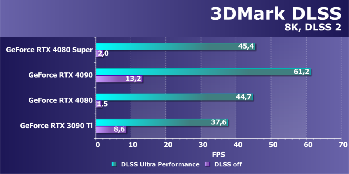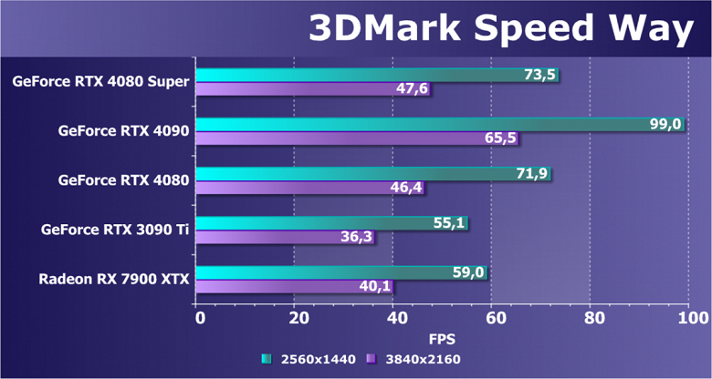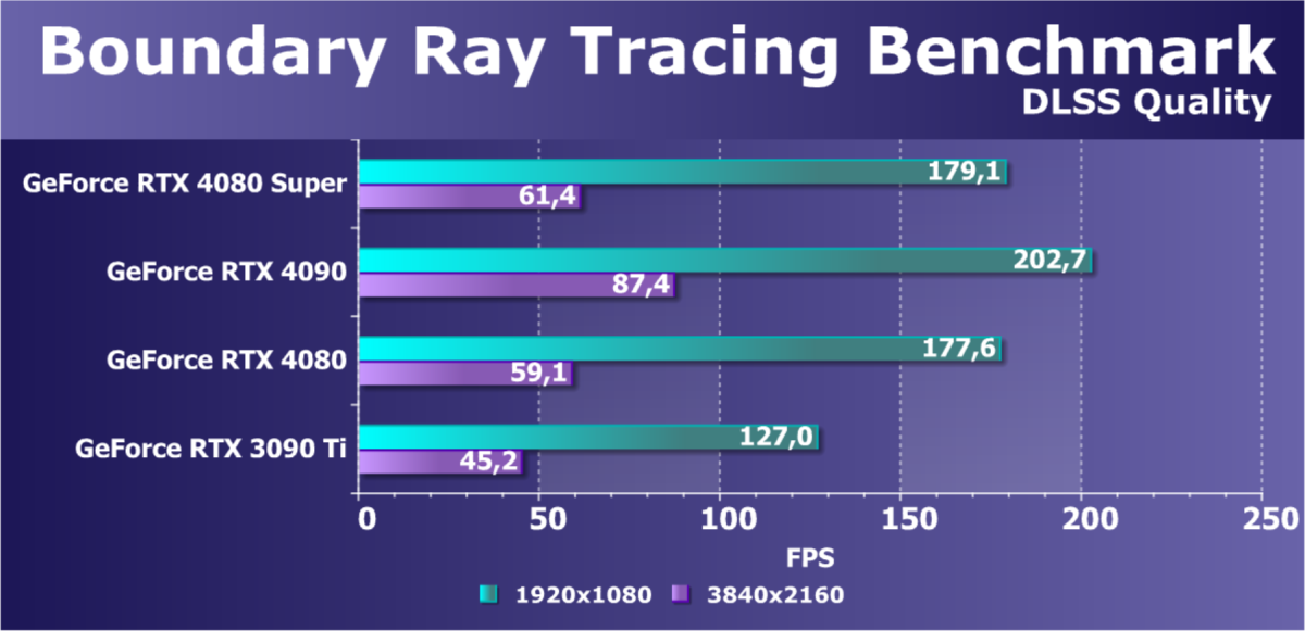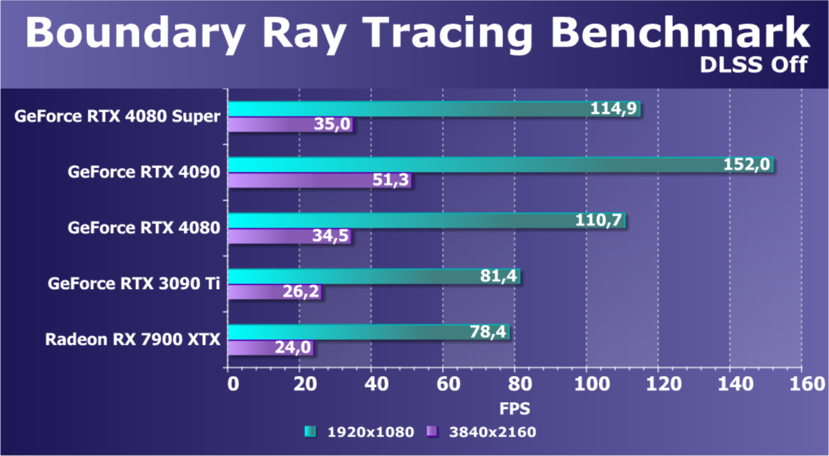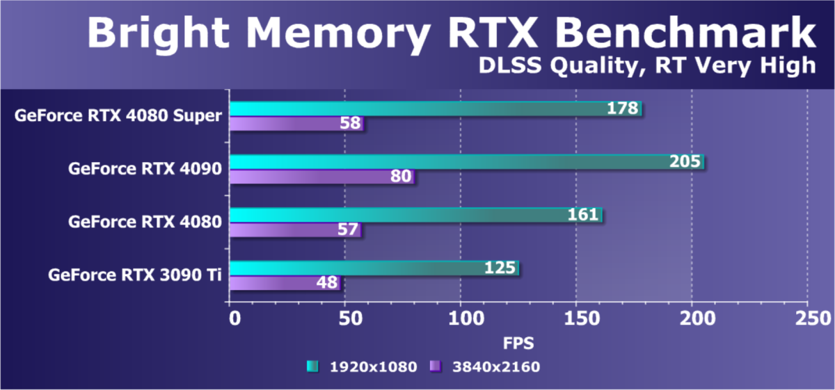 Отметим еще раз, что GeForce RTX 4080 Super отлично подходит для игры в разрешении 4K с максимальным качеством графики с трассировкой лучей даже без DLSS, а в ряде игр — и для разрешения 8К (но обязательна нужна поддержка DLSS).
