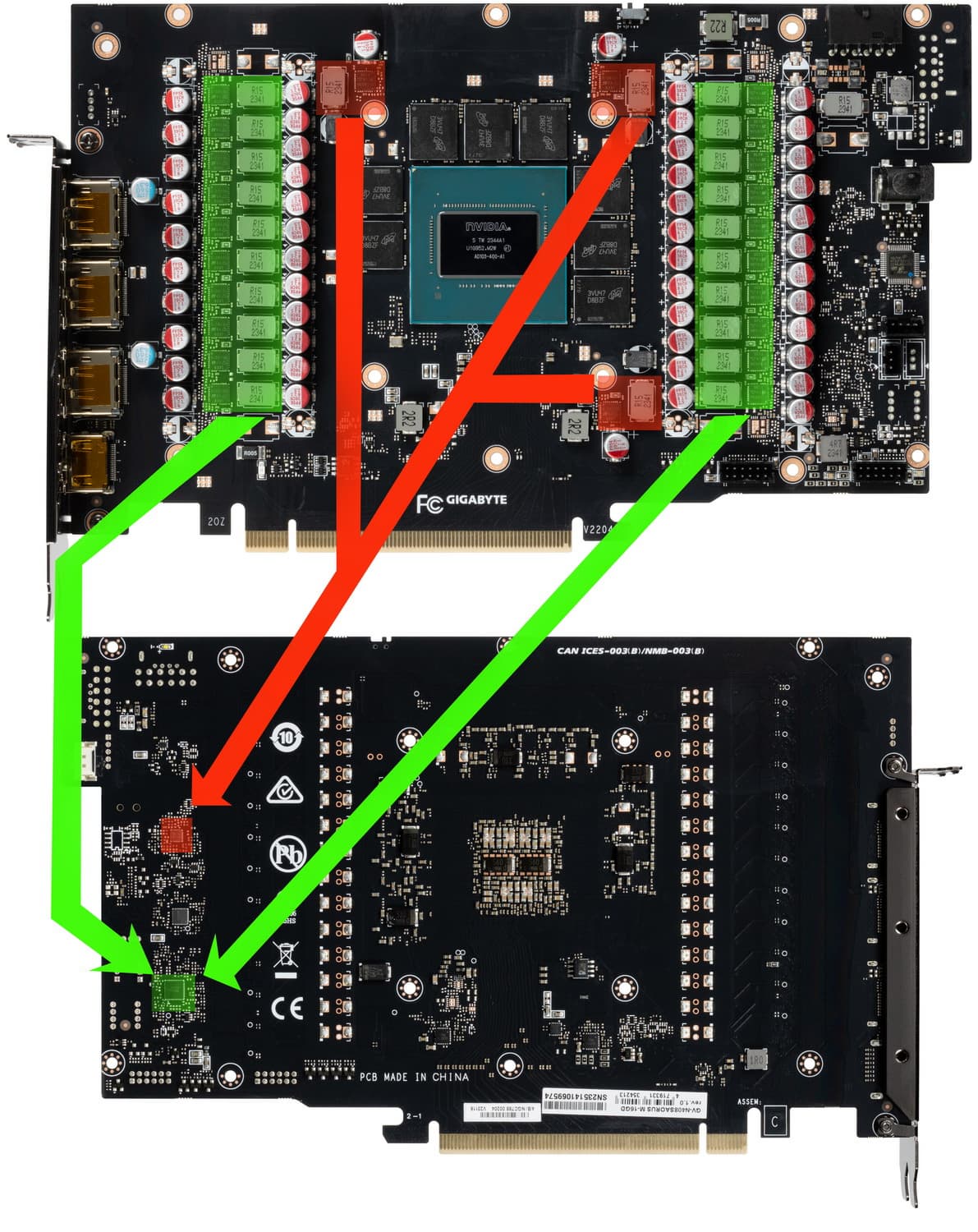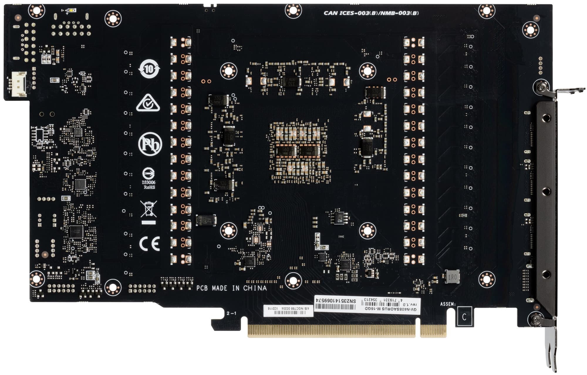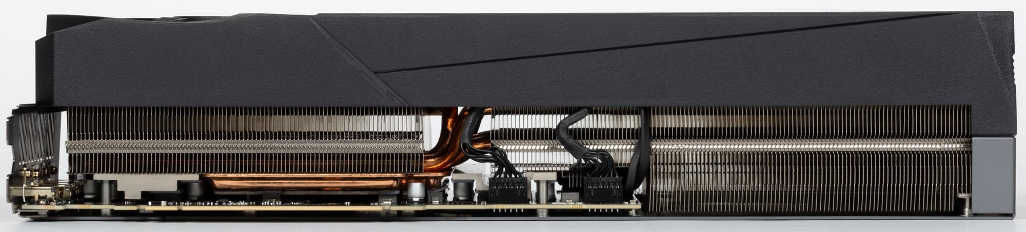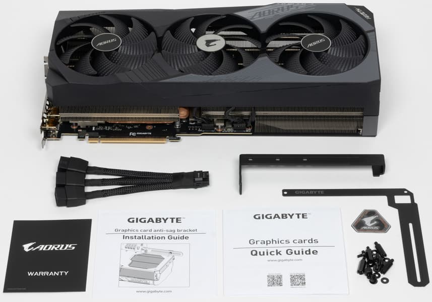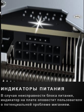 Карта Gigabyte имеет 16-контактный разъем питания версии PCIe 5.0 (в комплекте поставки имеется адаптер-переходник для подключения 3 разъемов питания типа PCIe 2.0, но мы рекомендуем подключать видеокарту напрямую к современному блоку питания с поддержкой PCIe 5.0).