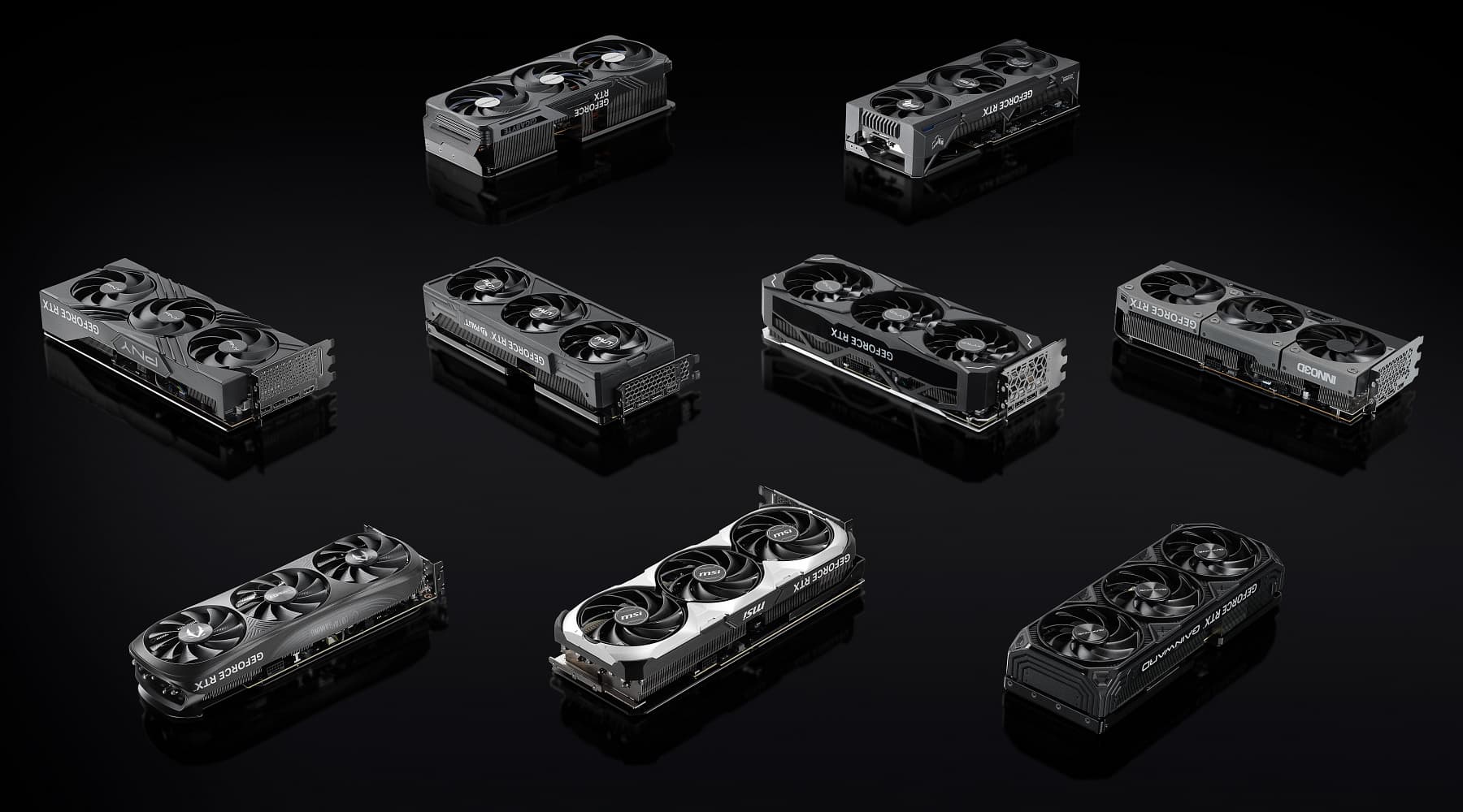| GeForce RTX 4070 | GeForce RTX 4070 Super | GeForce RTX 4070 Ti | GeForce RTX 4070 Ti Super | GeForce RTX 4080 | GeForce RTX 4080 Super | GeForce RTX 4090 | |