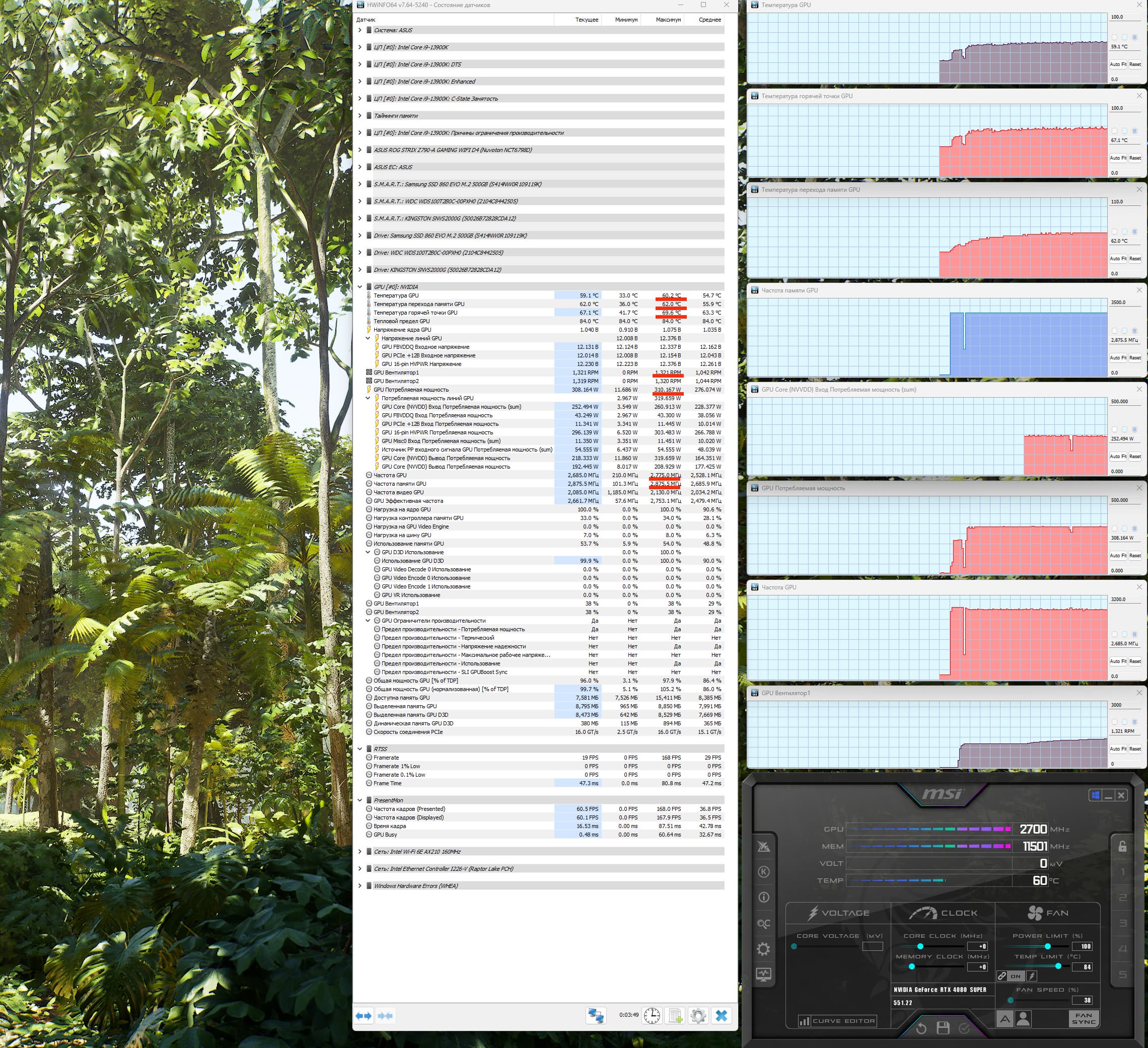 | 04 | RTX 4080 Super 16 ГБ, 2550—2705/23000 | 3053 | 244 | 125 000 |