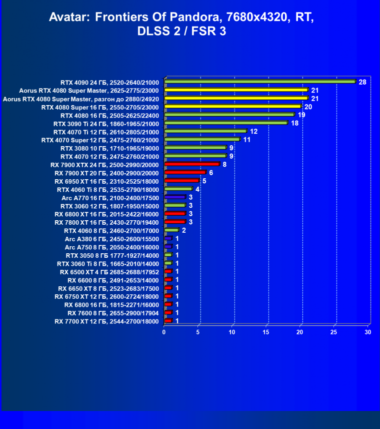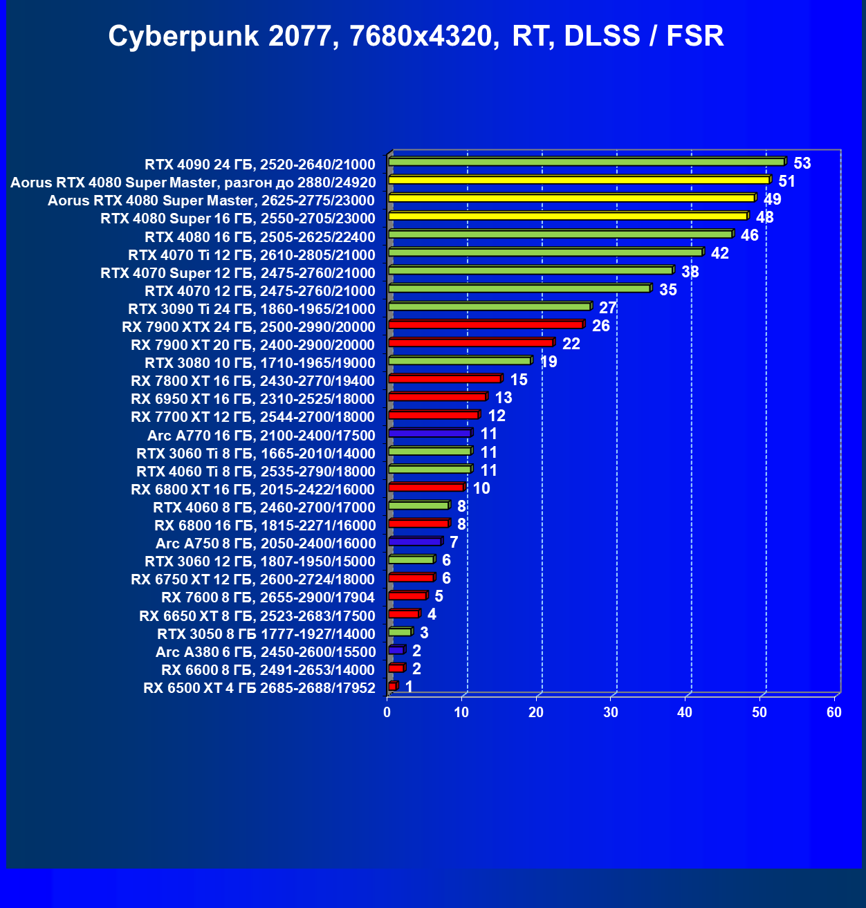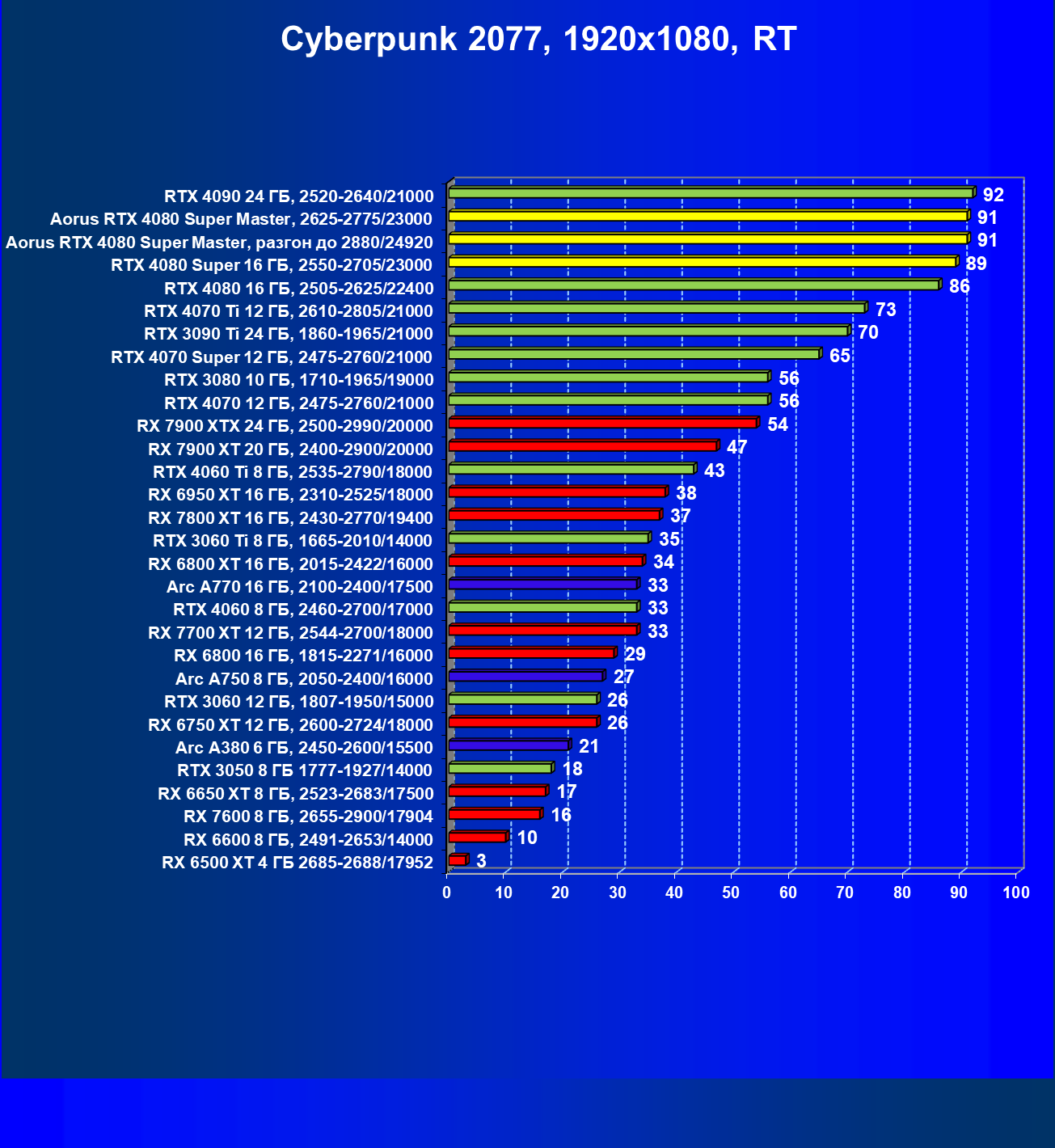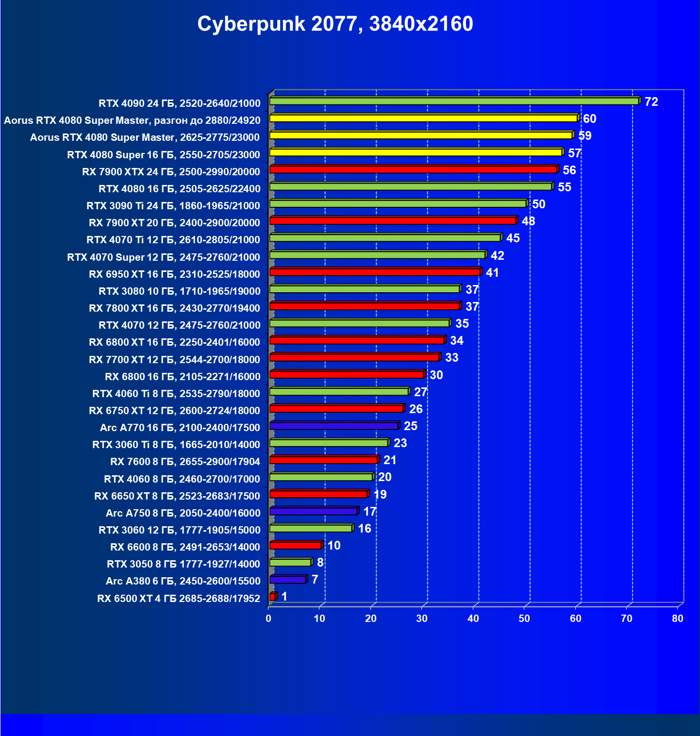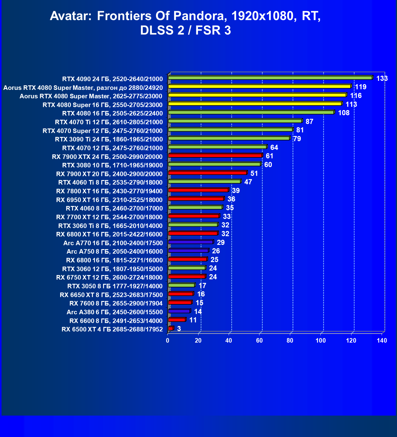 | 25 | Aorus RTX 4080 Super Master, разгон до 2880/24920 | 131 | 1764 | 135 000 |