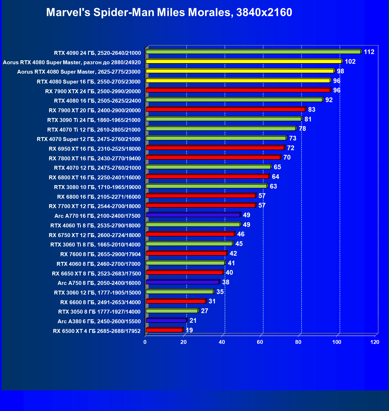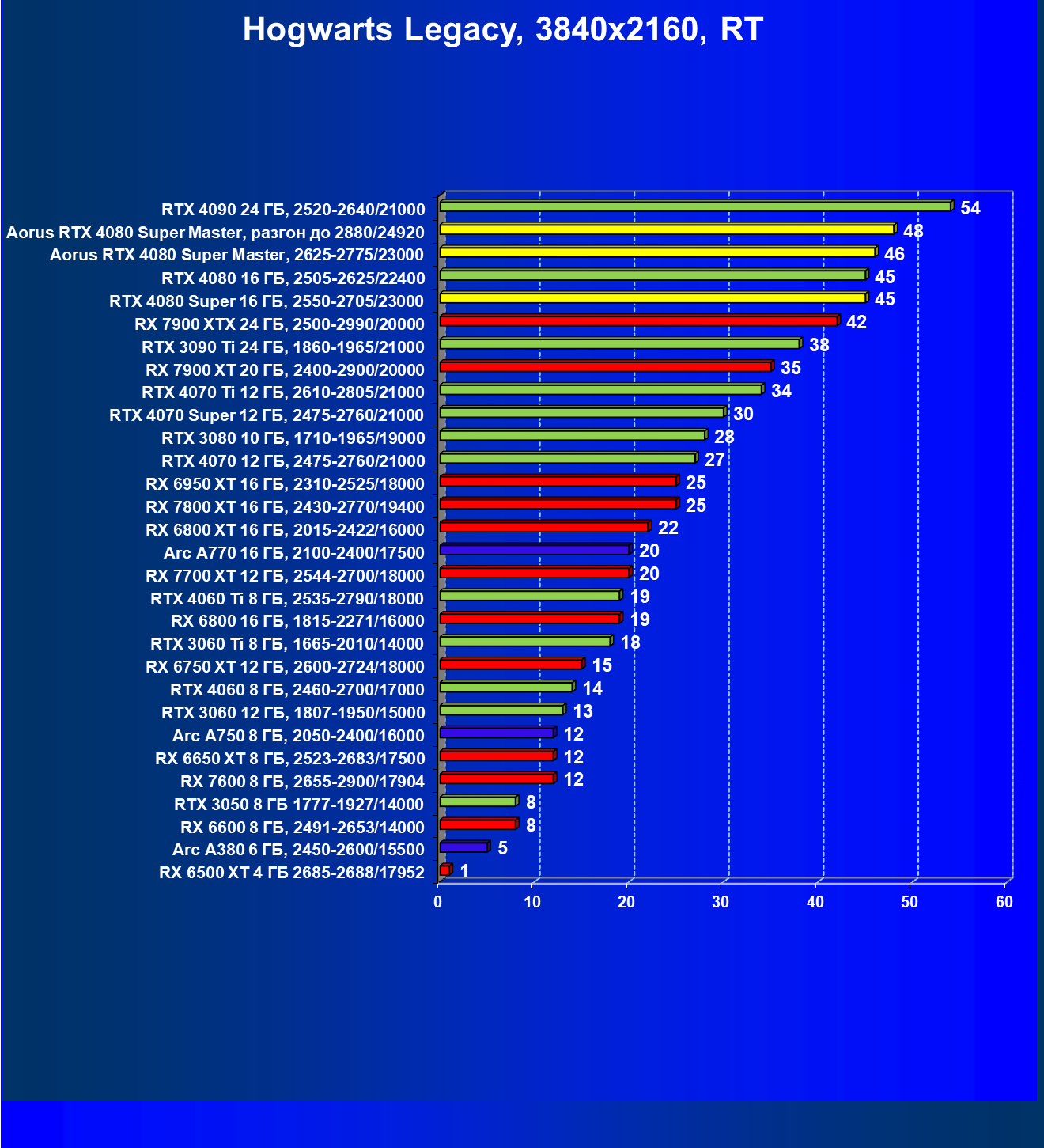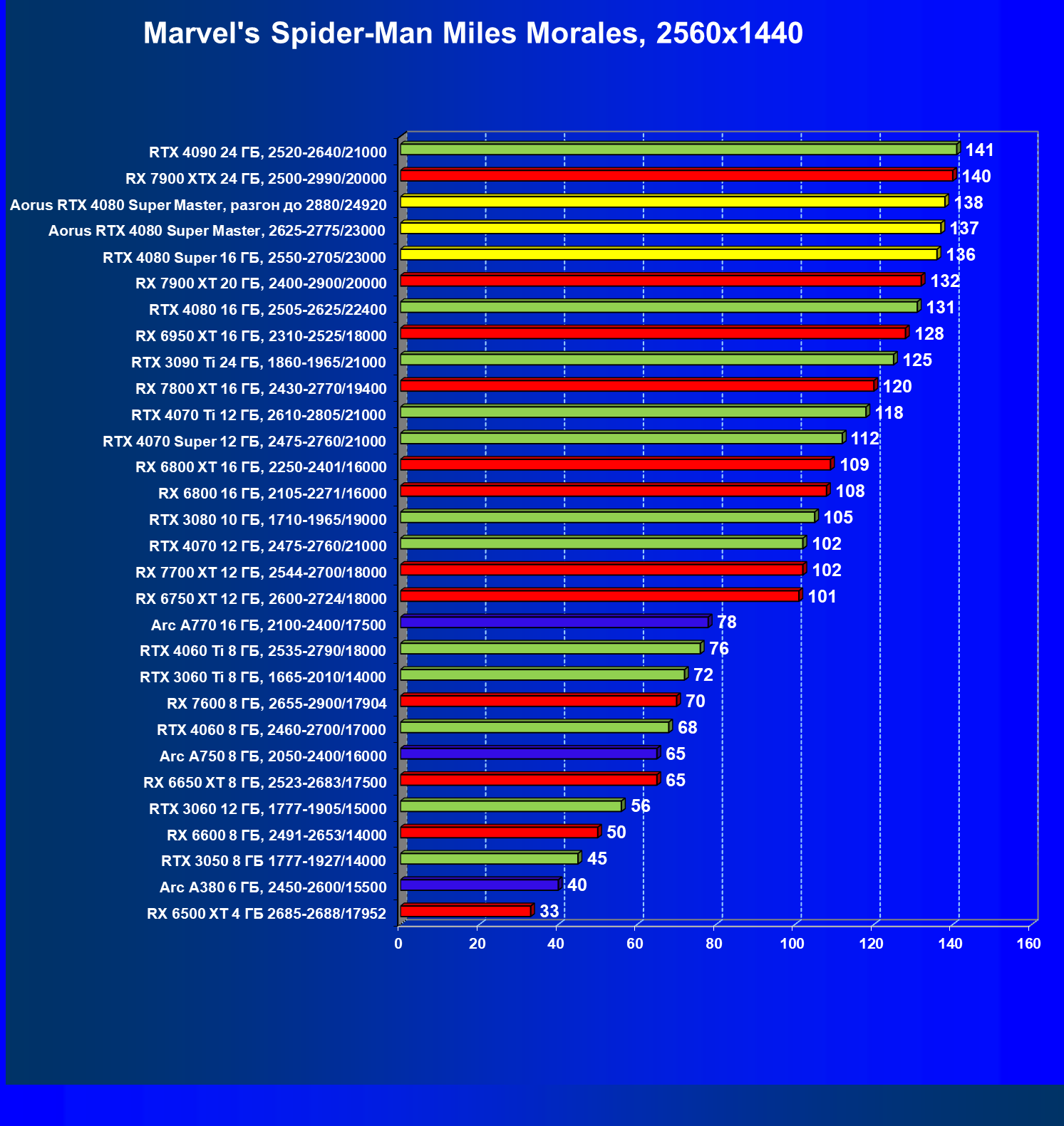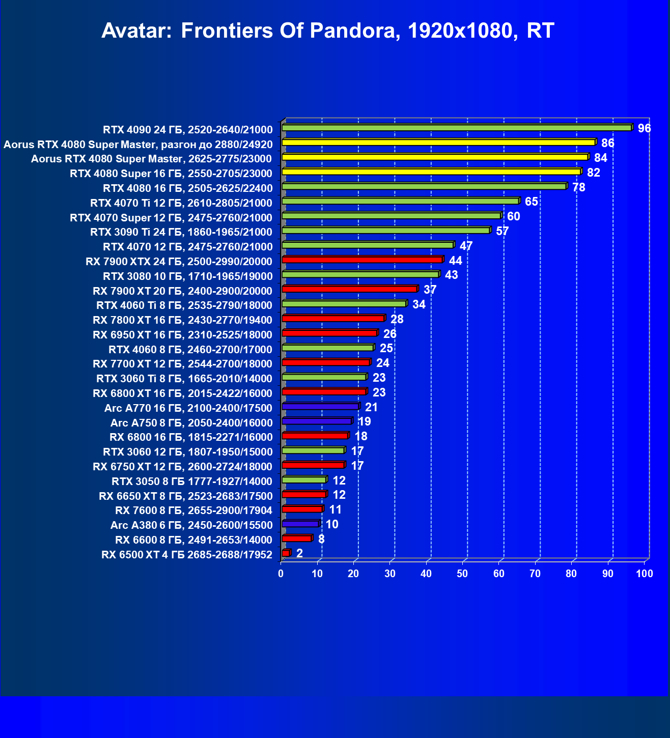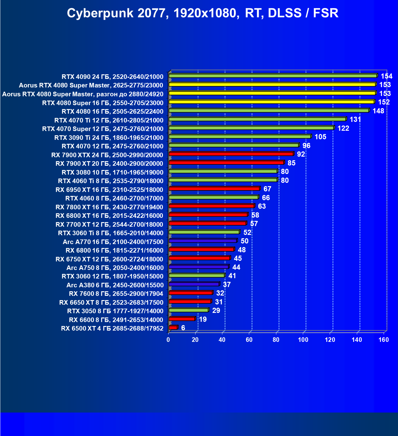 | 25 | Aorus RTX 4080 Super Master, разгон до 2880/24920 | 131 | 1764 | 135 000 |