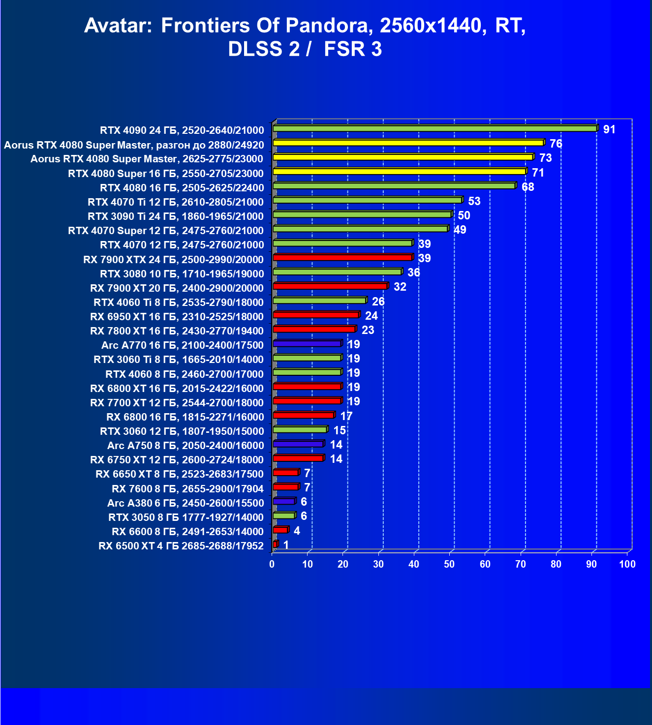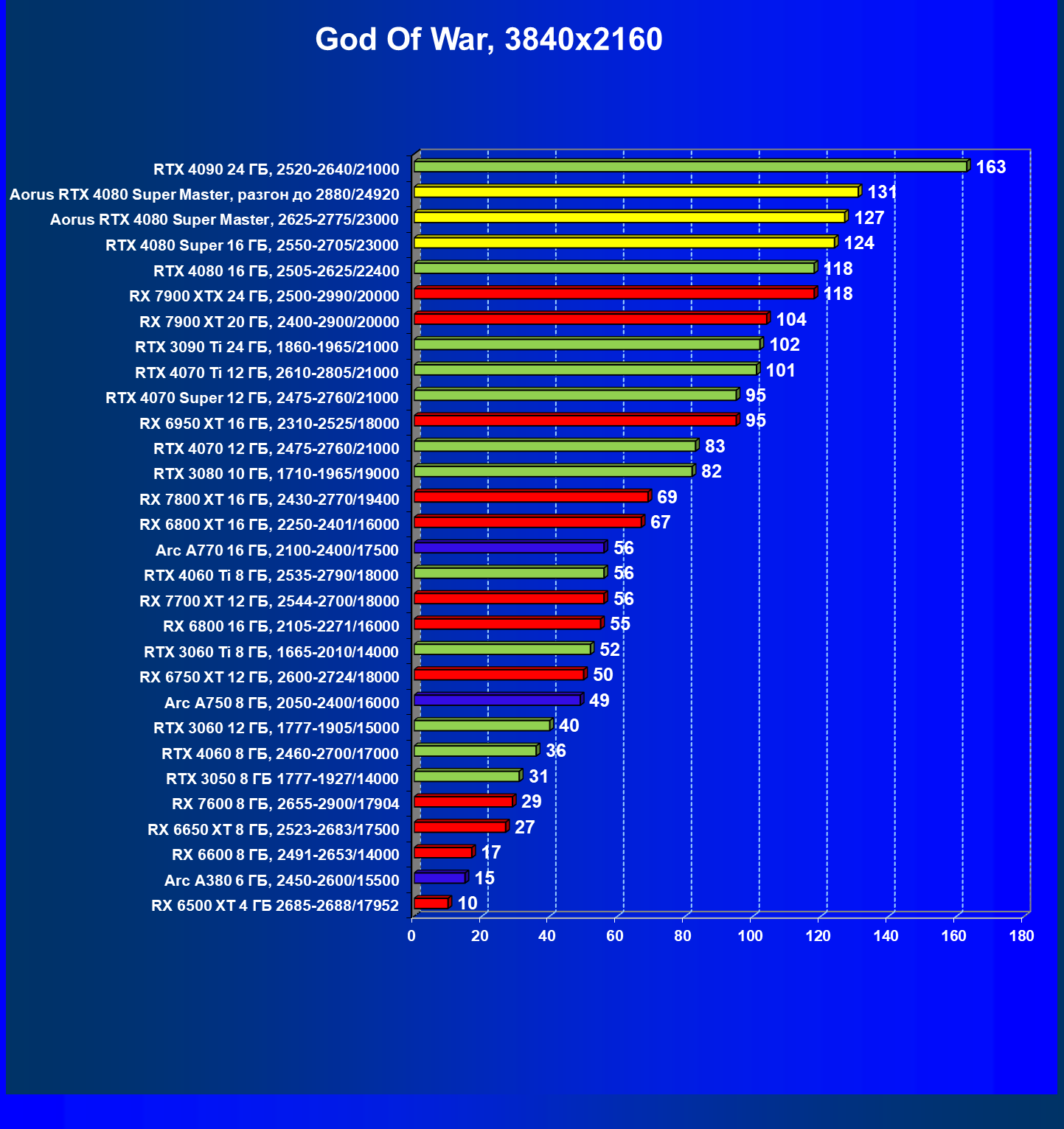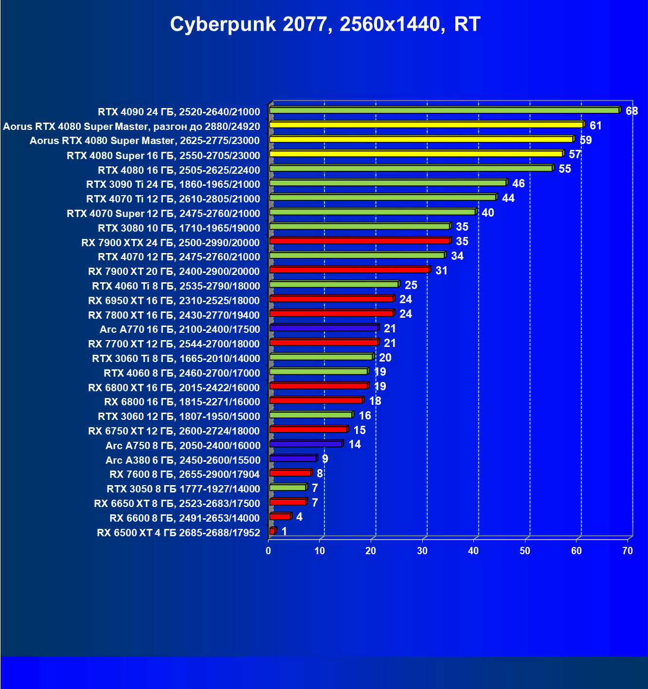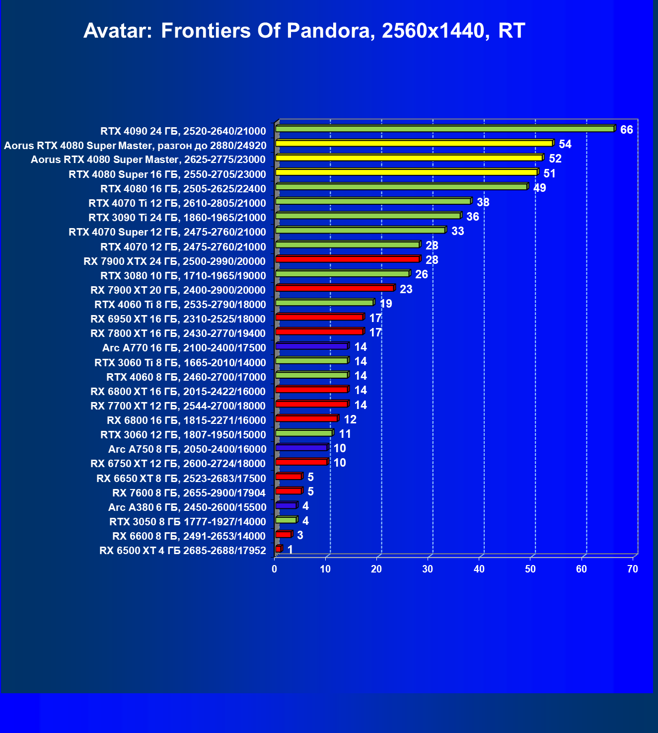 | 25 | Aorus RTX 4080 Super Master, разгон до 2880/24920 | 131 | 1764 | 135 000 |
