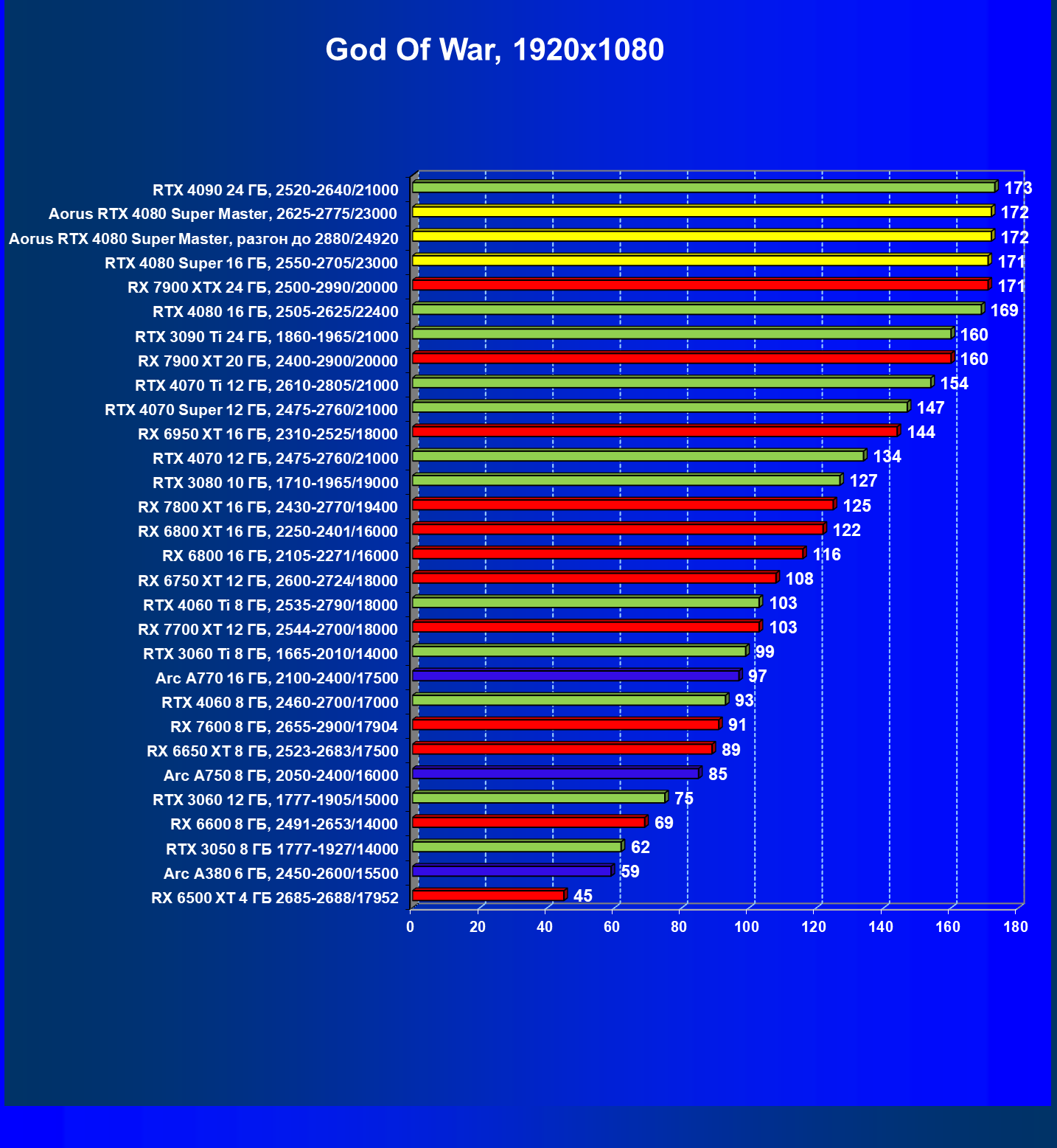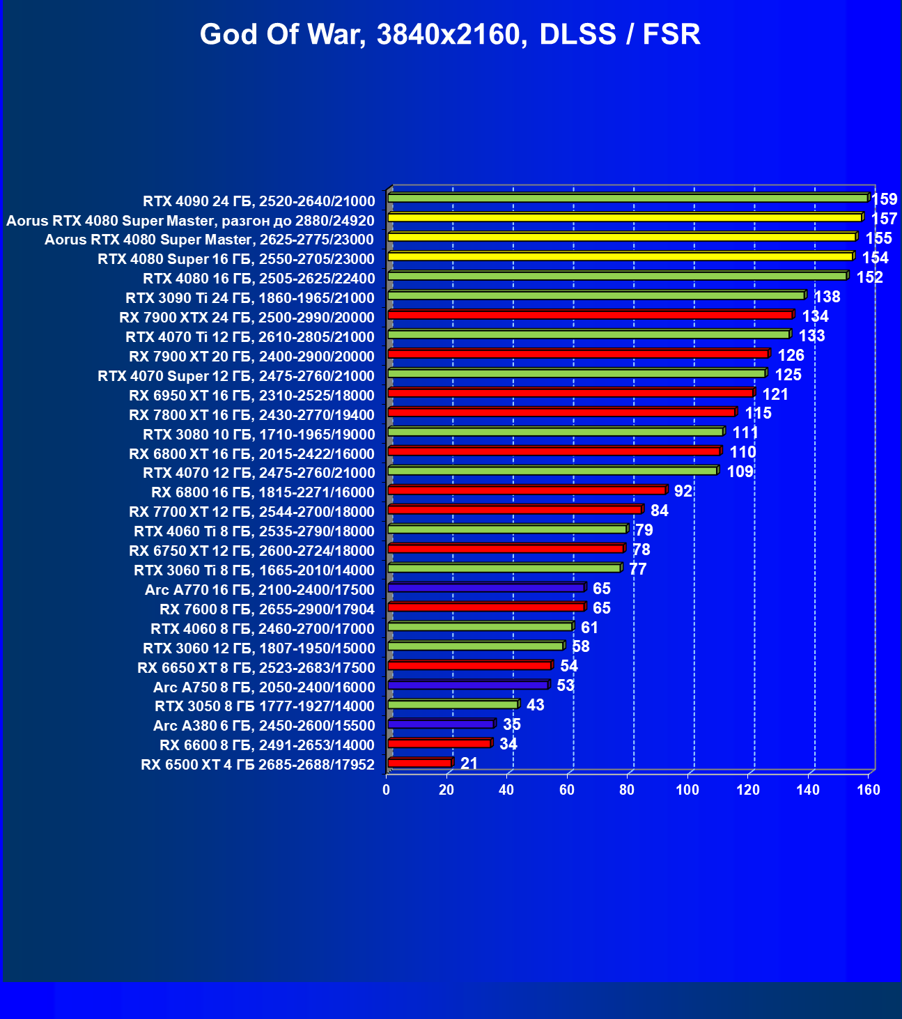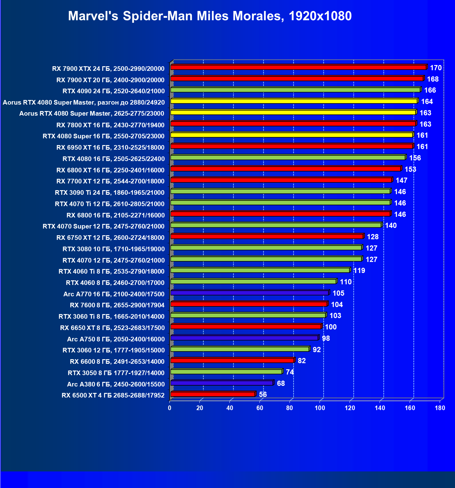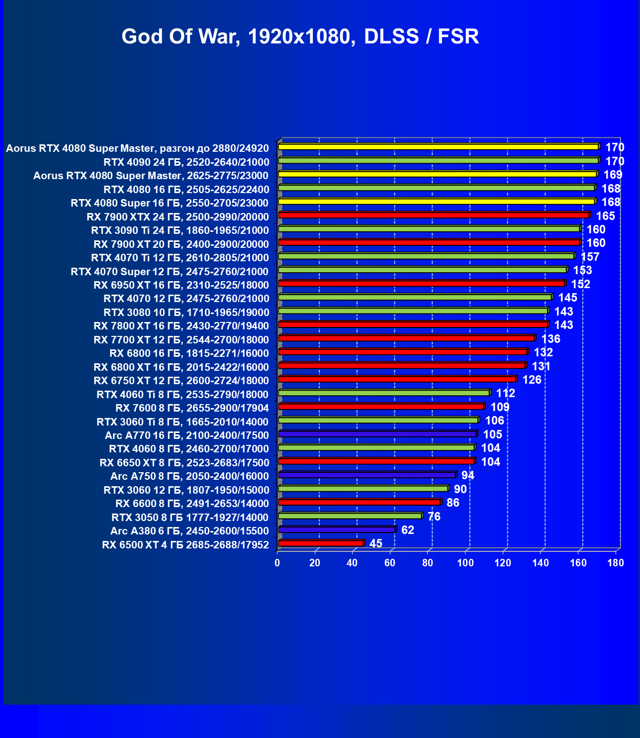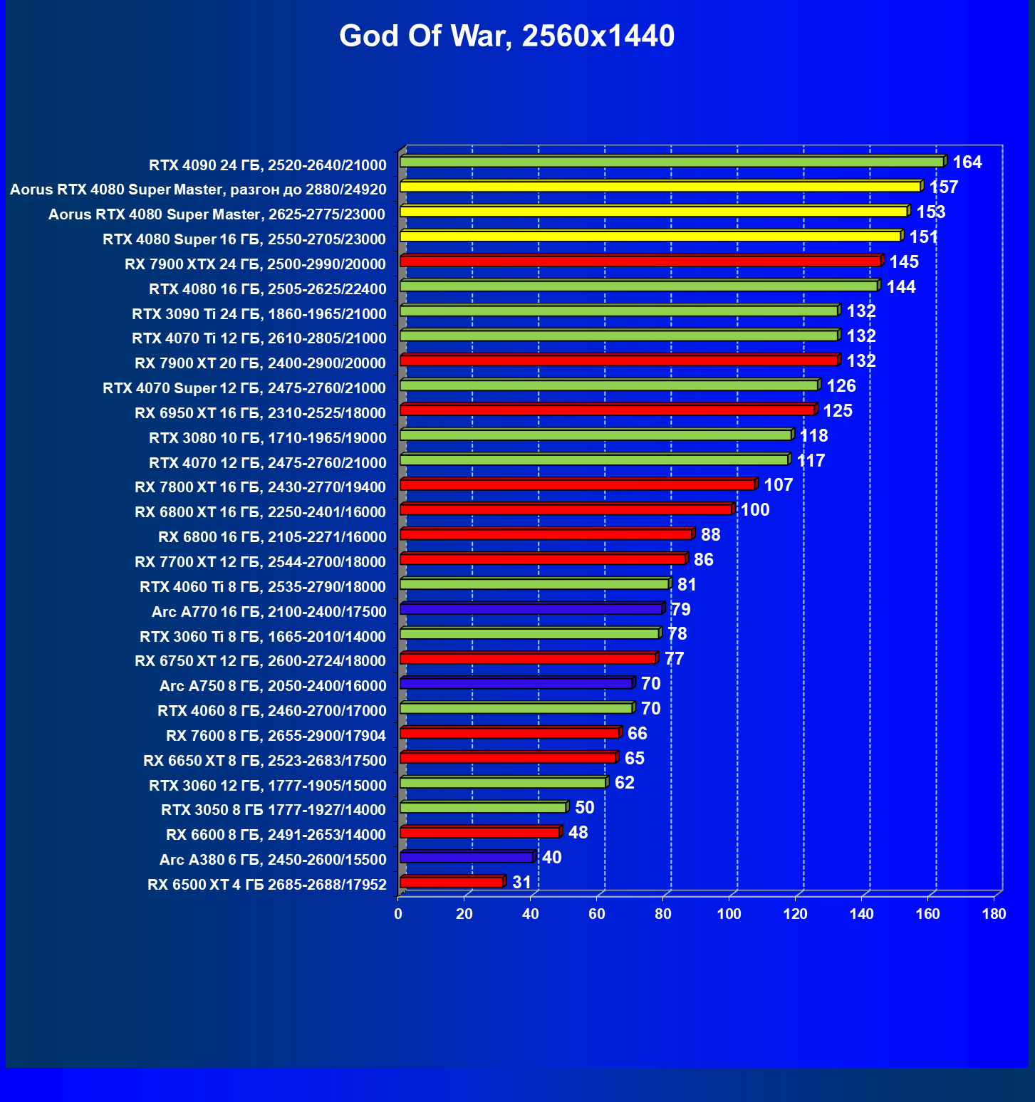 | 25 | Aorus RTX 4080 Super Master, разгон до 2880/24920 | 131 | 1764 | 135 000 |