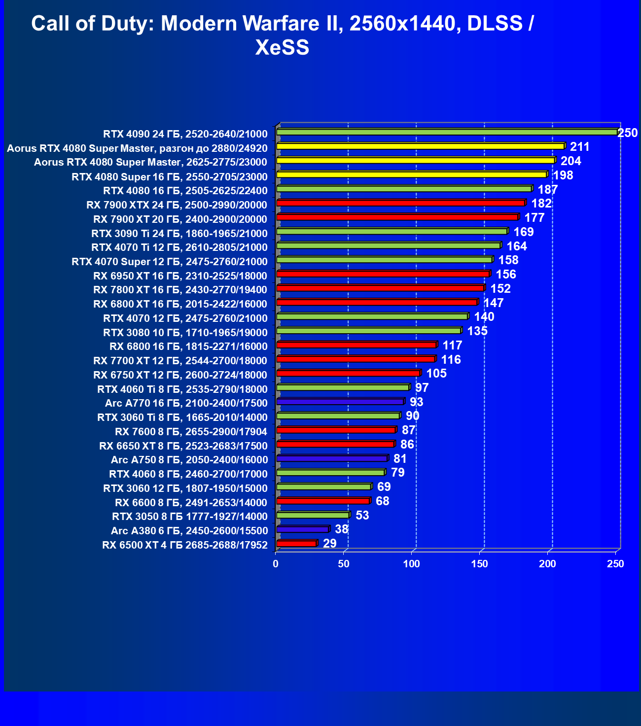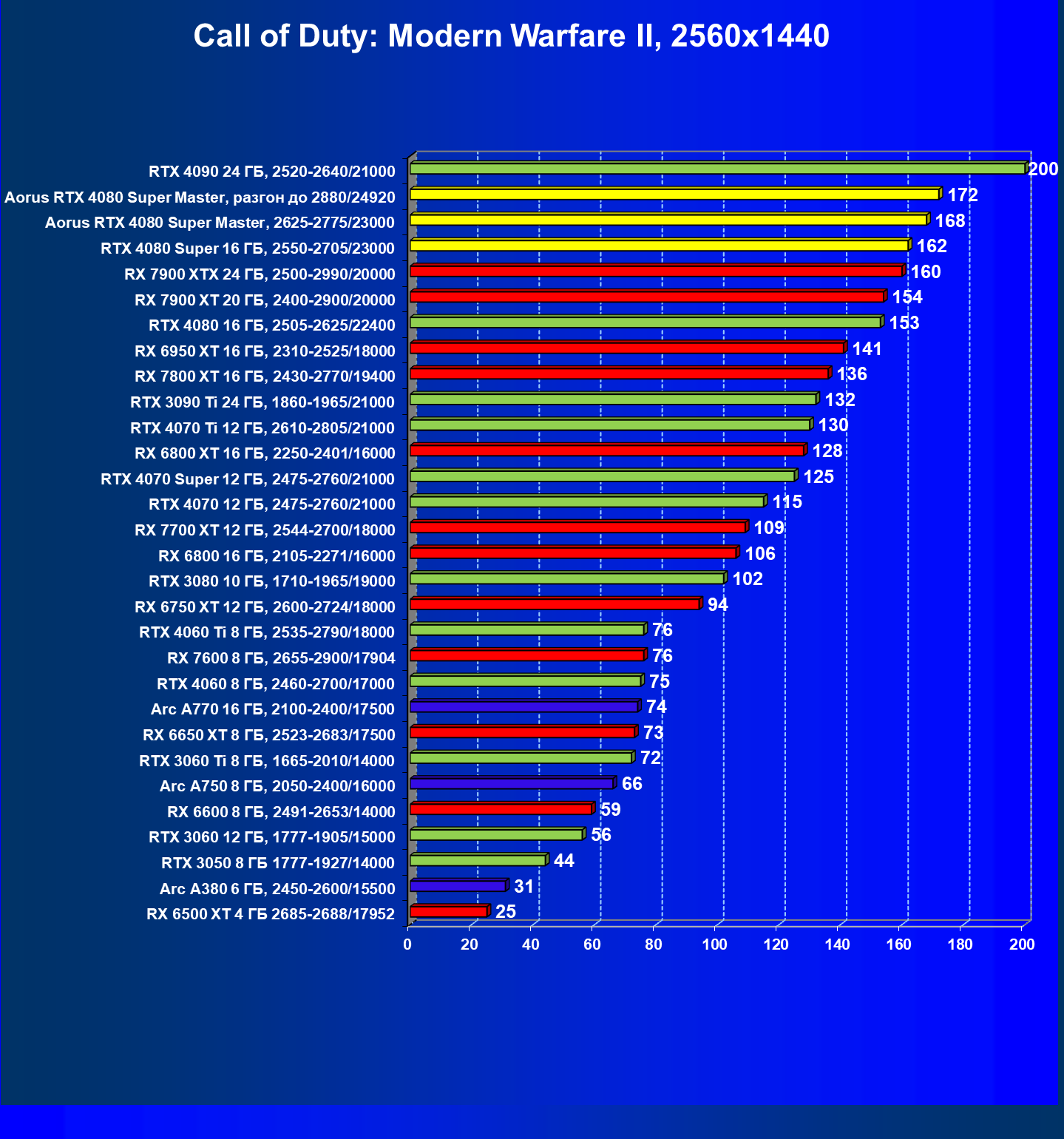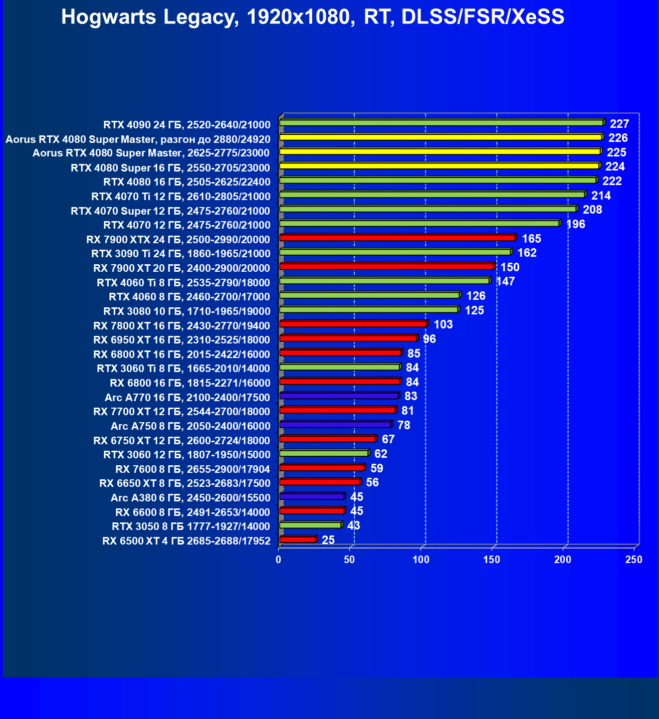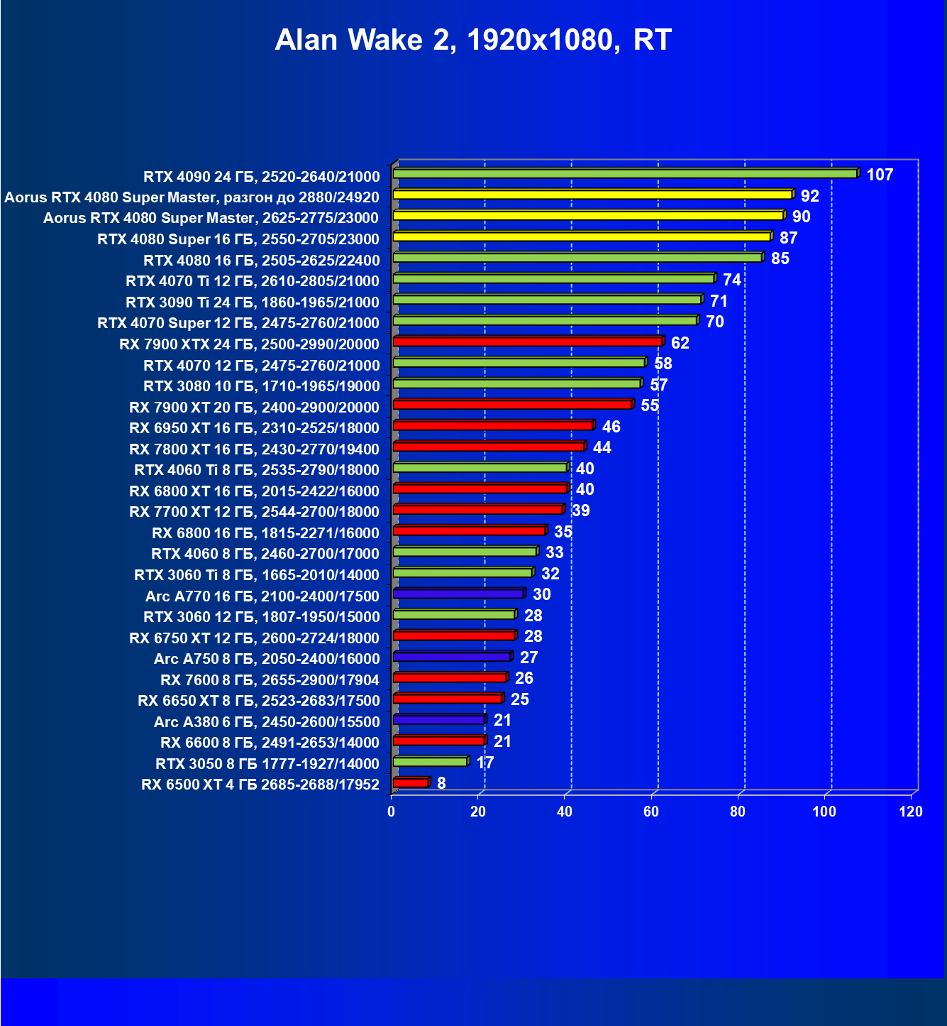 | 07 | RX 7900 XTX 24 ГБ, 2500—2990/20000 | 2163 | 221 | 98 000 |