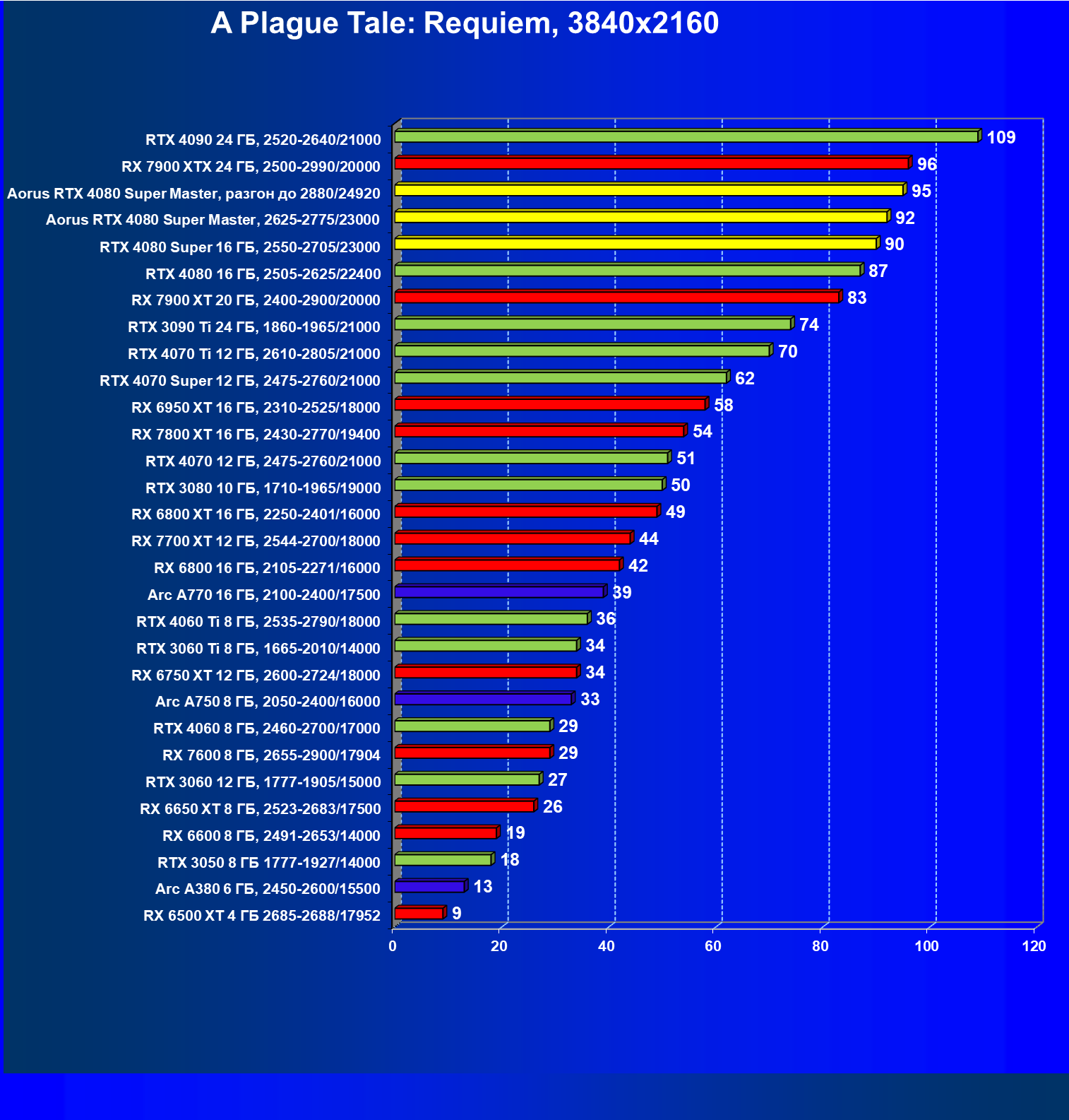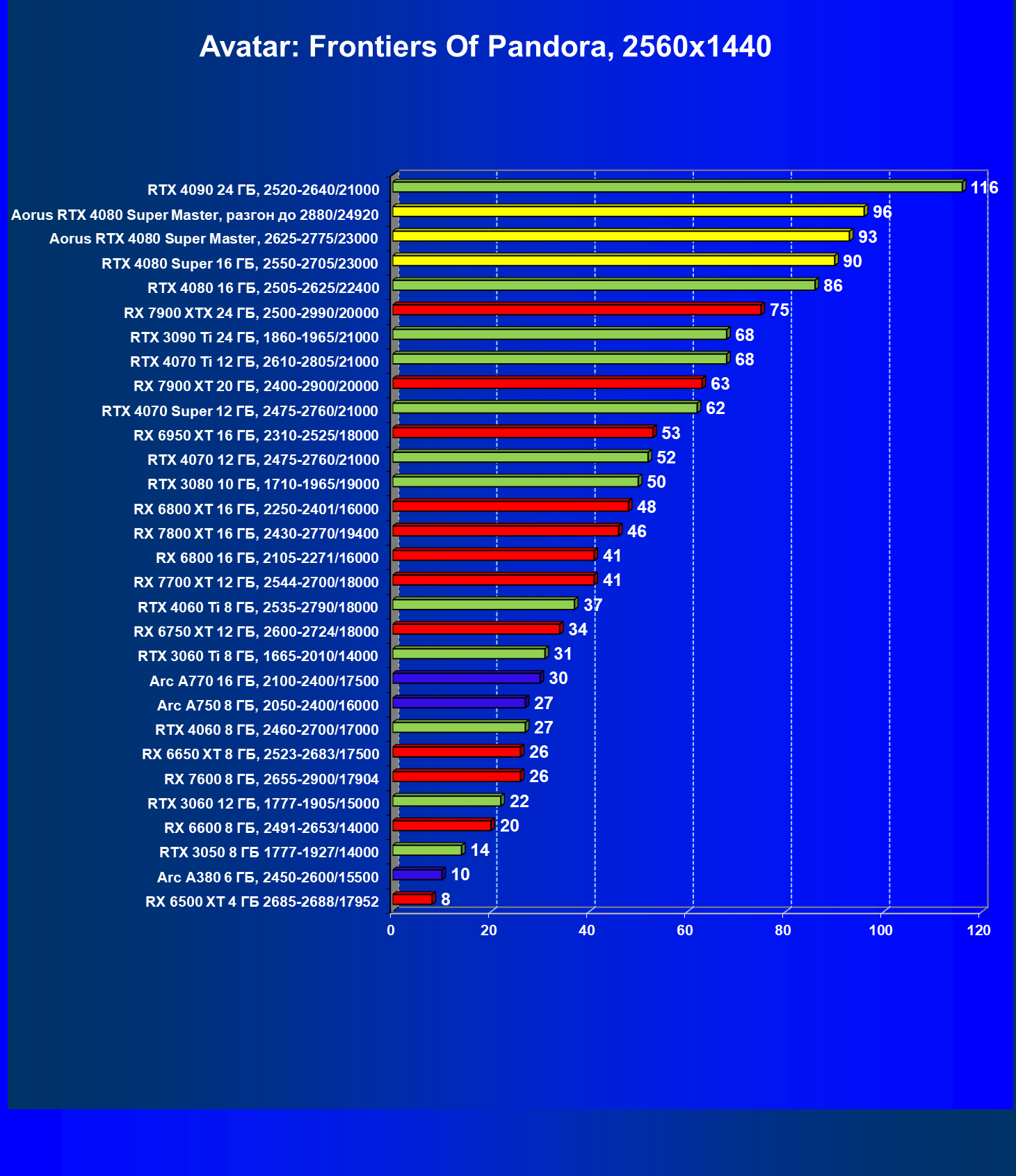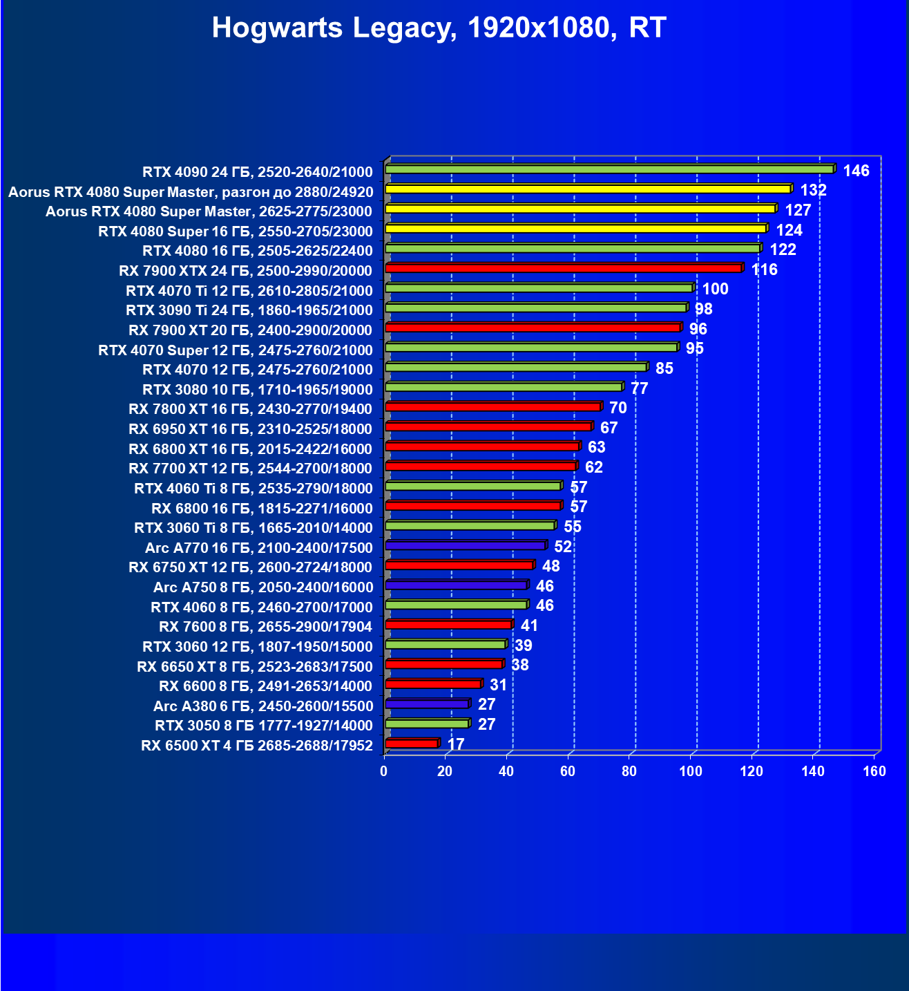 | 26 | Aorus RTX 4080 Super Master, 2625—2775/23000 | 127 | 1718 | 135 000 |