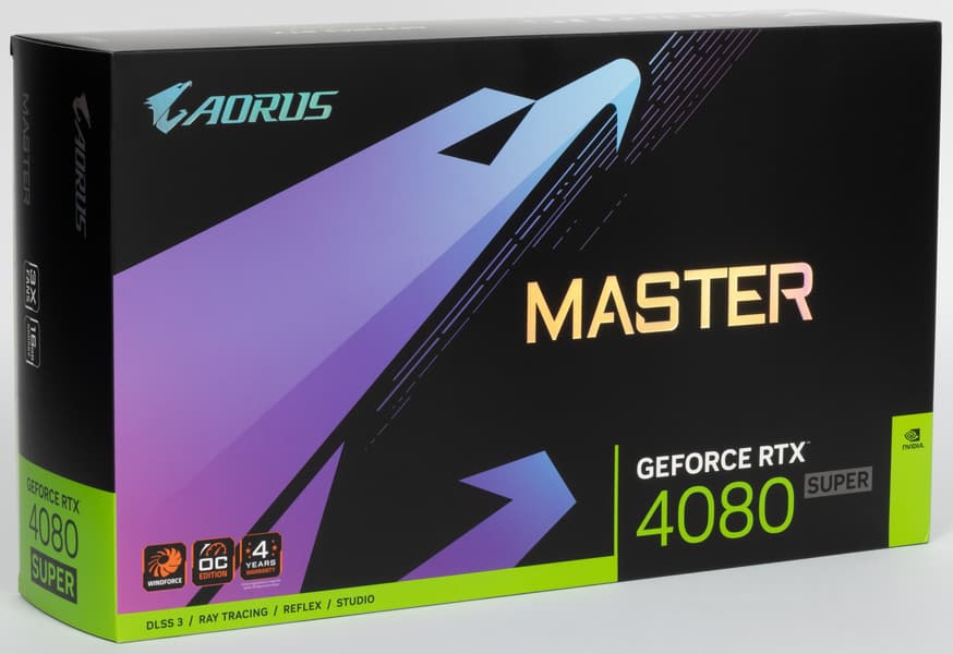 Кроме NVEnc, в графические процессоры архитектуры Ada включен аппаратный декодер пятого поколения NVDec, который появился в Ampere. Он поддерживает декодирование видеоданных с аппаратным ускорением в форматах: MPEG-2, VC-1, H.264 (AVCHD), H.265 (HEVC), VP8, VP9 и AV1. Также полностью поддерживается и декодирование видеоданных в разрешении 8K при 60 FPS. На этом с теоретической частью мы закончили и переходим к рассмотрению практических особенностей видеокарты GeForce RTX 4080 Super в исполнении компании Gigabyte.