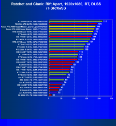 Заметим, что GeForce RTX 4080/Super находятся в первой пятерке лидеров, да и вообще самые производительные карты последнего поколения находятся высоко, заметно обгоняя модели того же уровня из поколений GeForce RTX 30 и Radeon RX 6000. Ну а в прямом противостоянии линеек AMD и Nvidia абсолютно доминируют GeForce RTX 40: 7 мест в первой десятке, причем в рейтинге с учетом RT и технологий масштабирования это первые 7 мест подряд.