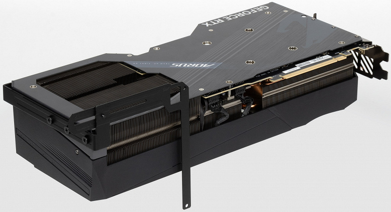 У видеокарт новой модели используется 16-контактный разъем питания PCIe 5.0, ставший стандартом для ATX 3.0. Впервые мы его увидели еще у GeForce RTX 3090 Ti, но с тех пор он был улучшен: обновленный разъем 12VHPWR с утопленными контактами должен обеспечить более надежное подключение, ведь с не до конца вставленным разъемом видеокарта просто не будет работать. Блоки питания с такими разъемами уже достаточно широко представлены на рынке, также можно применить переходник с более привычных 8-контактных разъемов PCIe 2.0, хотя это и не рекомендуется.