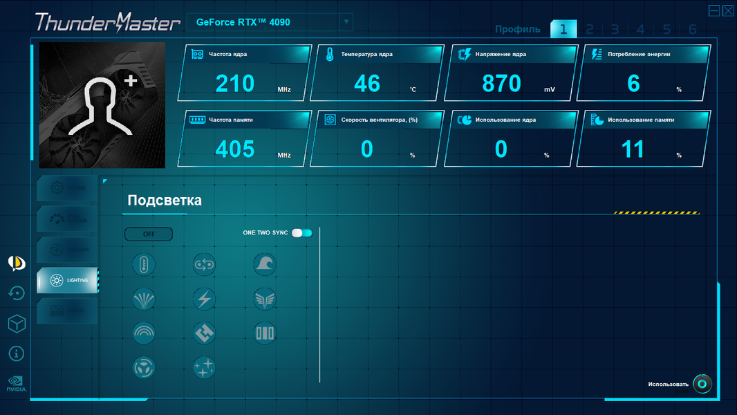 Управление работой карты обеспечивается с помощью фирменной утилиты ThunderMaster.