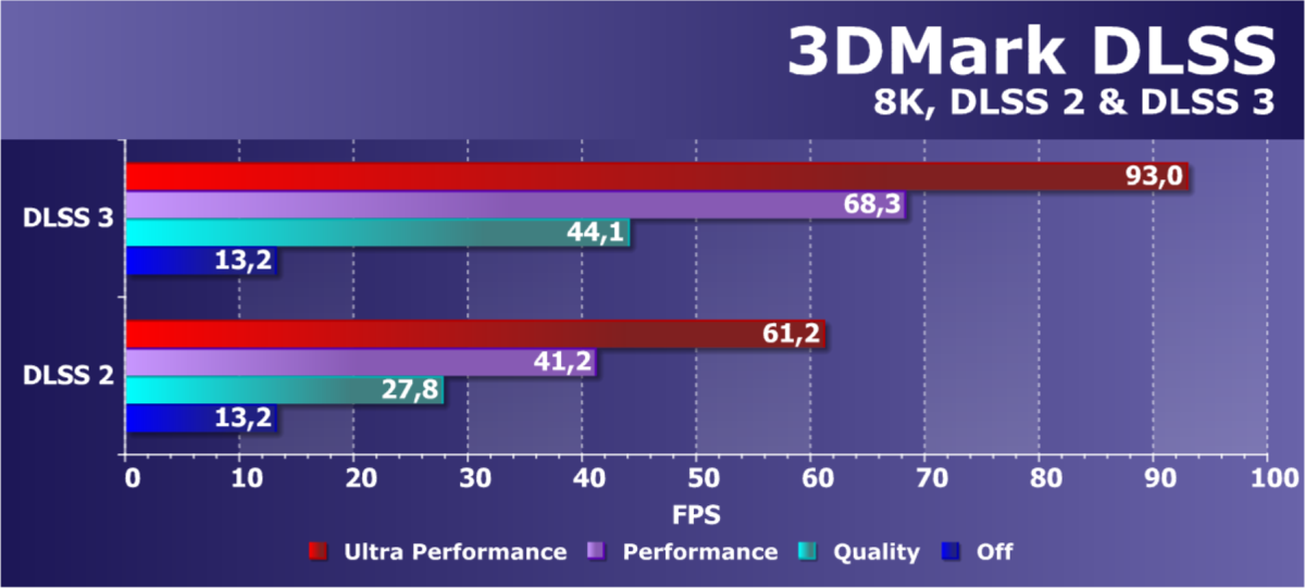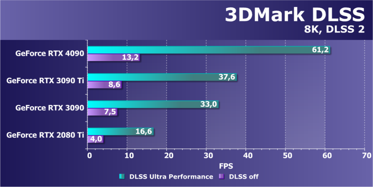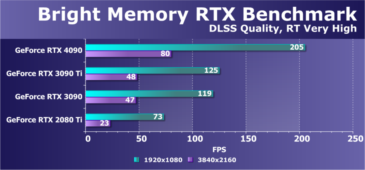 Результаты тестов с включенной аппаратной трассировкой лучей и DLSS/FSR в разрешении 7680×4320 (8К) мы сейчас демонстрировать не станем, ждите выхода нашего отдельного материала по этой теме.
