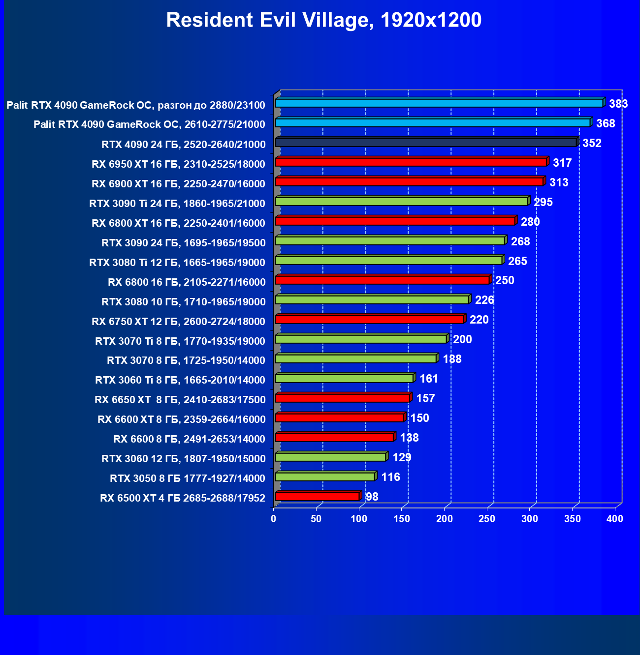Почти все вышесказанное справедливо и здесь. Если кратко, то сейчас уже нет смысла приобретать флагманы AMD 6000-й серии. А вот в последних обзорах по RTX 3090 Ti мы отмечали, что эти карты еще будут какое-то время популярны из-за упавших на них цен и с учетом завышенных в первое время цен на RTX 4090. Так оно и вышло: RTX 3090/3090 Ti пока значительно выгоднее.