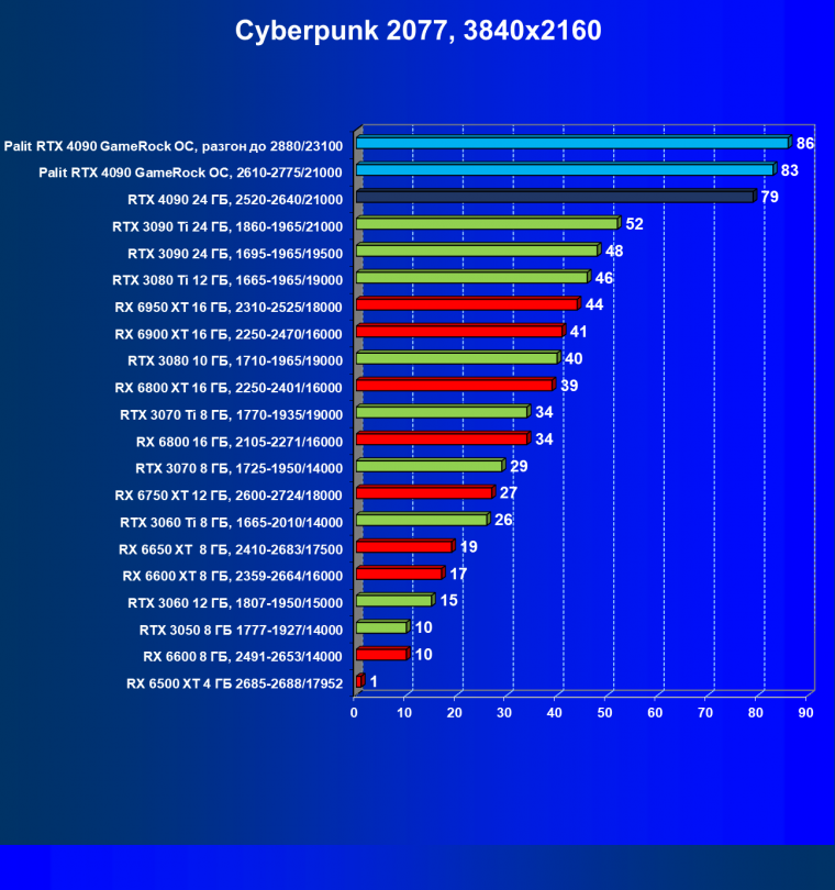 01 Palit RTX 4090 GameRock OC, разгон до 2880/23100 1041 70 148 000