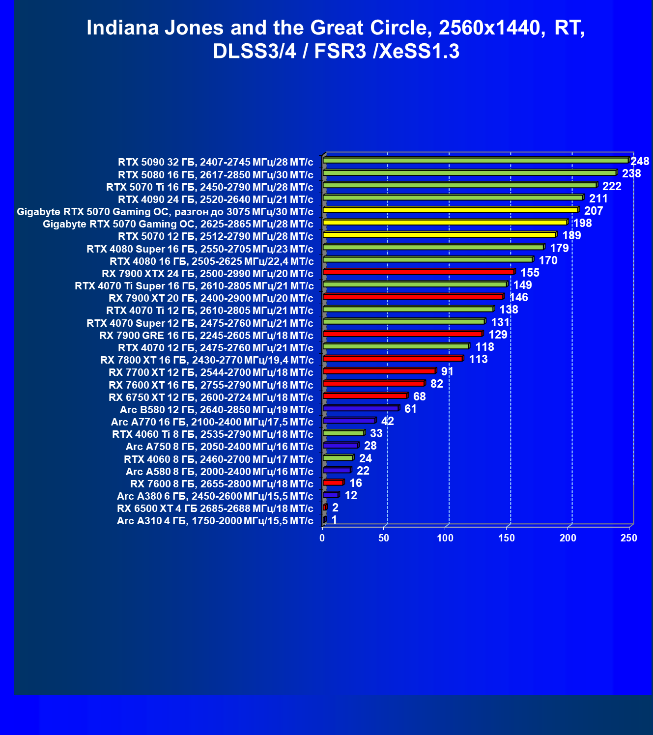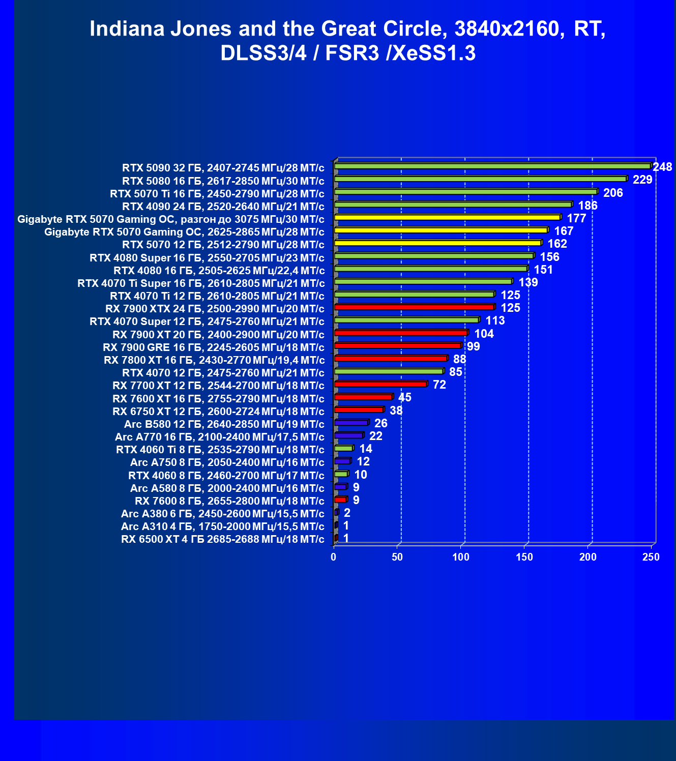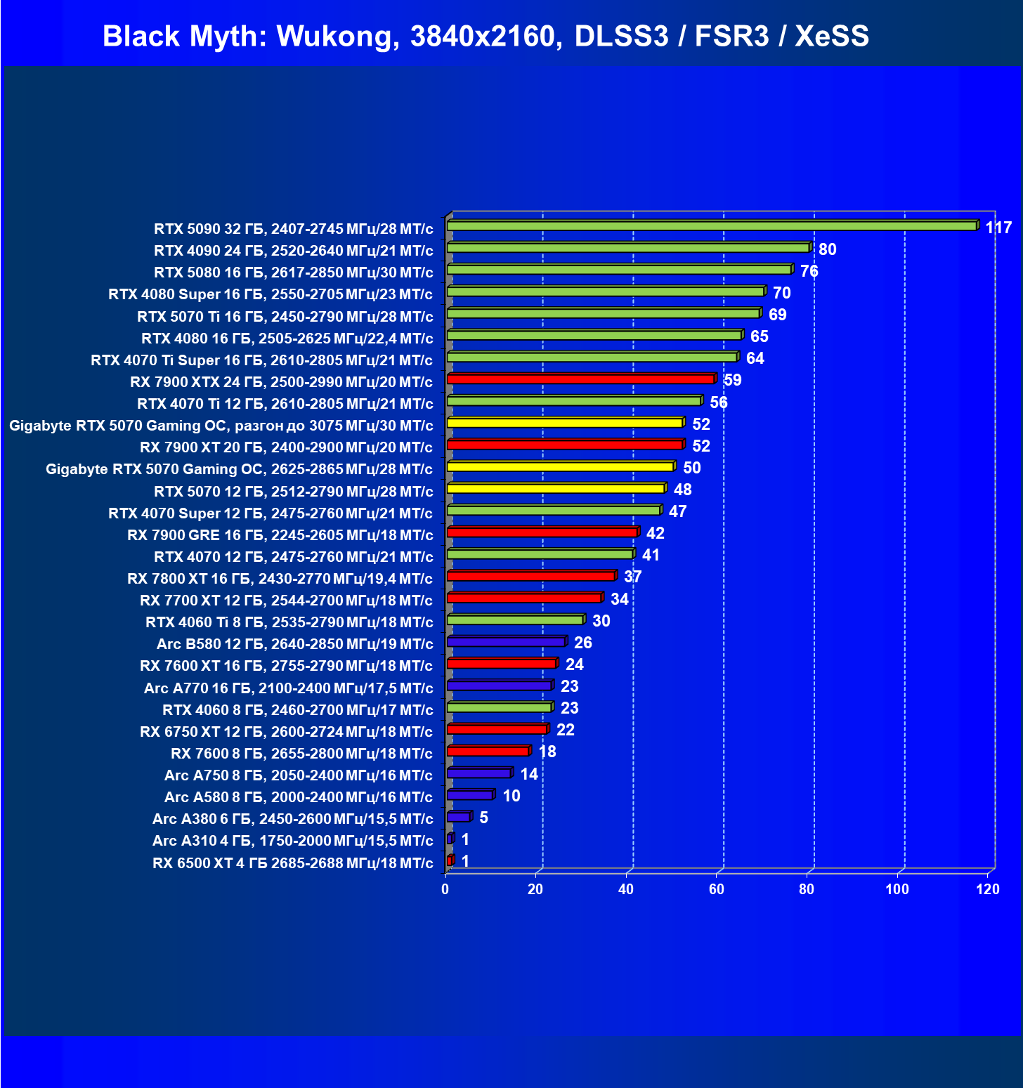 | 06 | RTX 5070 12 ГБ, 2512—2790 МГц/28 ГТ/с | 473 | 4684 | 99 000 |