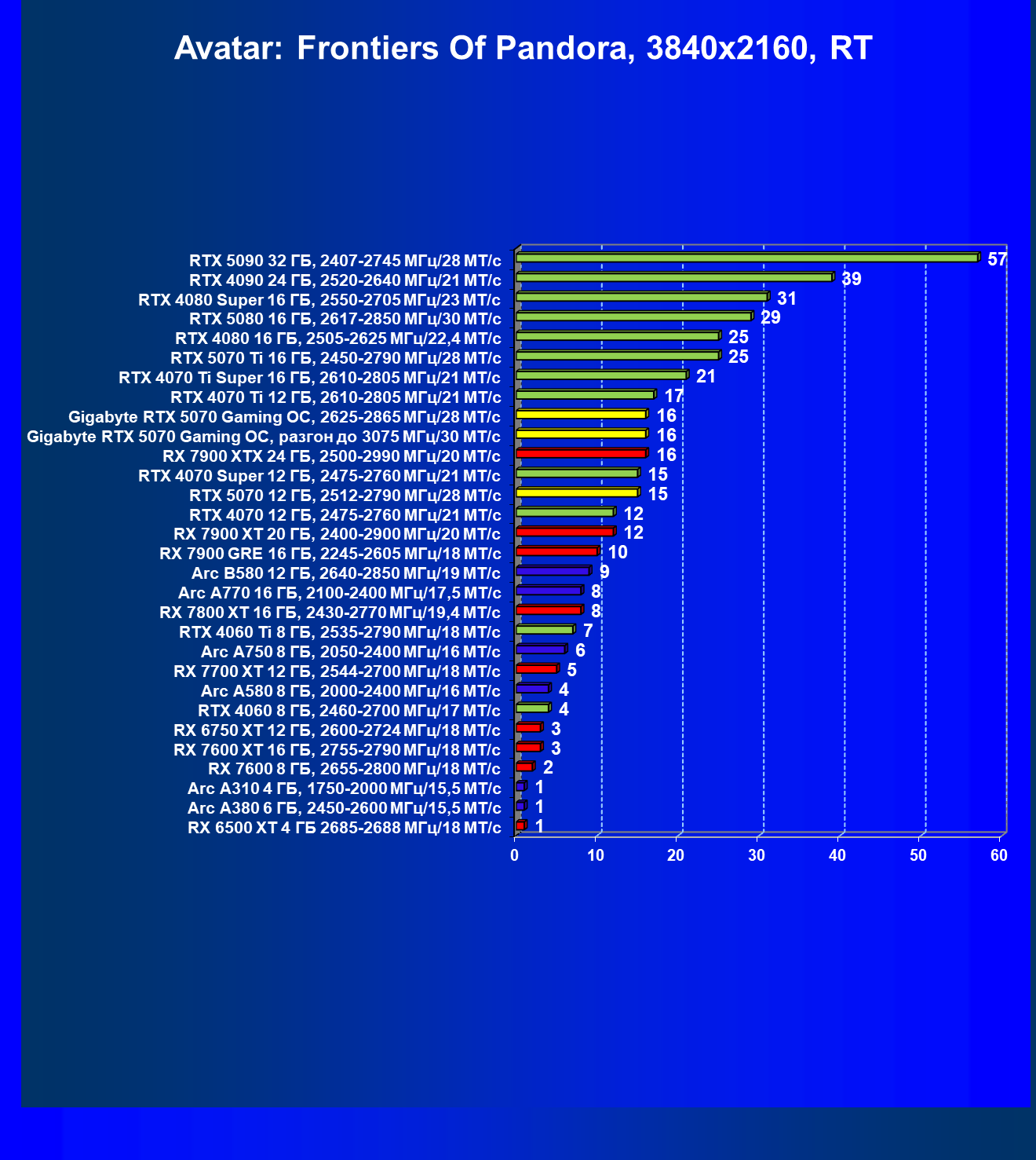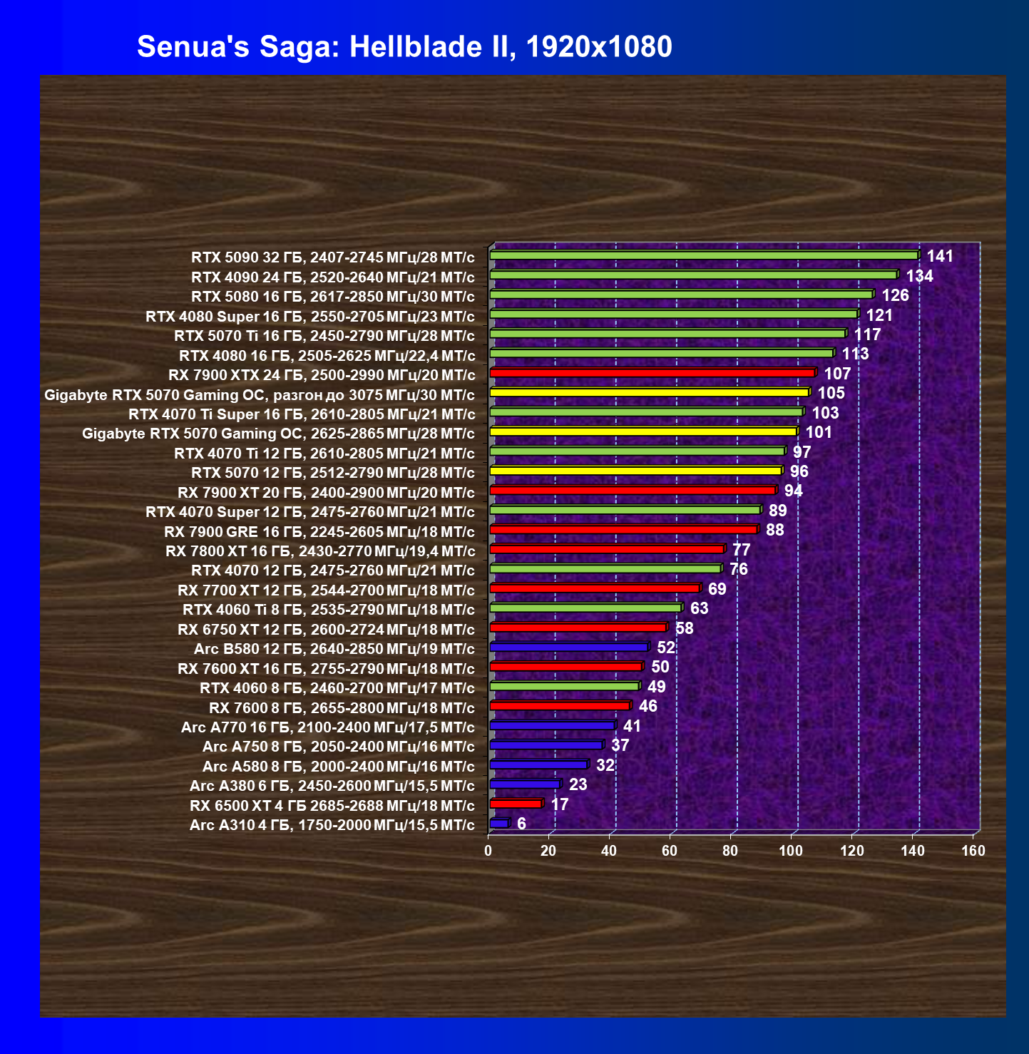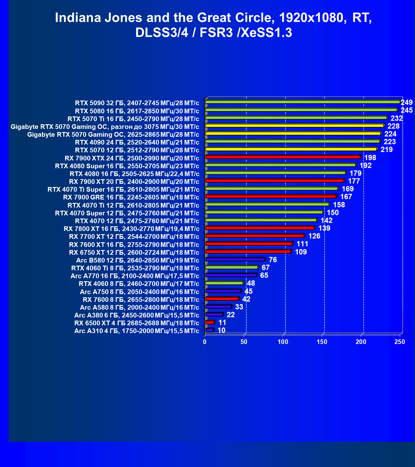 | 06 | RTX 5070 12 ГБ, 2512—2790 МГц/28 ГТ/с | 473 | 4684 | 99 000 |