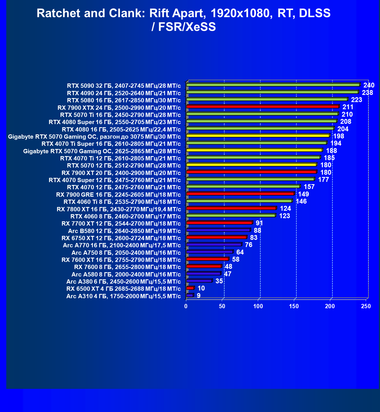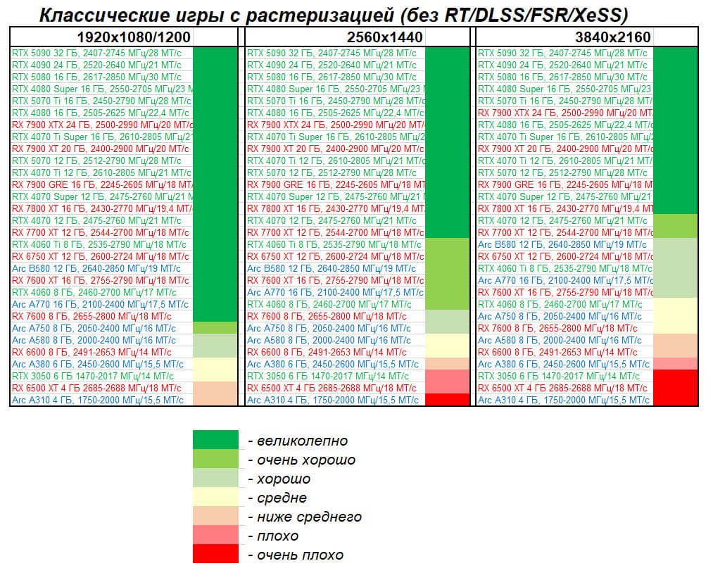Как и в случае со всеми ранее вышедшими GeForce RTX 50, цены GeForce RTX 5070 завышены до неприличия. В любом случае, многие продвинутые пользователи, отдавшие 90-100 тысяч рублей за такую видеокарту, не станут ограничиваться играми без RT и/или технологий динамического масштабирования, поэтому обращать внимание на этот рейтинг сегодня, наверное, не имеет большого смысла.