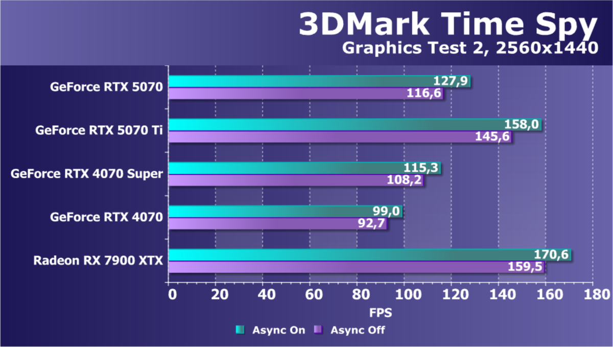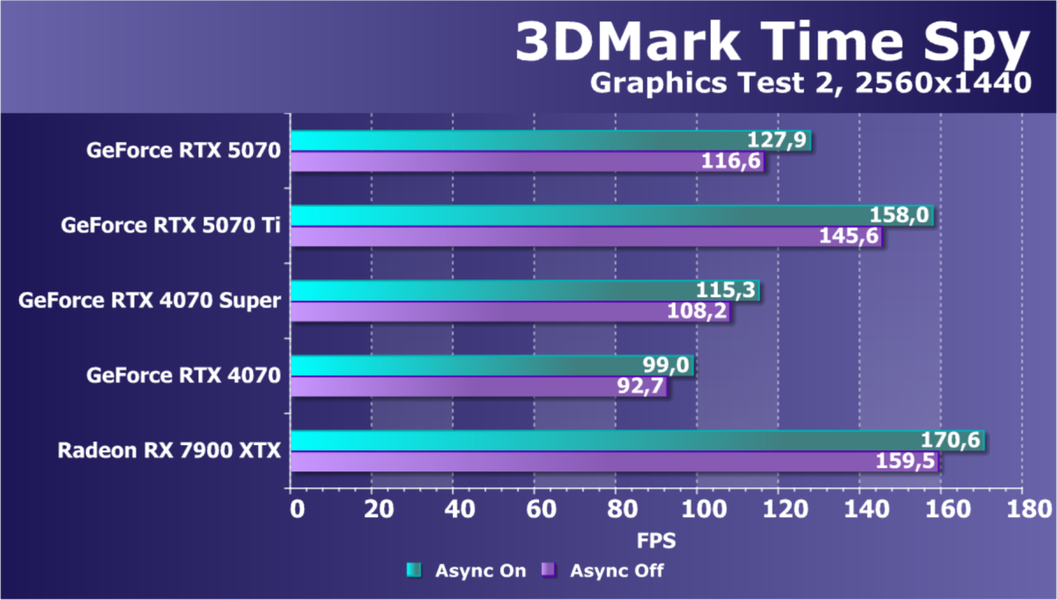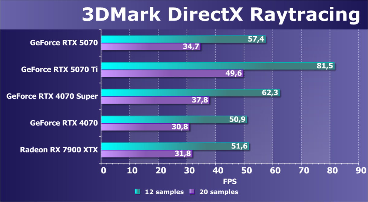Если посмотреть на энергоэффективность, то GeForce RTX 5070 по этому показателю занимает второе место, уступая лишь GeForce RTX 5070 Ti.