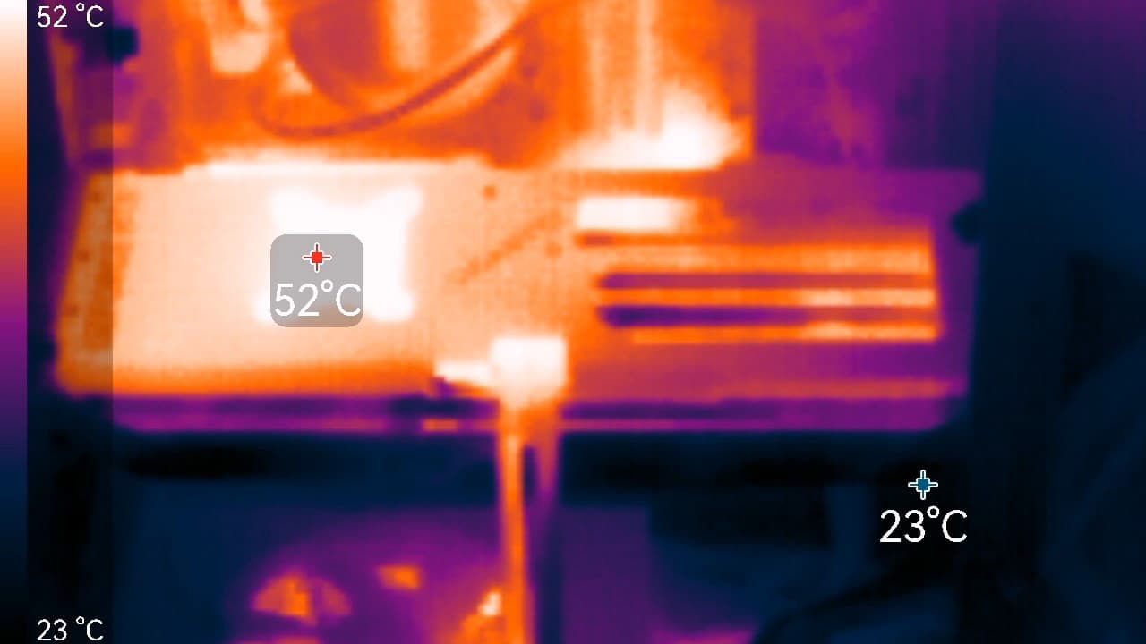 Рассматриваемая модель имеет максимальное энергопотребление на уровне 250 Вт, что на 50 Вт больше, чем было у GeForce RTX 4070 и на 30 Вт выше показателя GeForce RTX 4070 Super. И так как семейство графических процессоров Blackwell использует тот же техпроцесс, что и Ada Lovelace, это совсем не удивляет. Хотя GPU в Founders Edition греется не слишком сильно, пользователи отмечают довольно заметный шум вентиляторов, так что карта пусть и не слишком громкая, но точно и не тихая. Для дополнительного питания используется 16-контактный разъем 12V-2×6, расположенный под углом для удобства, а новый переходник на пару 8-контактных разъемов имеет более продуманную конструкцию и надежность, по сравнению с предыдущими версиями. Впрочем, у GeForce RTX 5070 с потреблением до 250 Вт не должно возникнуть никаких проблем из-за теоретически возможного перегрева кабелей и разъемов. Выходов же на дисплеи у FE-карты обычное количество — три DisplayPort 2.1a с поддержкой UHBR20 (80 Гбит/с) и один HDMI 2.1b.