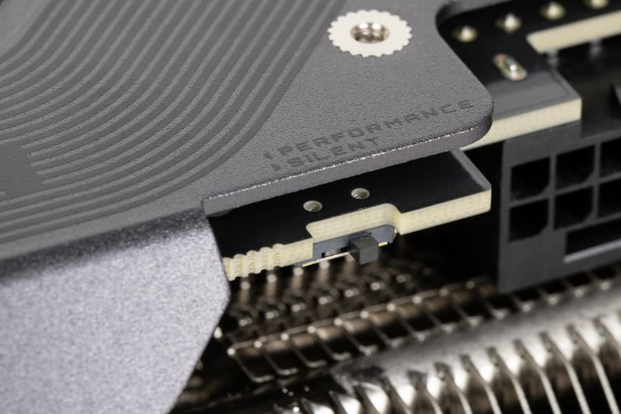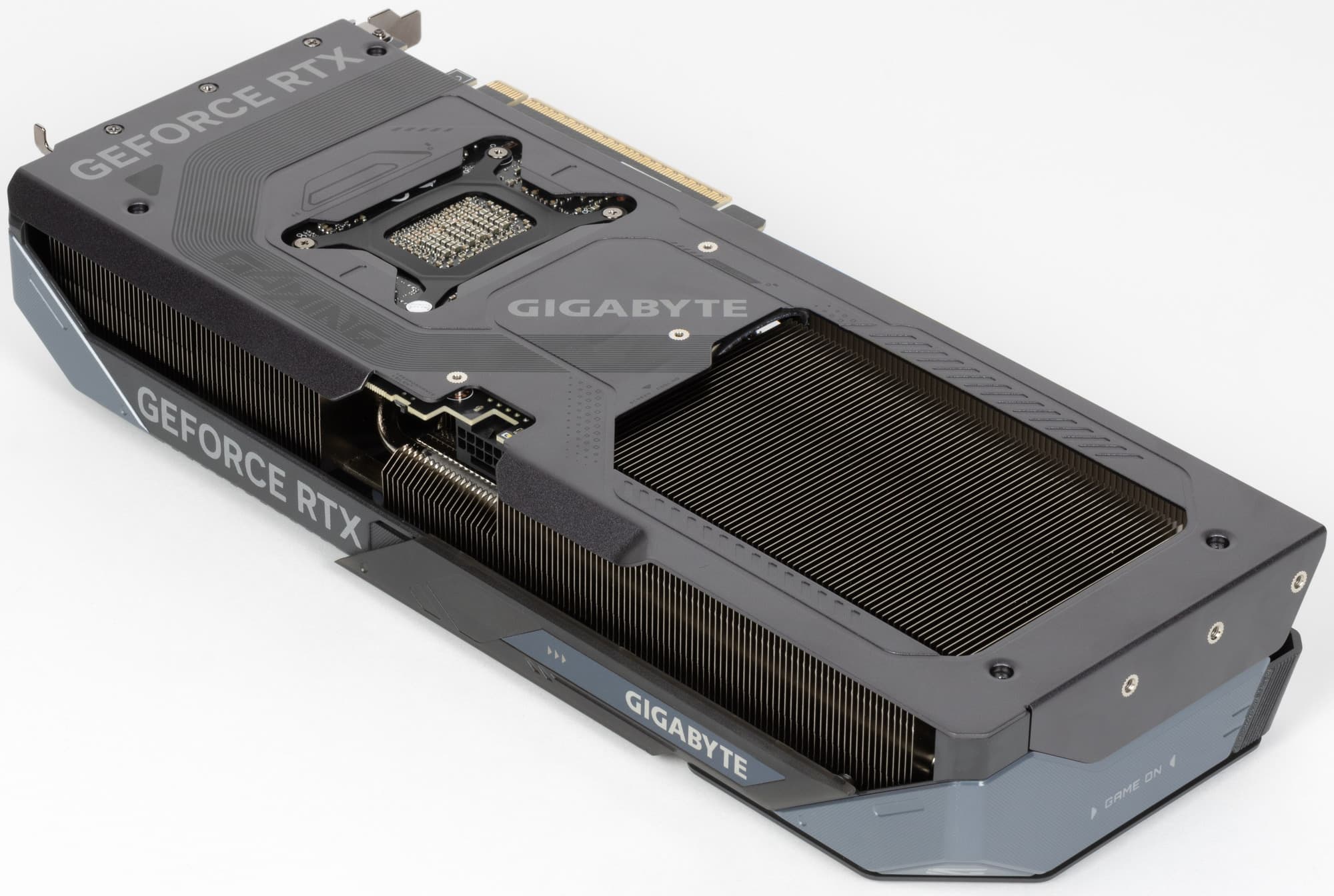 Интересно, что у модели GeForce RTX 5070 есть вариант Founders Edition от самой Nvidia, в отличие от GeForce RTX 5070 Ti, лишенного подобной видеокарты по каким-то причинам. Но так как на нашем рынке FE-издания от американской компании доступны разве что в редких серых поставках, то для массового российского покупателя это не особенно важно. Это собственная разработка компании, схожая с реализацией других моделей Founders Edition, но не имеющая светодиодной подсветки. Система охлаждения GeForce RTX 5070 FE использует четыре тепловые трубки и архитектуру двойного сквозного продувания Dual Flow-Through, что и у GeForce RTX 5090 FE с GeForce RTX 5080 FE, но упрощенную, да и карта в целом значительно более компактна, она и выглядит как мини-версия GeForce RTX 5090 FE. Радиатор обеспечивает охлаждение графического процессора, микросхем памяти и VRM, но это в целом куда более простая конструкция, без применения жидкого металла и испарительной камеры. Двухслотовую конструкцию гораздо проще сделать для модели с потреблением в 250 Вт, а не 575 Вт, как у GeForce RTX 5090.