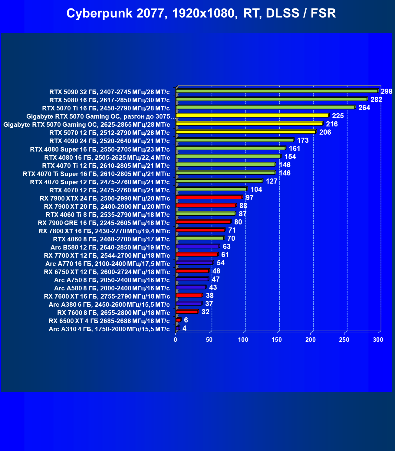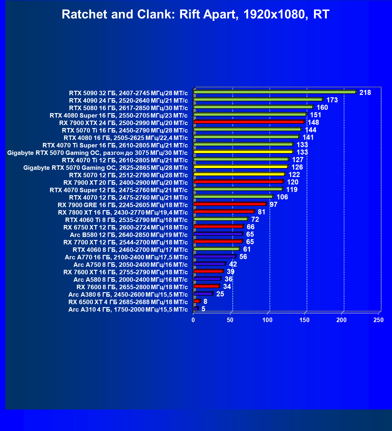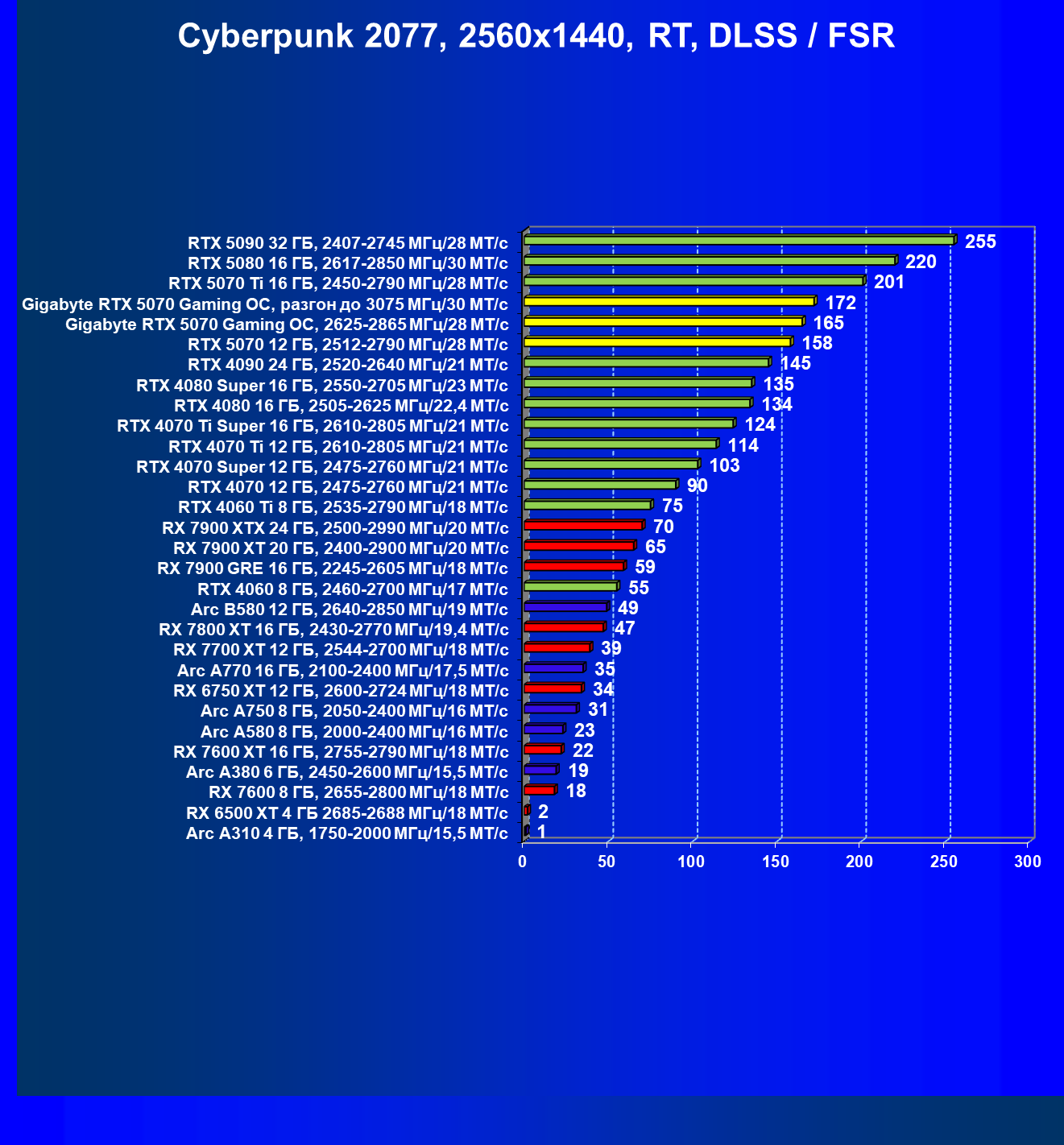 | 04 | Gigabyte RTX 5070 Gaming OC, разгон до 3075 МГц/30 ГТ/с | 483 | 5073 | 105 000 |
