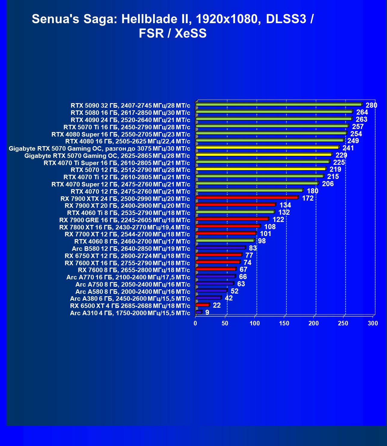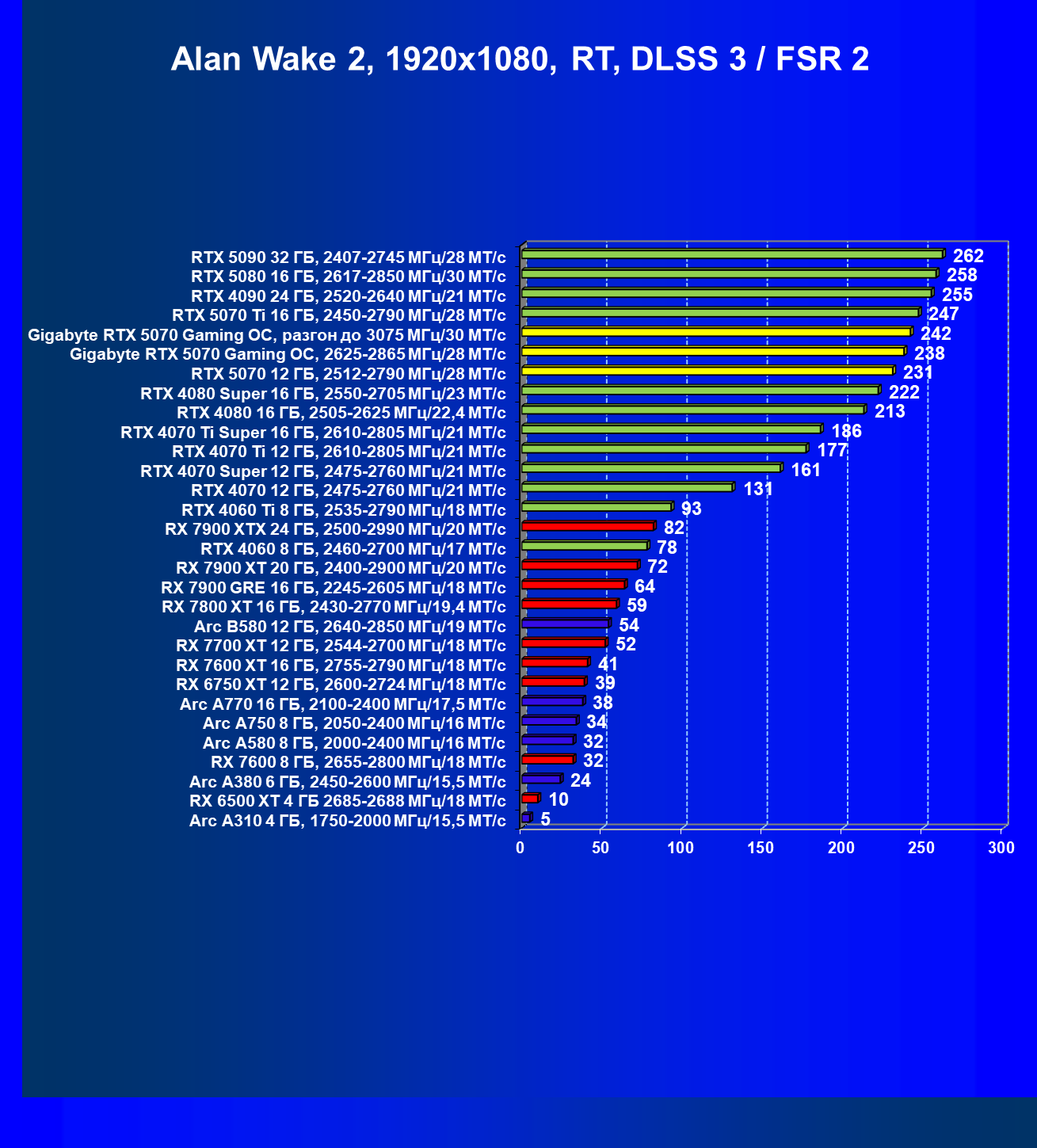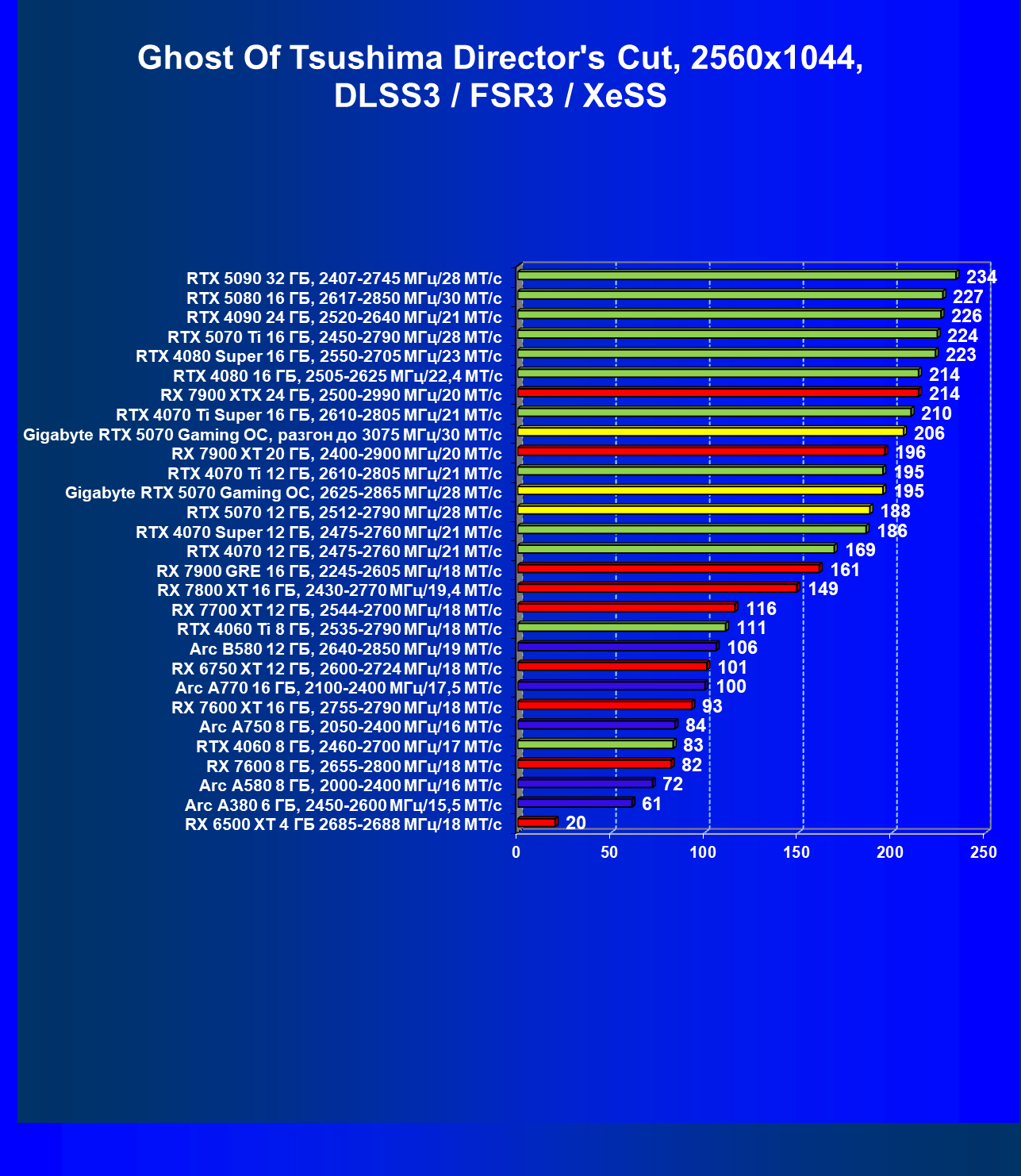 | 04 | Gigabyte RTX 5070 Gaming OC, разгон до 3075 МГц/30 ГТ/с | 483 | 5073 | 105 000 |