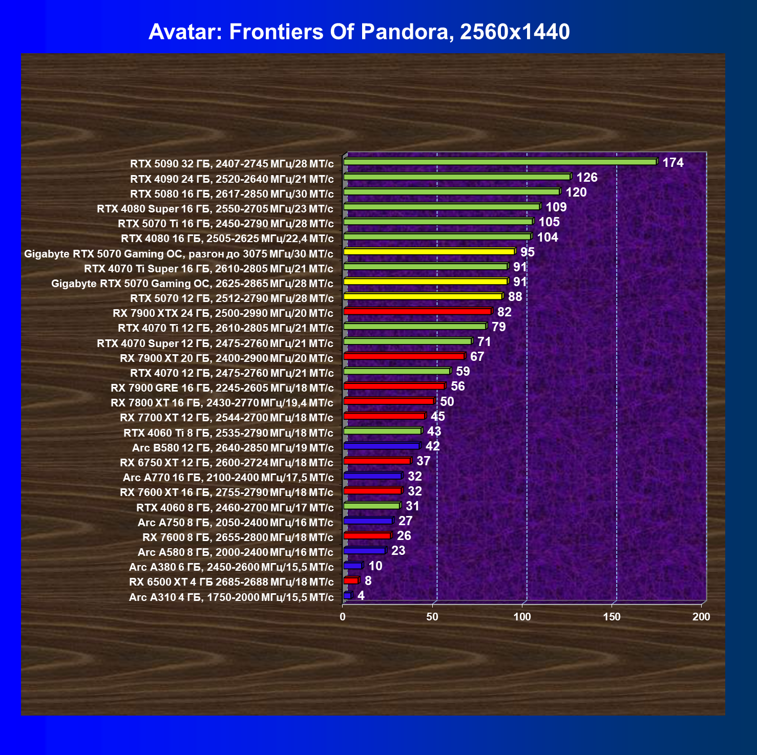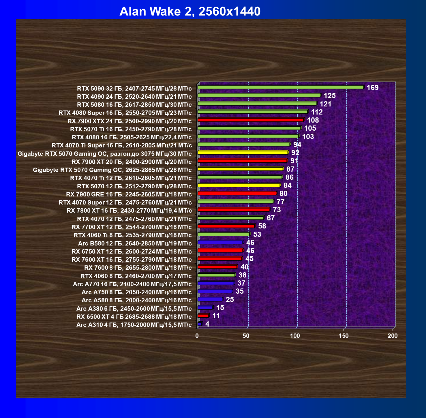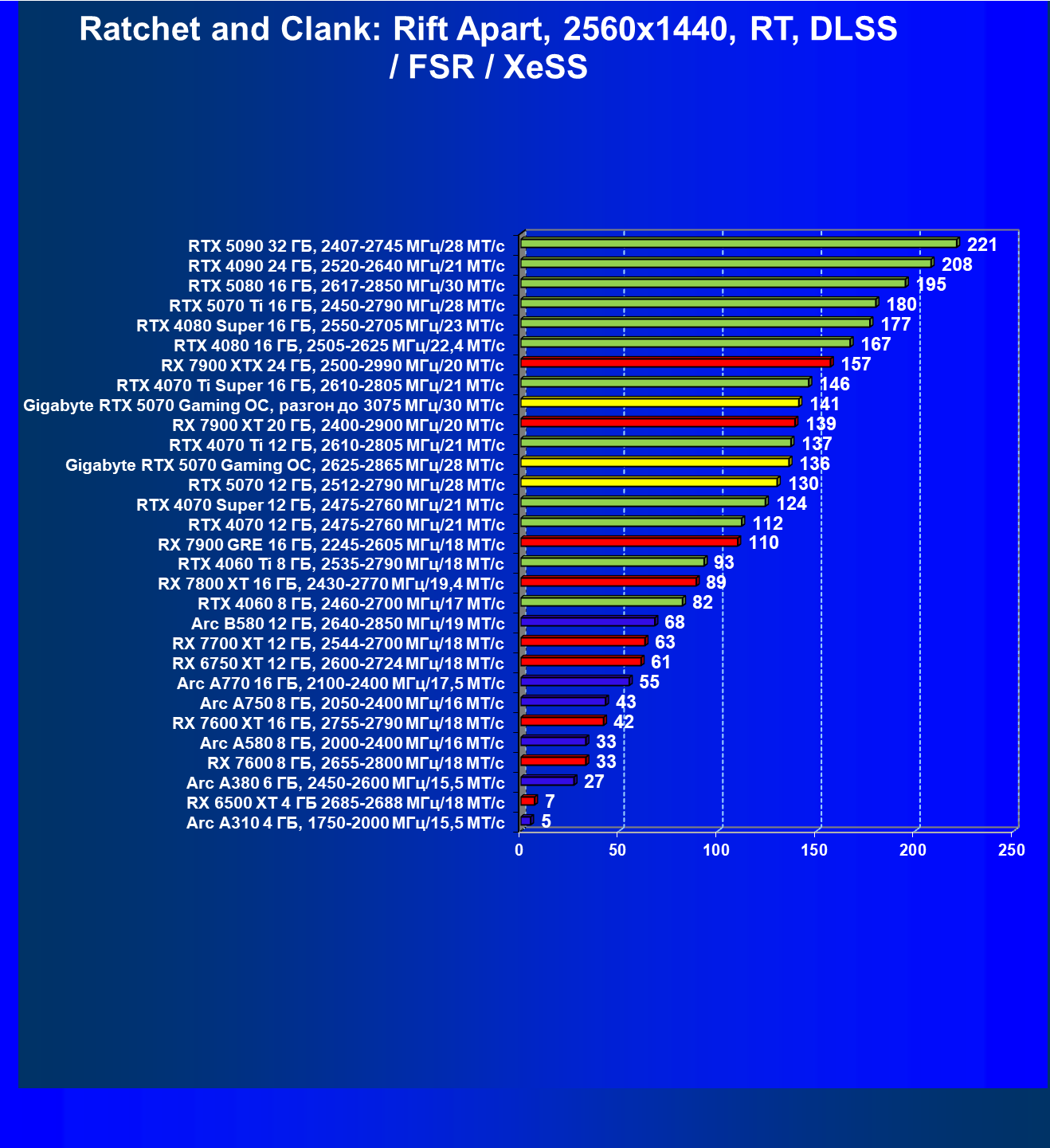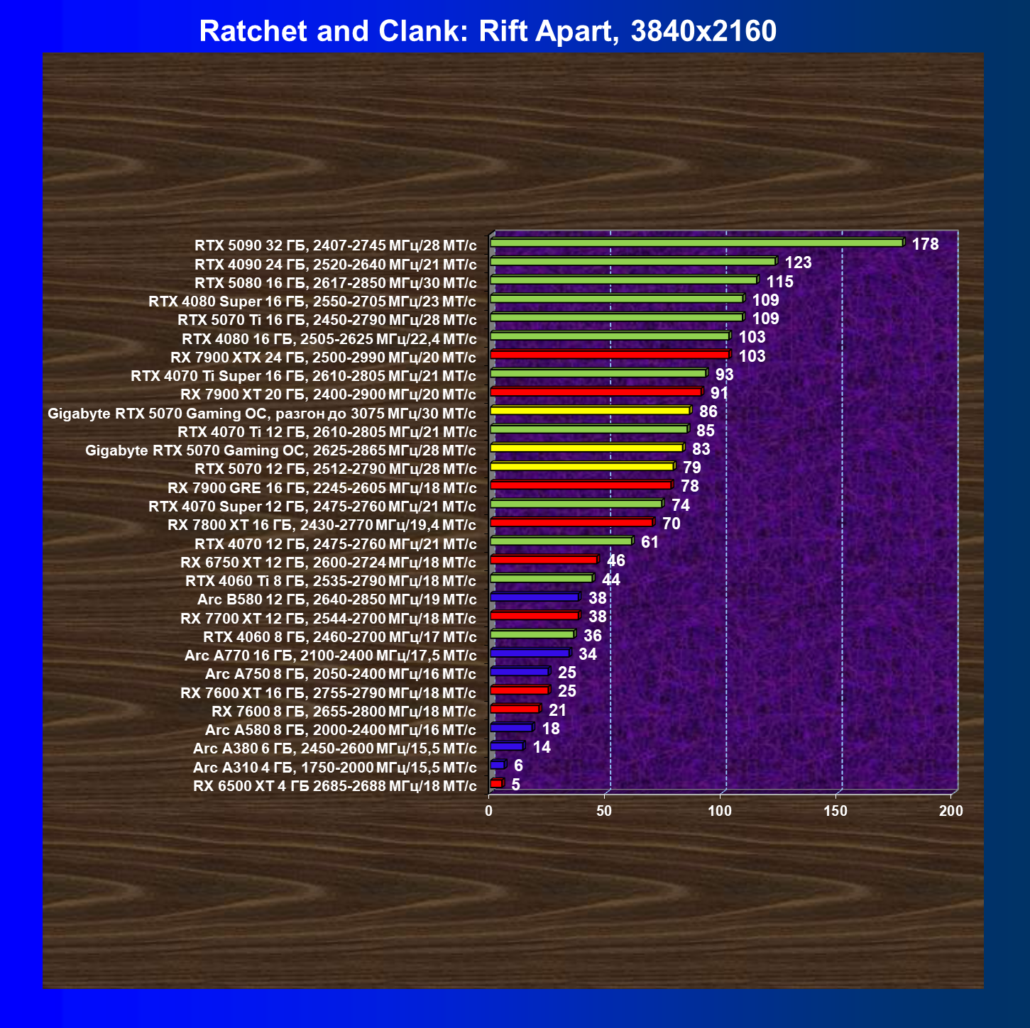 | 13 | RX 7900 XT 20 ГБ, 2400—2900 МГц/20 ГТ/с | 171 | 1521 | 89 000 |