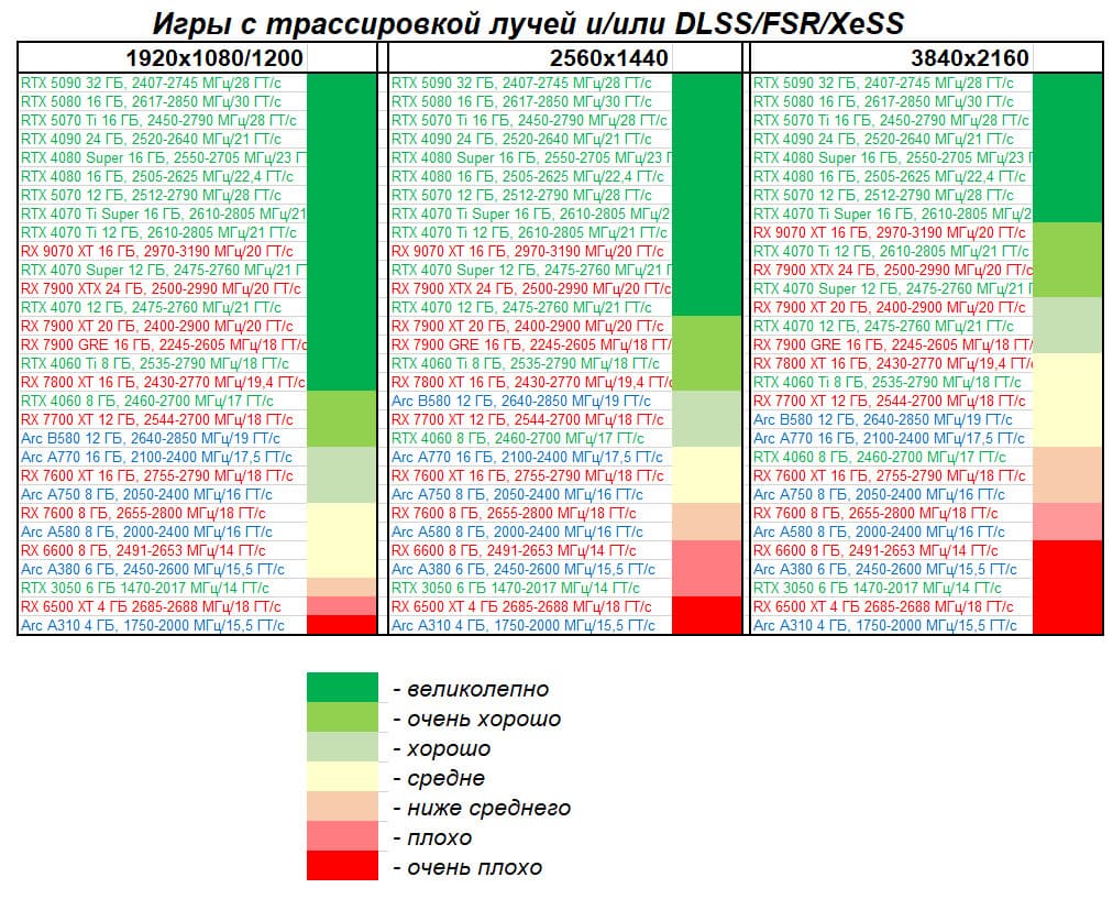 - Вариант рейтинга полезности с включением RT/DLSS/FSR/XeSS