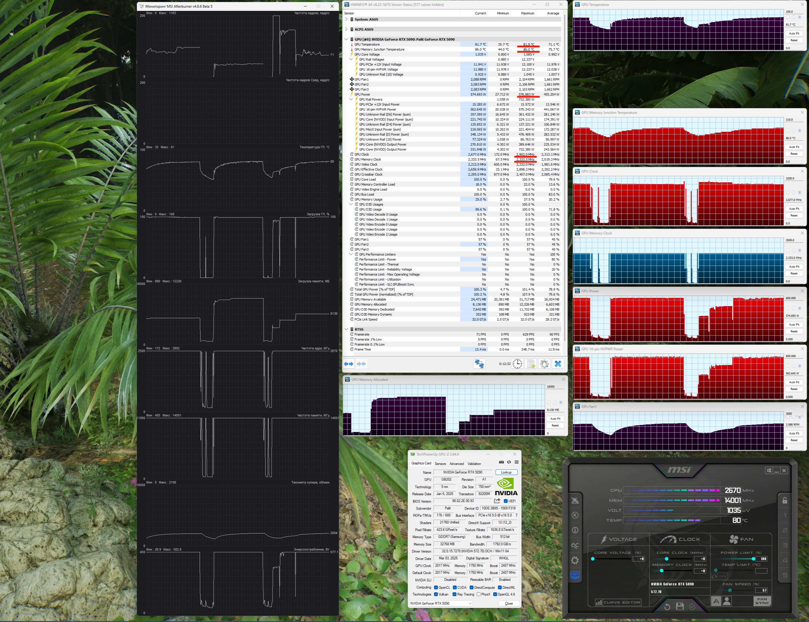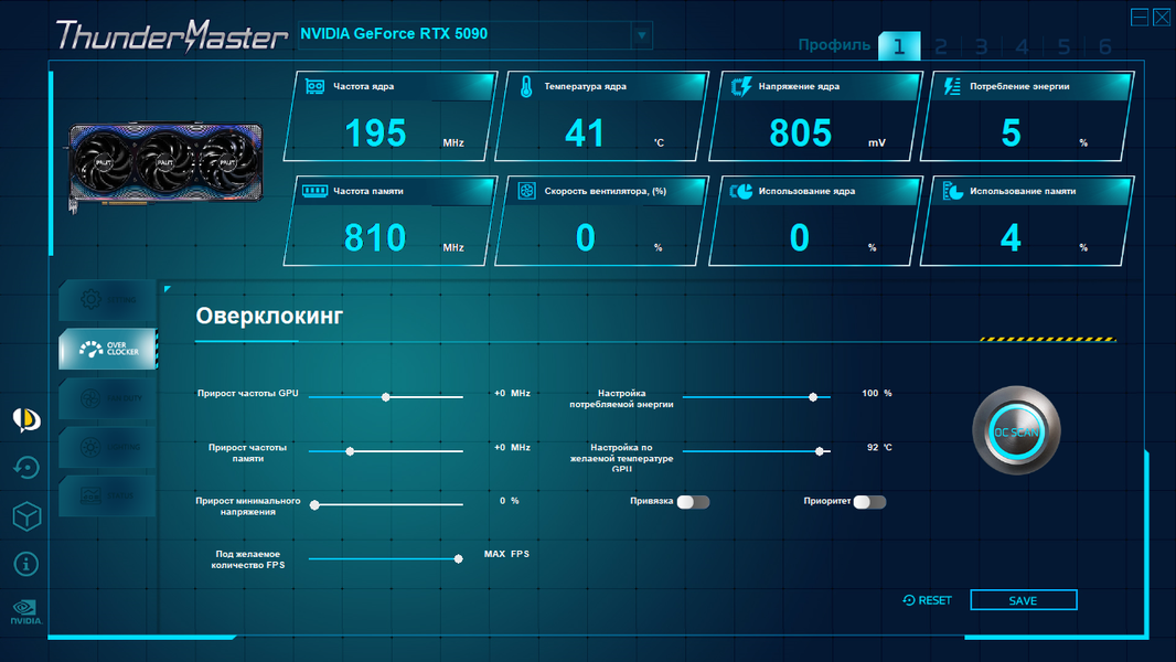 | 03 | RTX 5080 16 ГБ, 2617—2850 МГц/30 ГТ/с | 825 | 13532 | 164 000 |