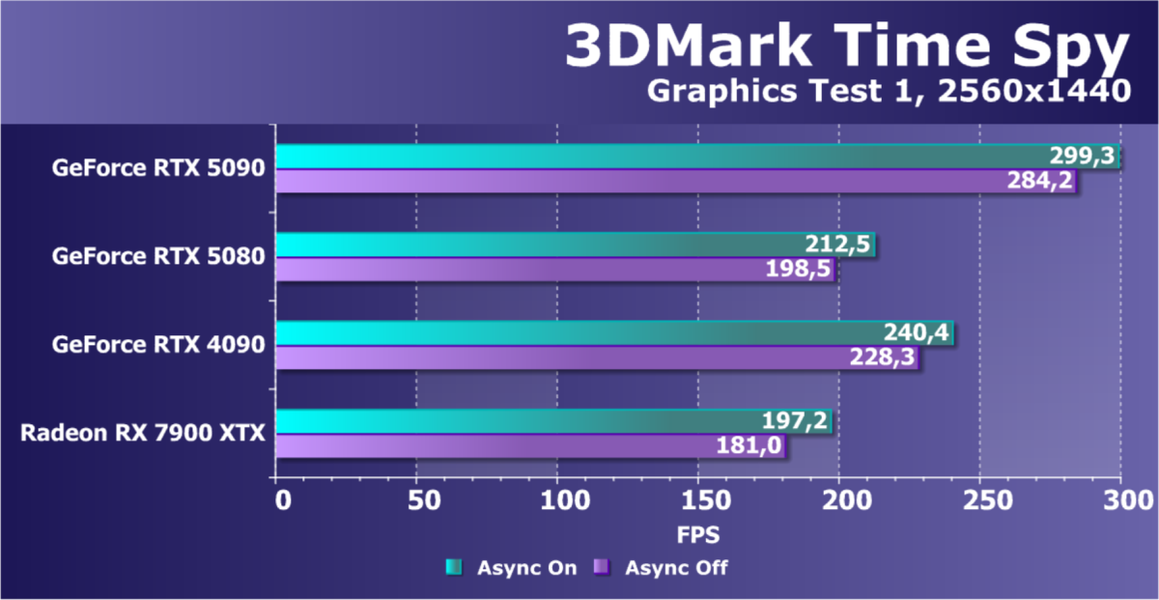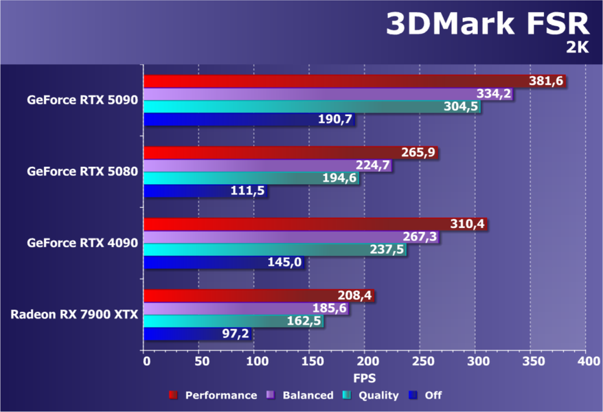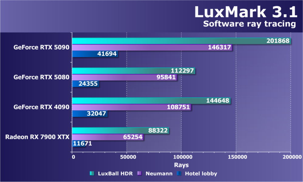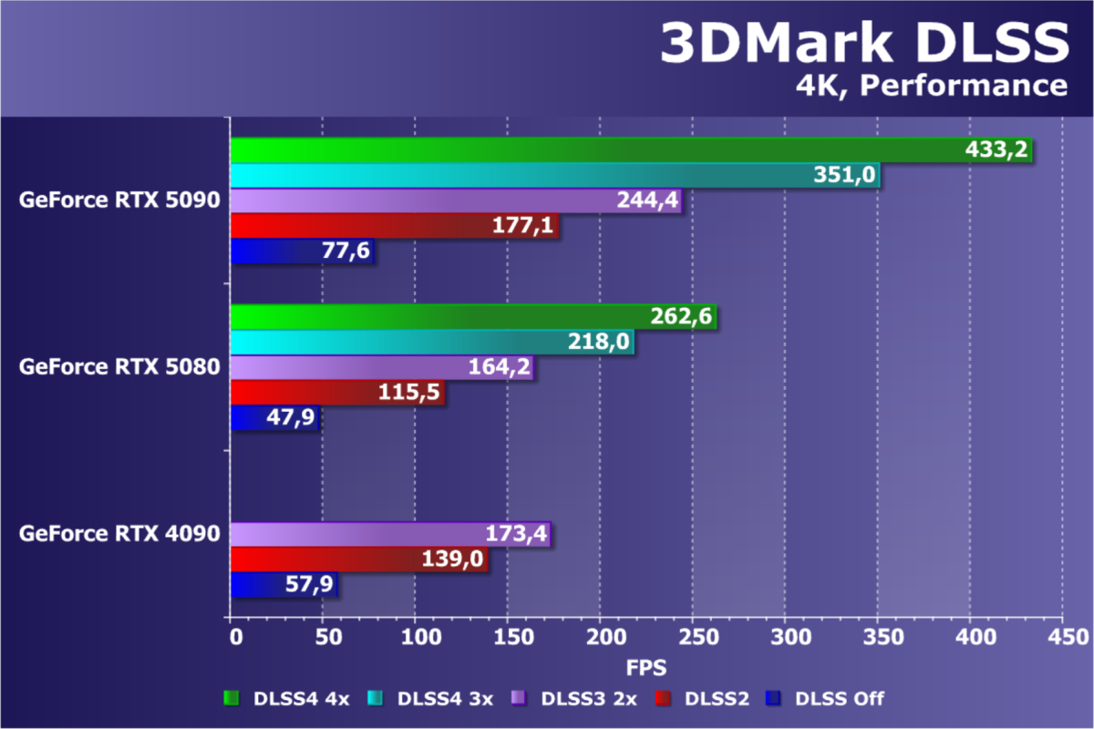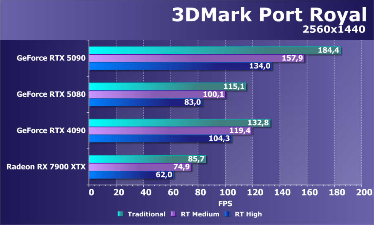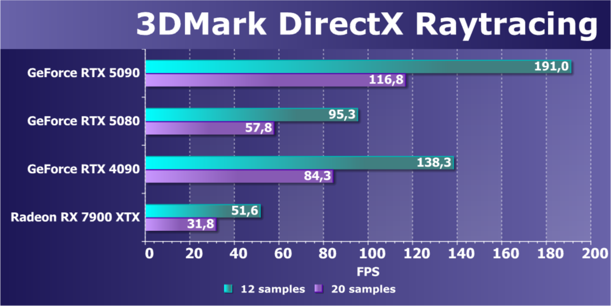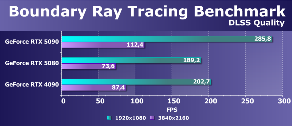 Отметим еще раз, что GeForce RTX 5090 будет обеспечивать отменный комфорт во всех играх на максимальных настройках качества при отключенных и включенных трассировке лучей и технологиях масштабирования в разрешениях до 2160p (4K) включительно. Во многих играх при использовании тех же технологий DLSS/FSR/XeSS (а подчас и без них) можно получить хороший комфорт и в разрешении 8K.