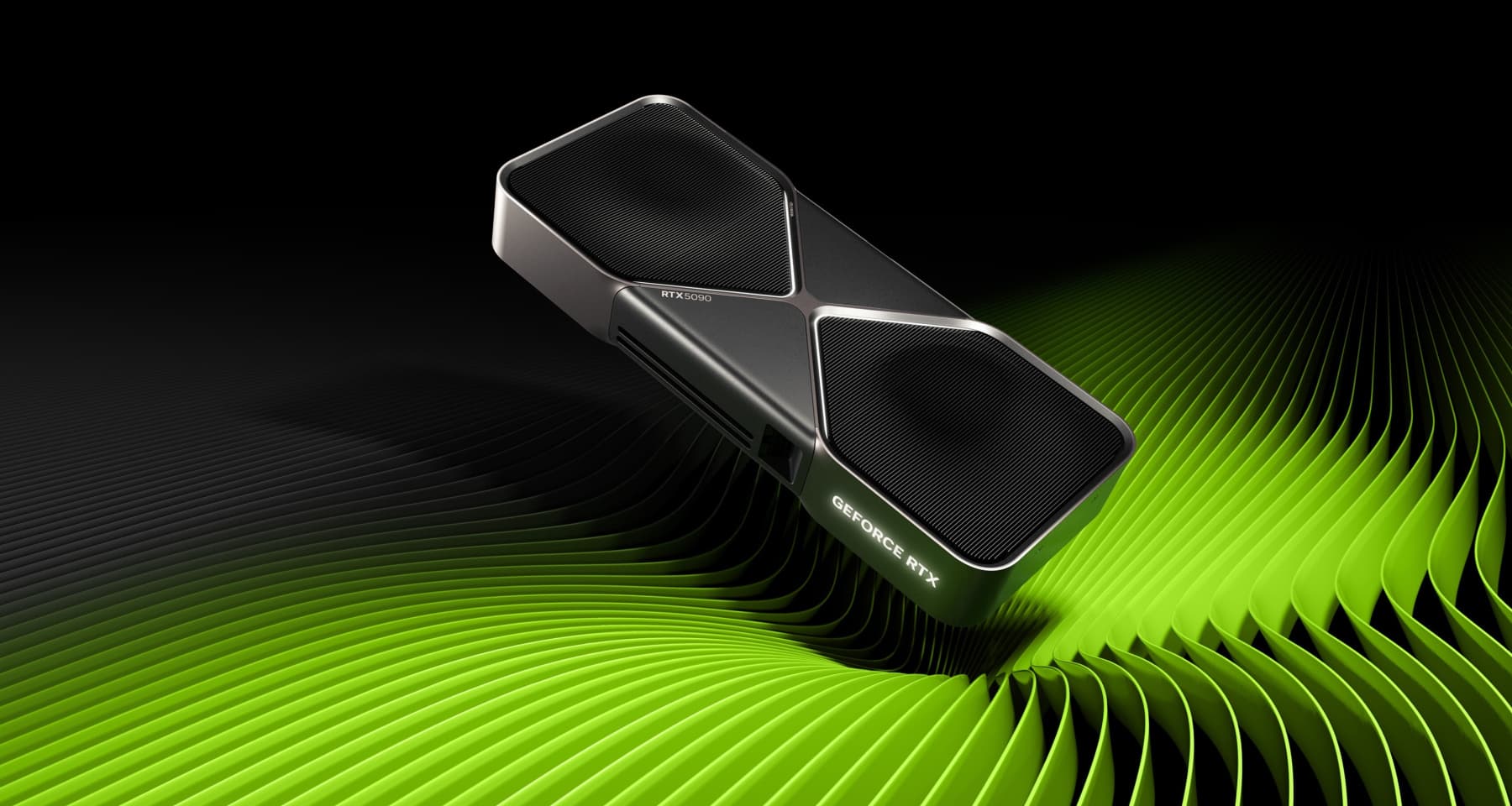 Традиционно было выпущено решение в виде GeForce RTX 5090 Founders Edition производства самой Nvidia. Видеокарта GeForce RTX 5090 FE такая же по размерам, как GeForce RTX 4090 FE, но в полтора раза тоньше — она занимает два слота, а не три — при увеличении энергопотребления и тепловыделения это стало возможным благодаря новому принципу системы охлаждения. Новая видеокарта выглядит симпатично из-за аккуратного «промышленного» дизайна и металлической конструкции в строгой цветовой гамме, также новый дизайн имеет чуть более сглаженные углы. GeForce RTX 5090 FE имеет белую статичную светодиодную подсветку логотипа GeForce RTX и деталей вокруг воздухозаборников с обеих сторон.