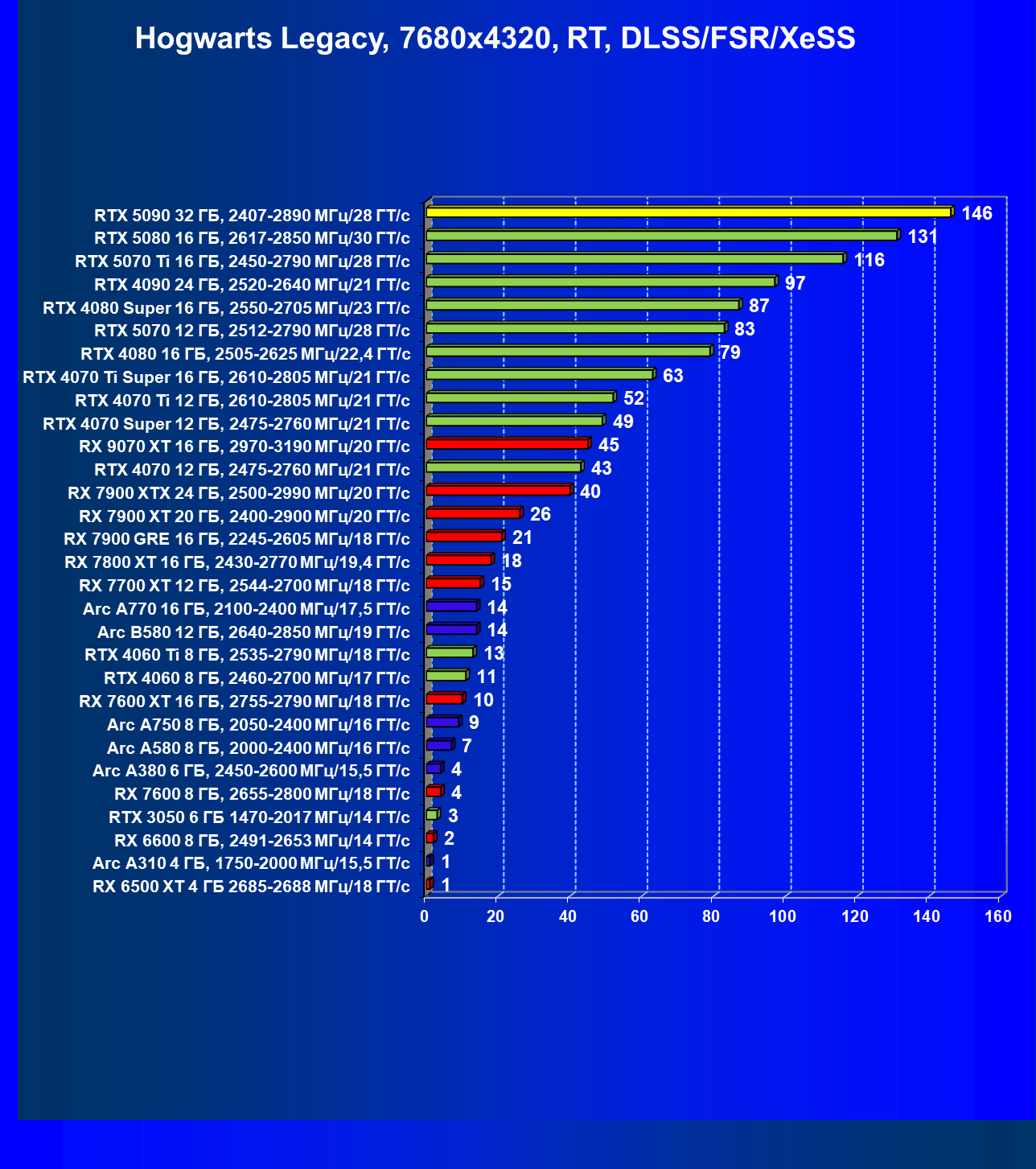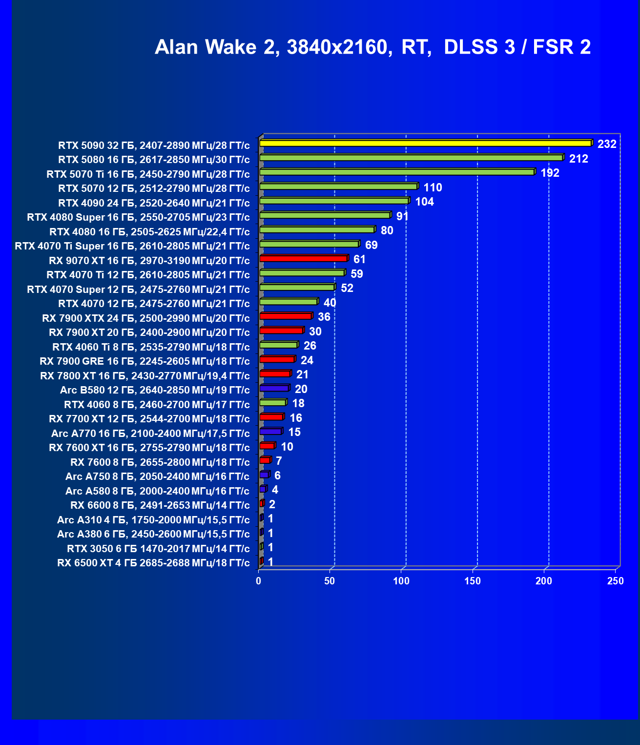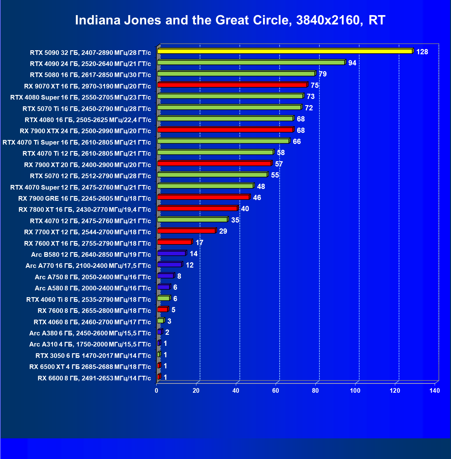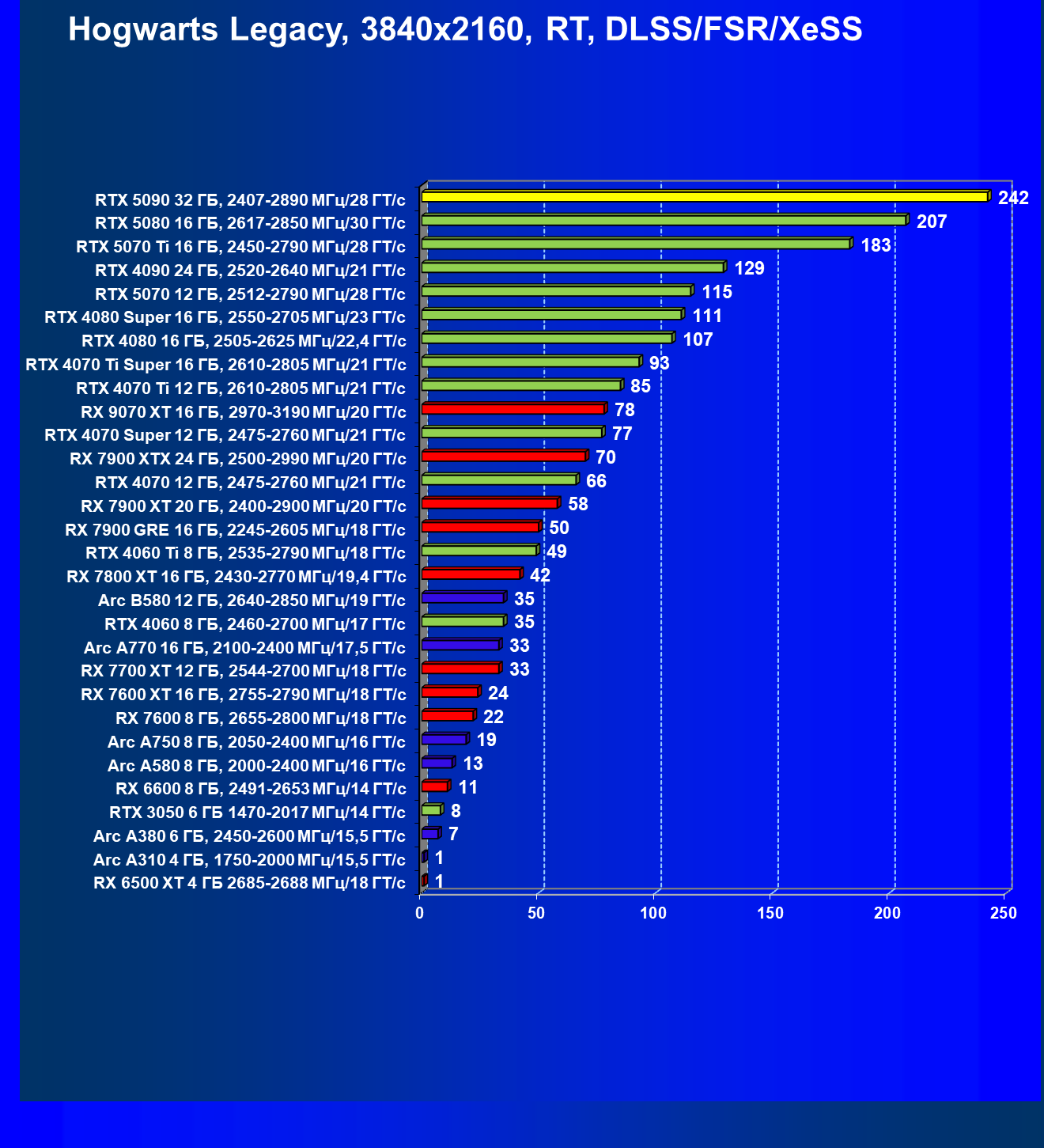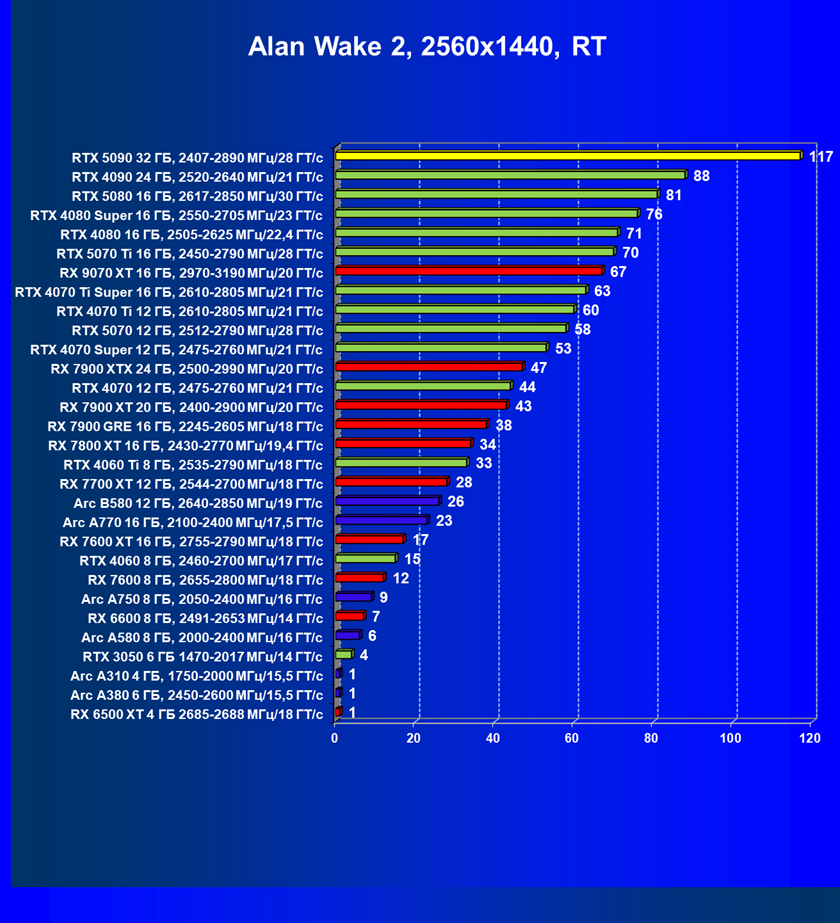| 26 | RTX 5090 32 ГБ, 2407—2890 МГц/28 ГТ/с | 231 | 7516 | 325 000 |