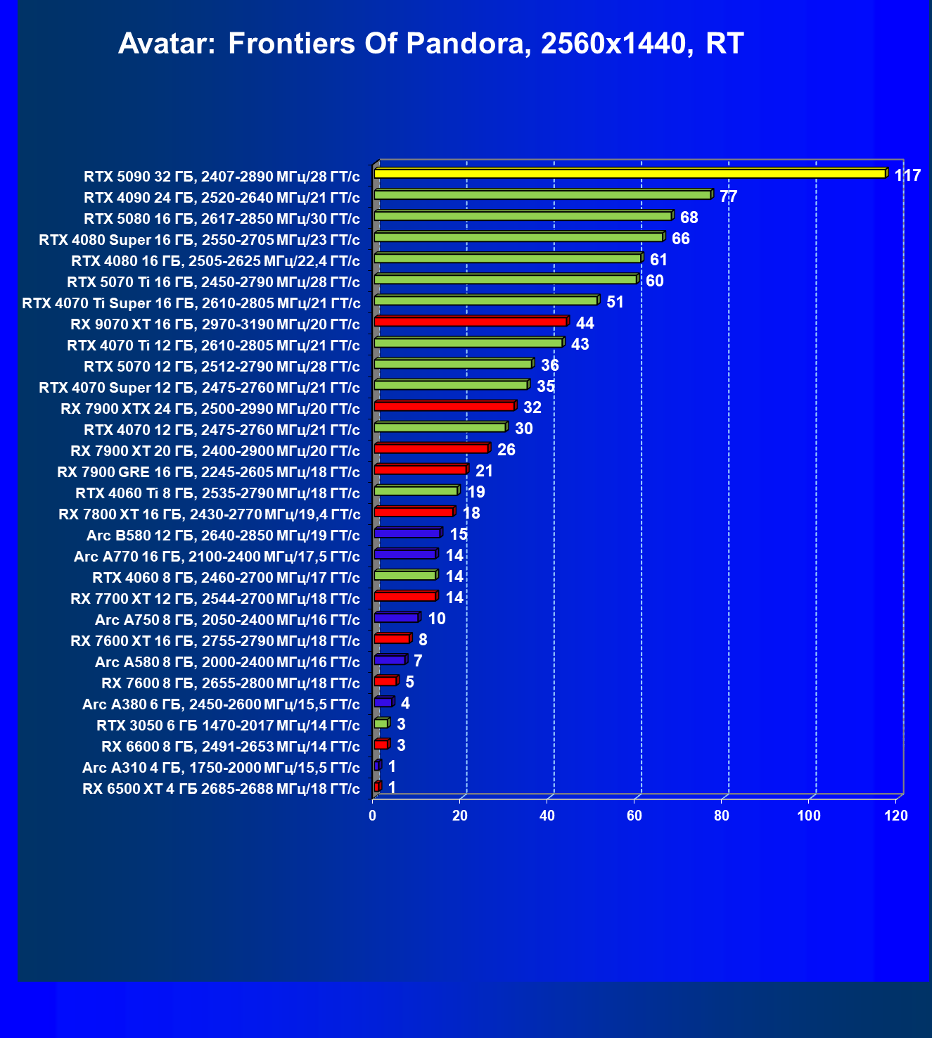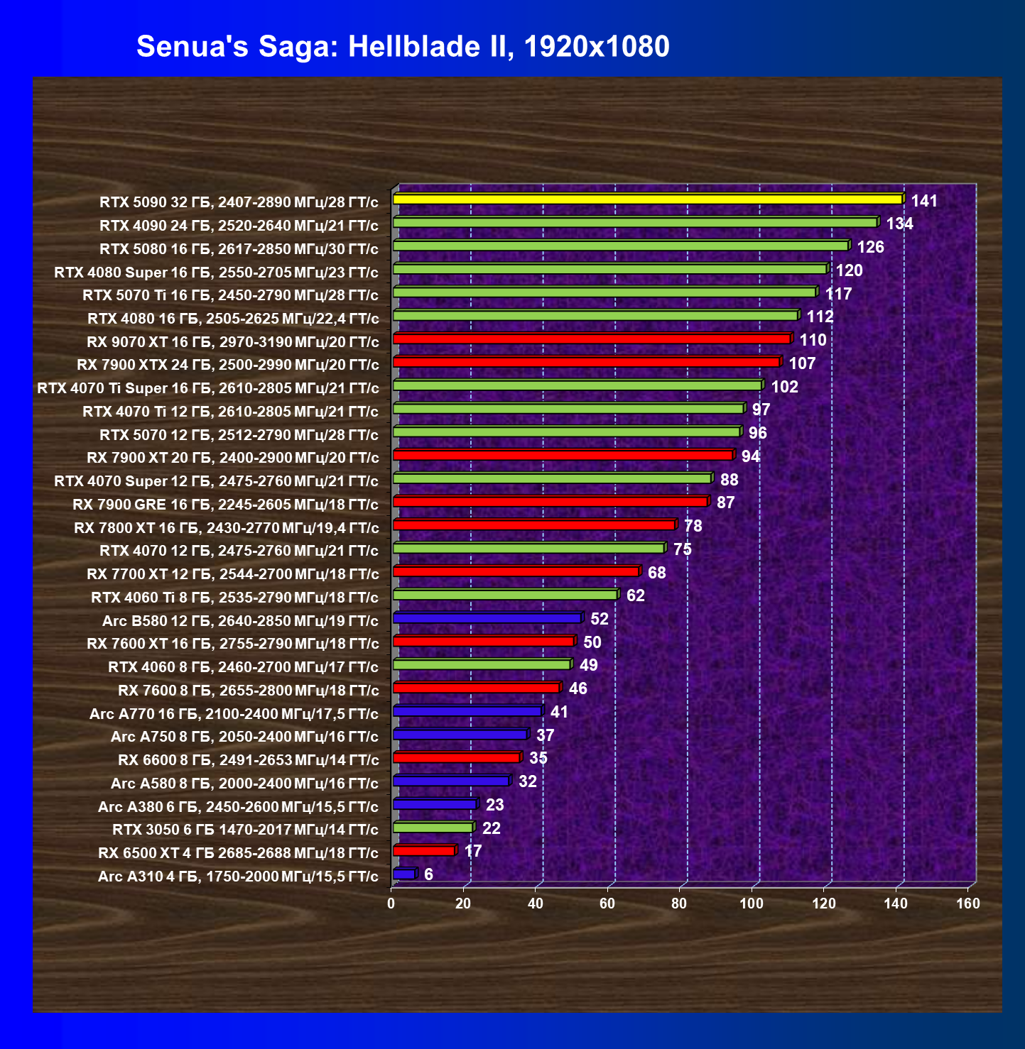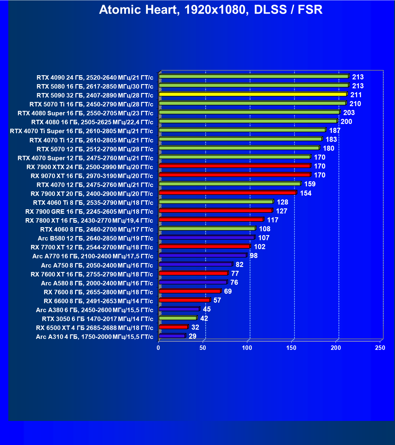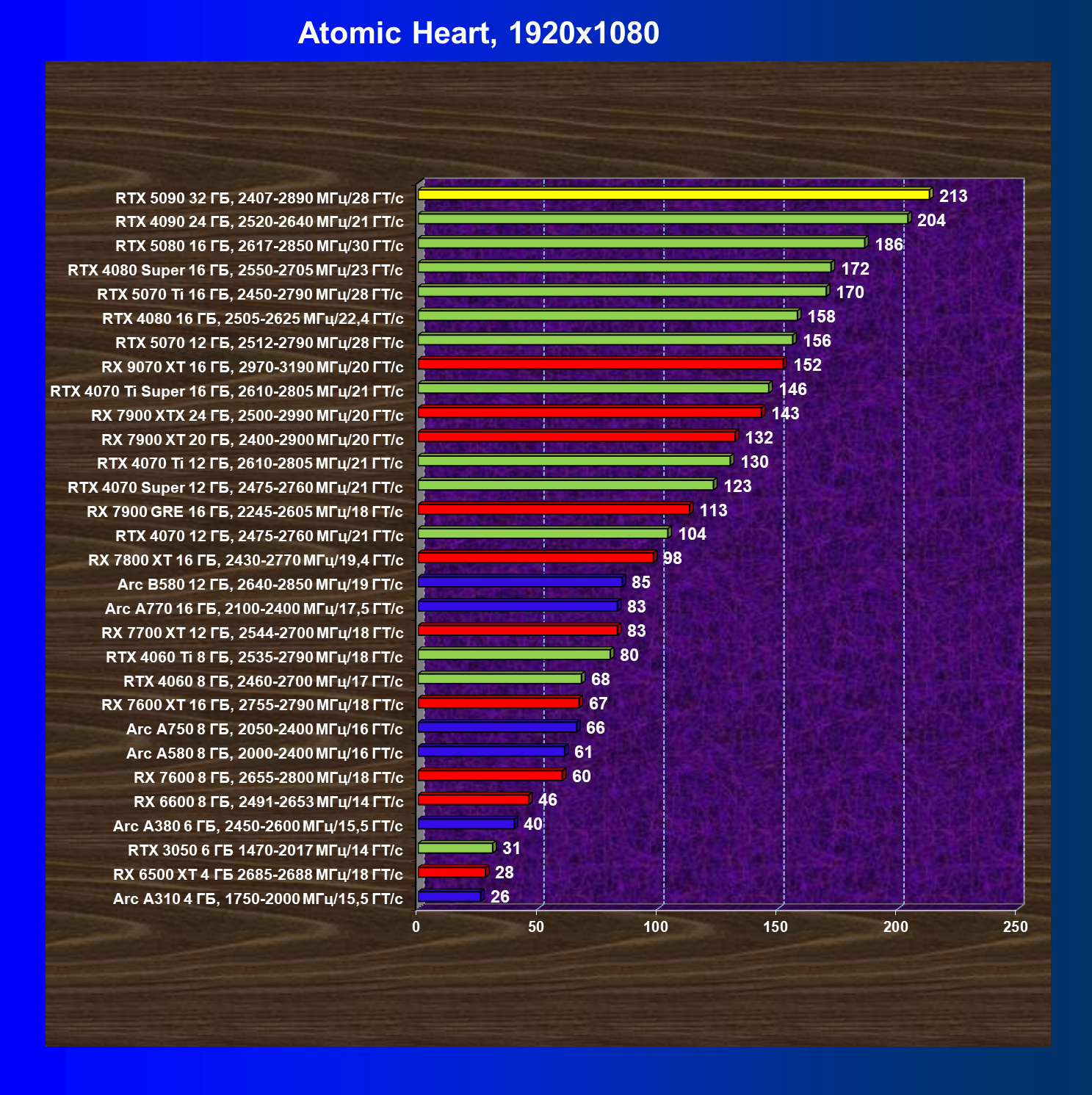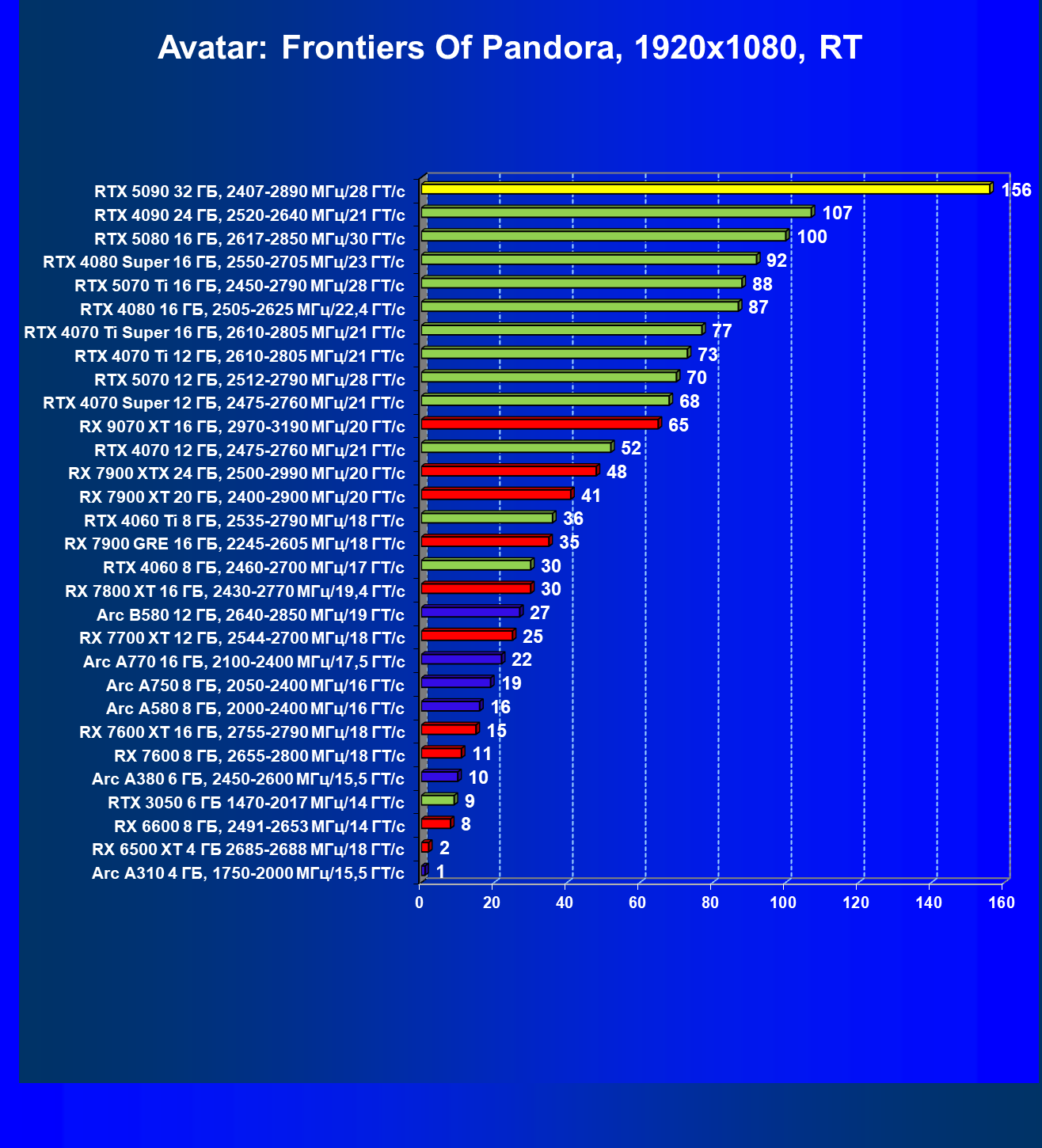 | 26 | RTX 5090 32 ГБ, 2407—2890 МГц/28 ГТ/с | 231 | 7516 | 325 000 |