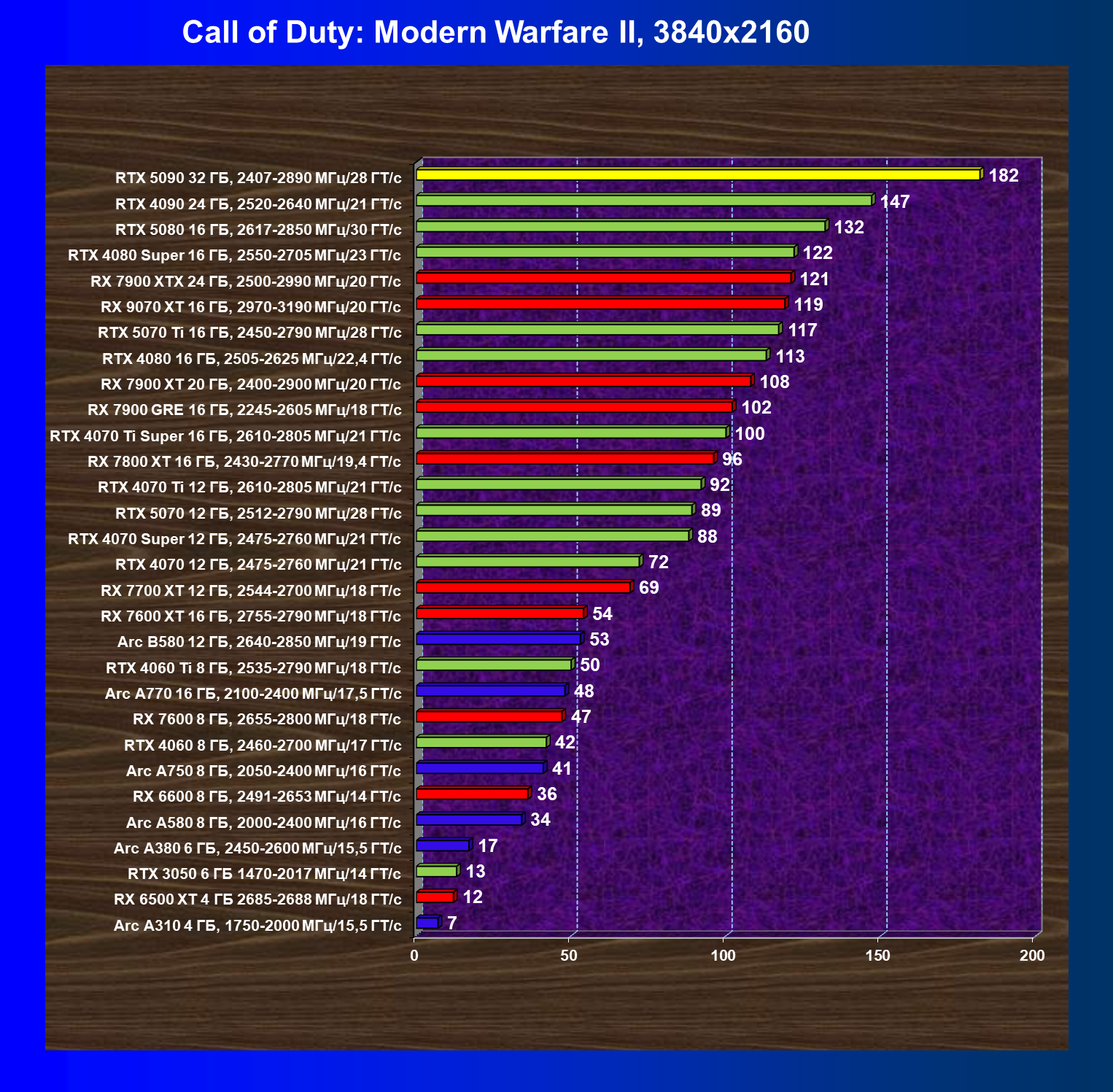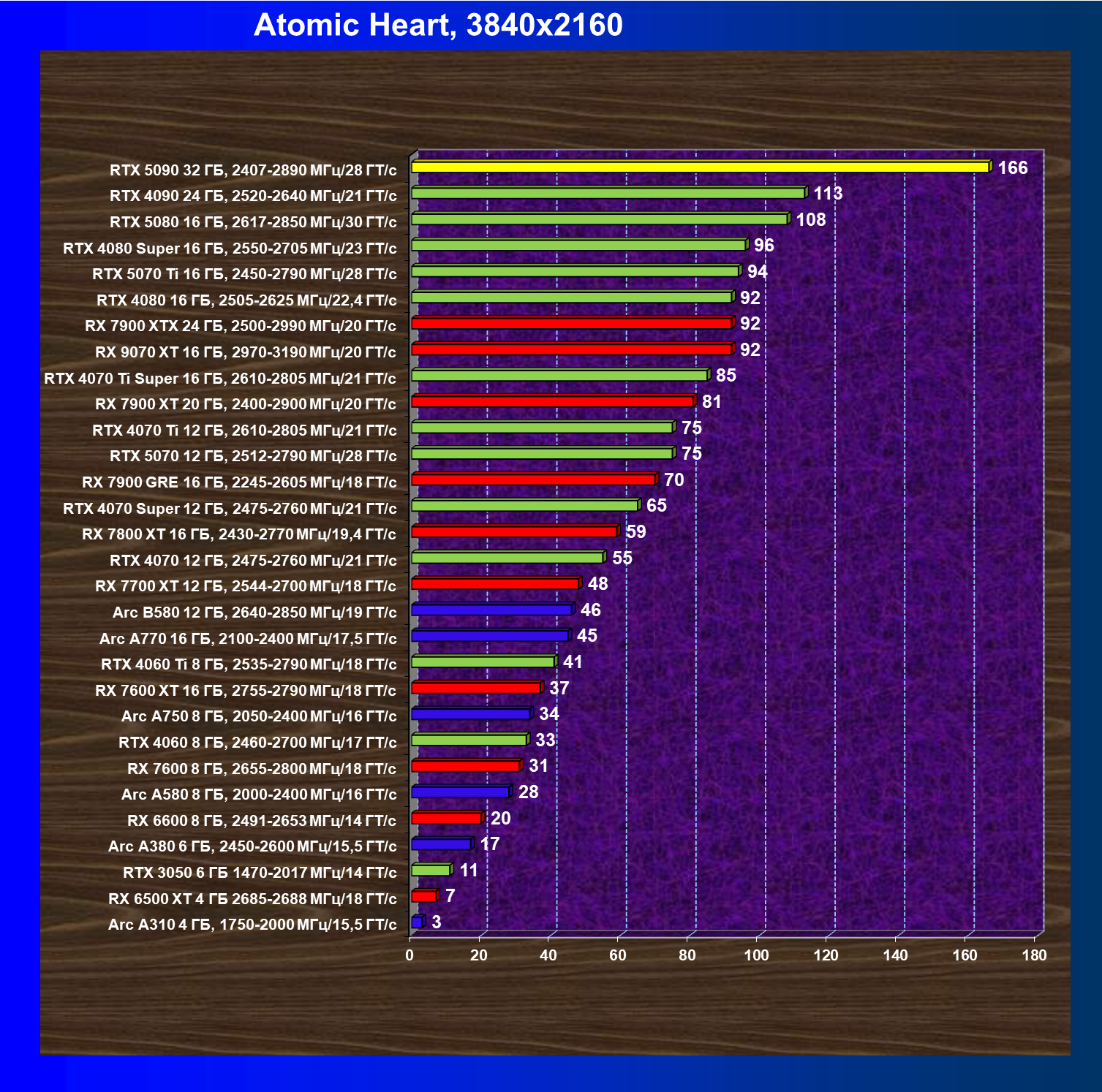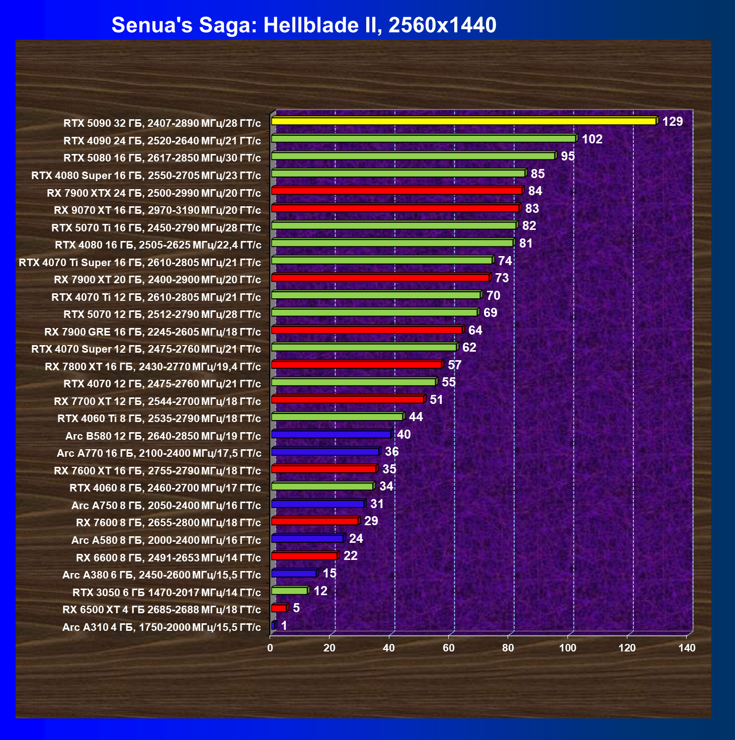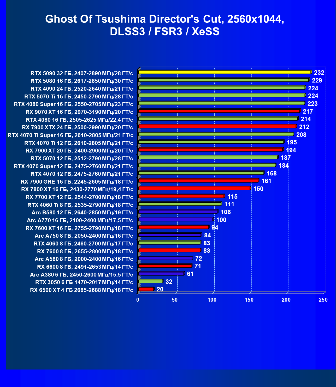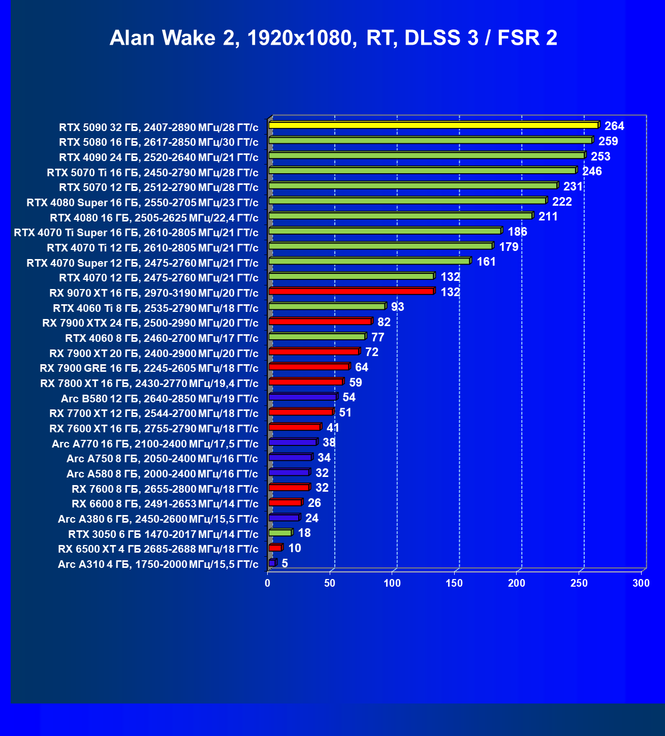 | 26 | RTX 5090 32 ГБ, 2407—2890 МГц/28 ГТ/с | 231 | 7516 | 325 000 |
